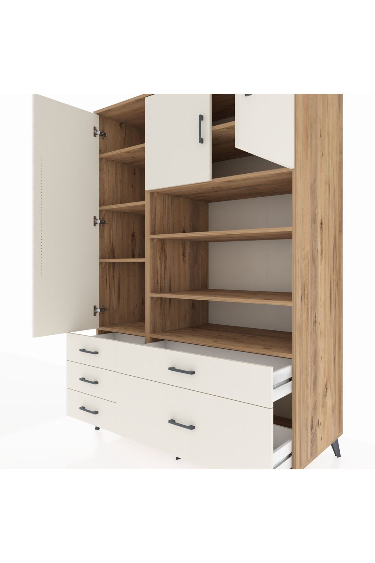 Kronos Dolap 9 Raflı 5 Çekmeceli 3 Kapaklı 132x59x195 Çam-Aytaşı/Aytaşı