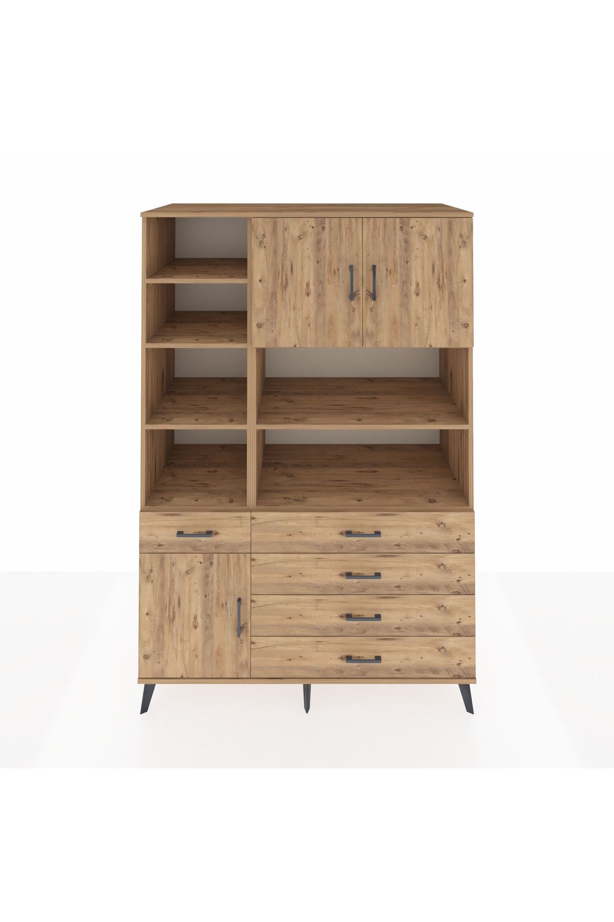 Kronos Dolap 9 Raflı 5 Çekmeceli 3 Kapaklı 132x59x195 Çam-Çam/Çam