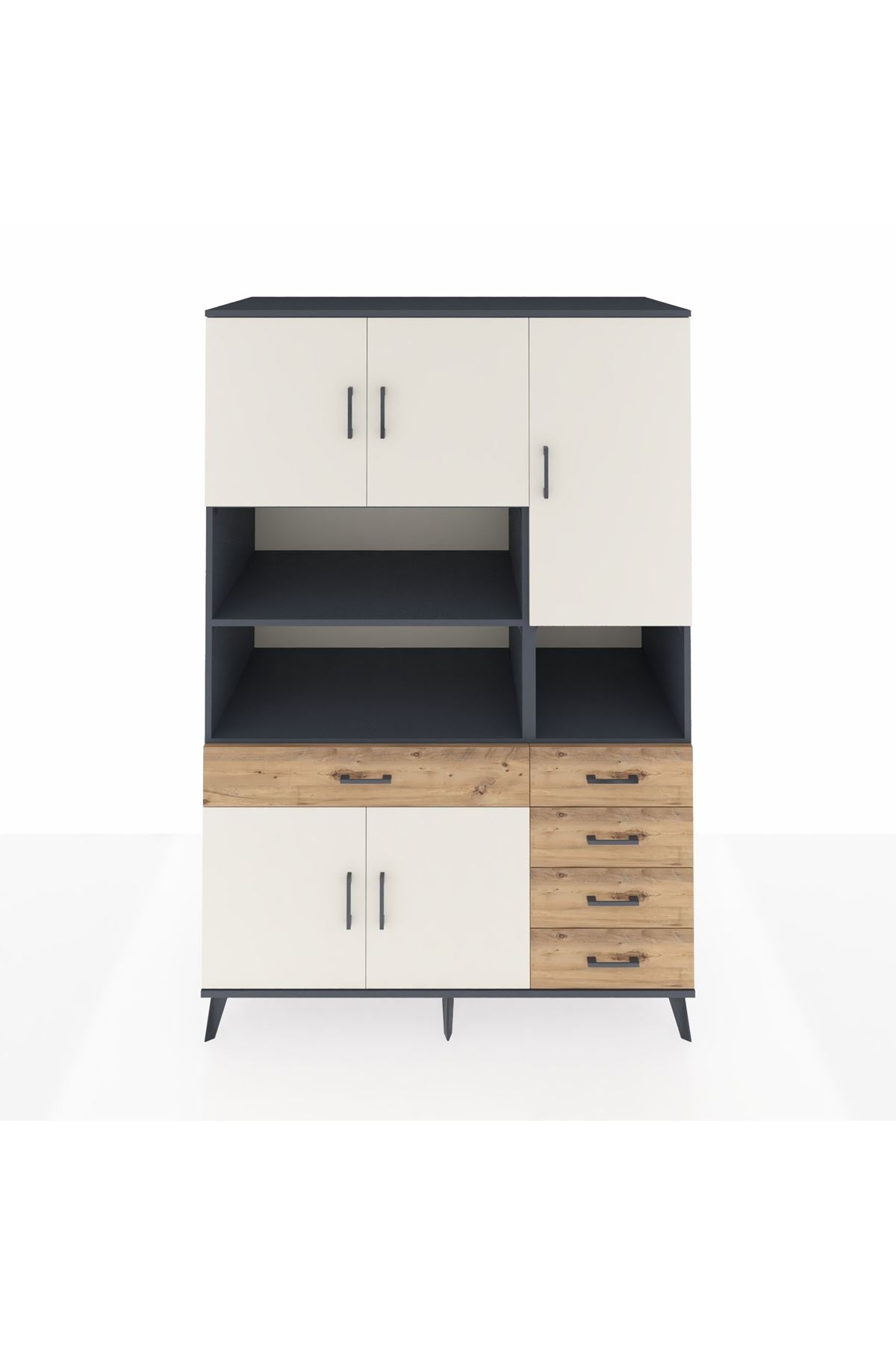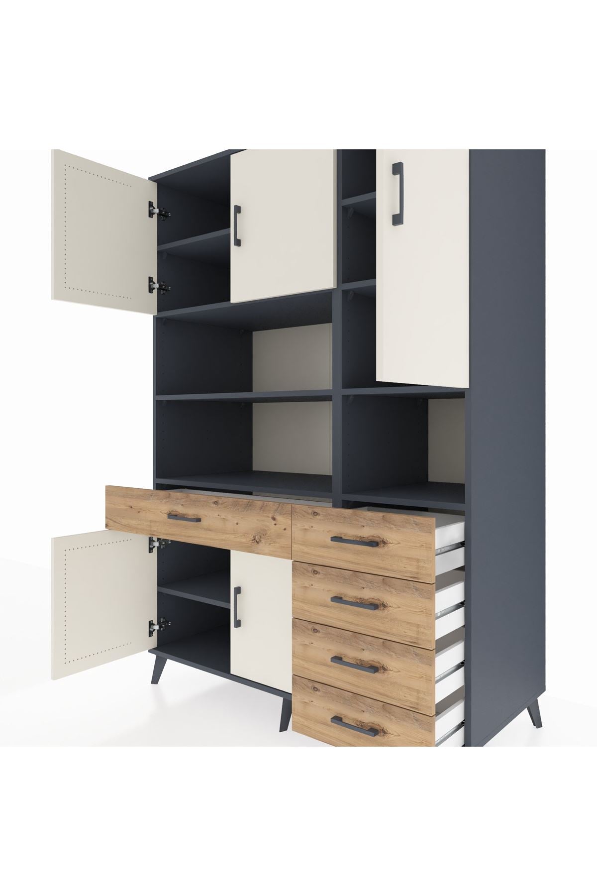 Kronos Dolap 9 Raflı 5 Çekmeceli 5 Kapaklı 132x59x195 Antrasit-Aytaşı/Çam