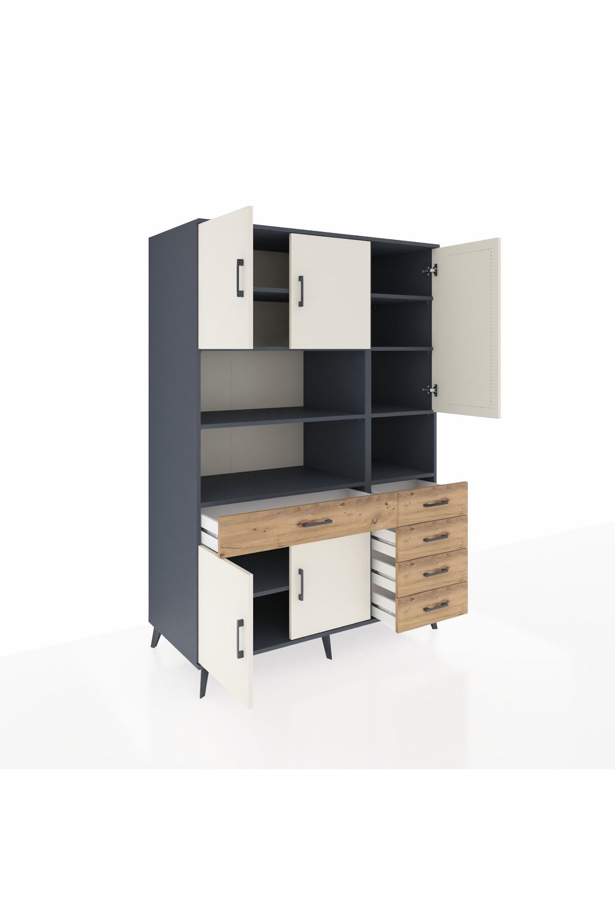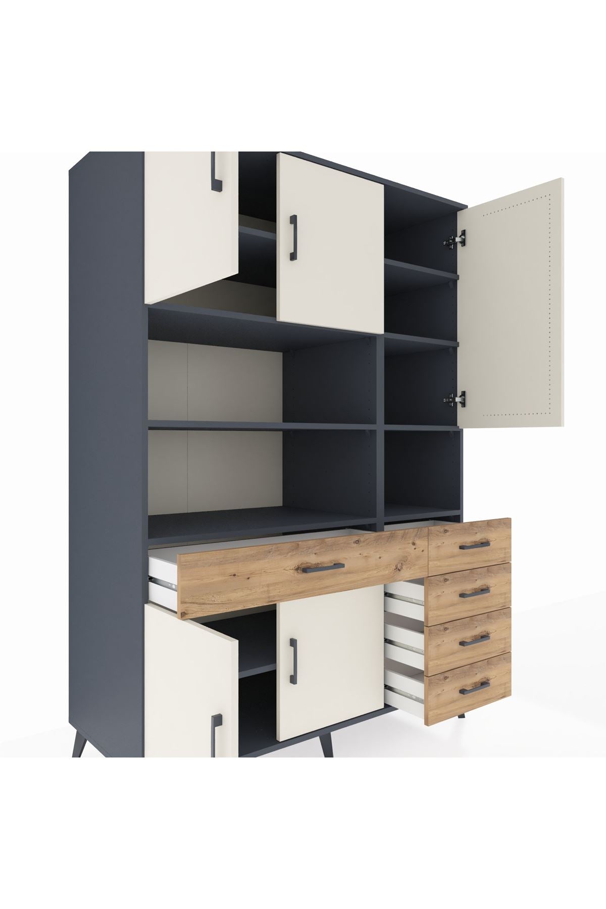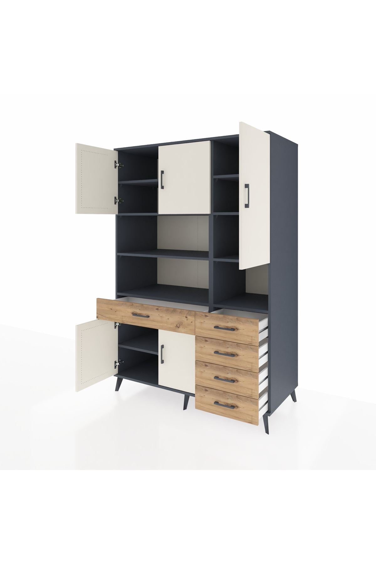 🚪 Kronos Dolap 9 Raflı 5 Çekmeceli 5 Kapaklı 132x59x195 Antrasit-Aytaşı/Çam: Üst Düzey Düzen Sanatı!