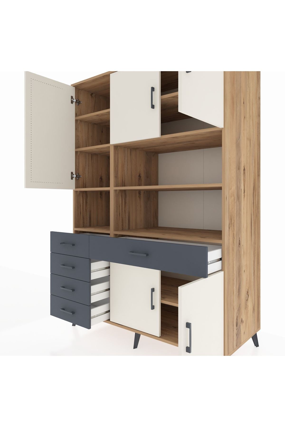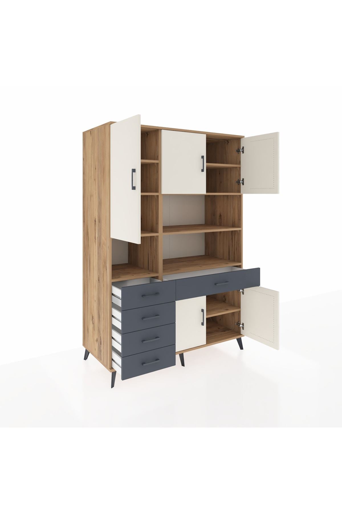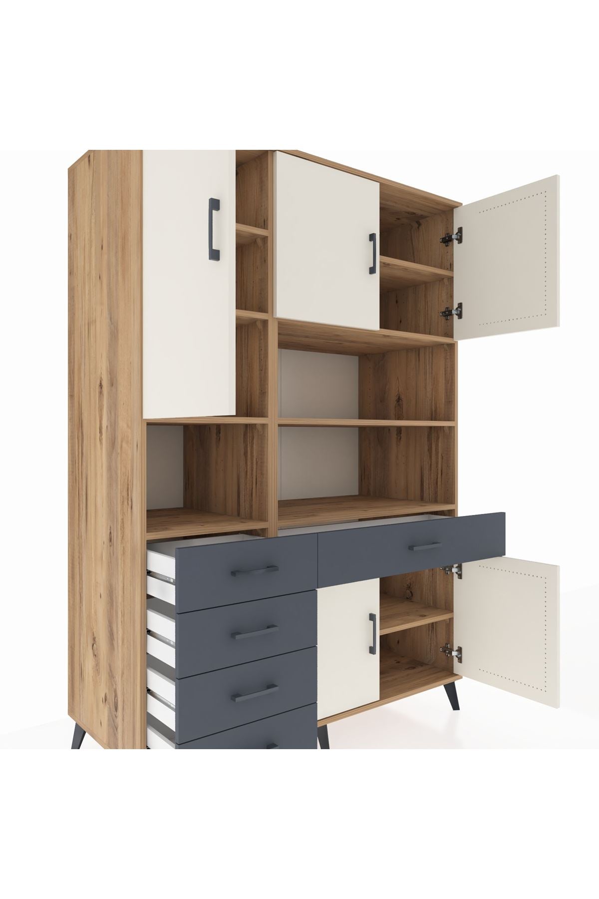 Kronos Dolap 9 Raflı 5 Çekmeceli 5 Kapaklı 132x59x195 Çam-Aytaşı/Antrasit