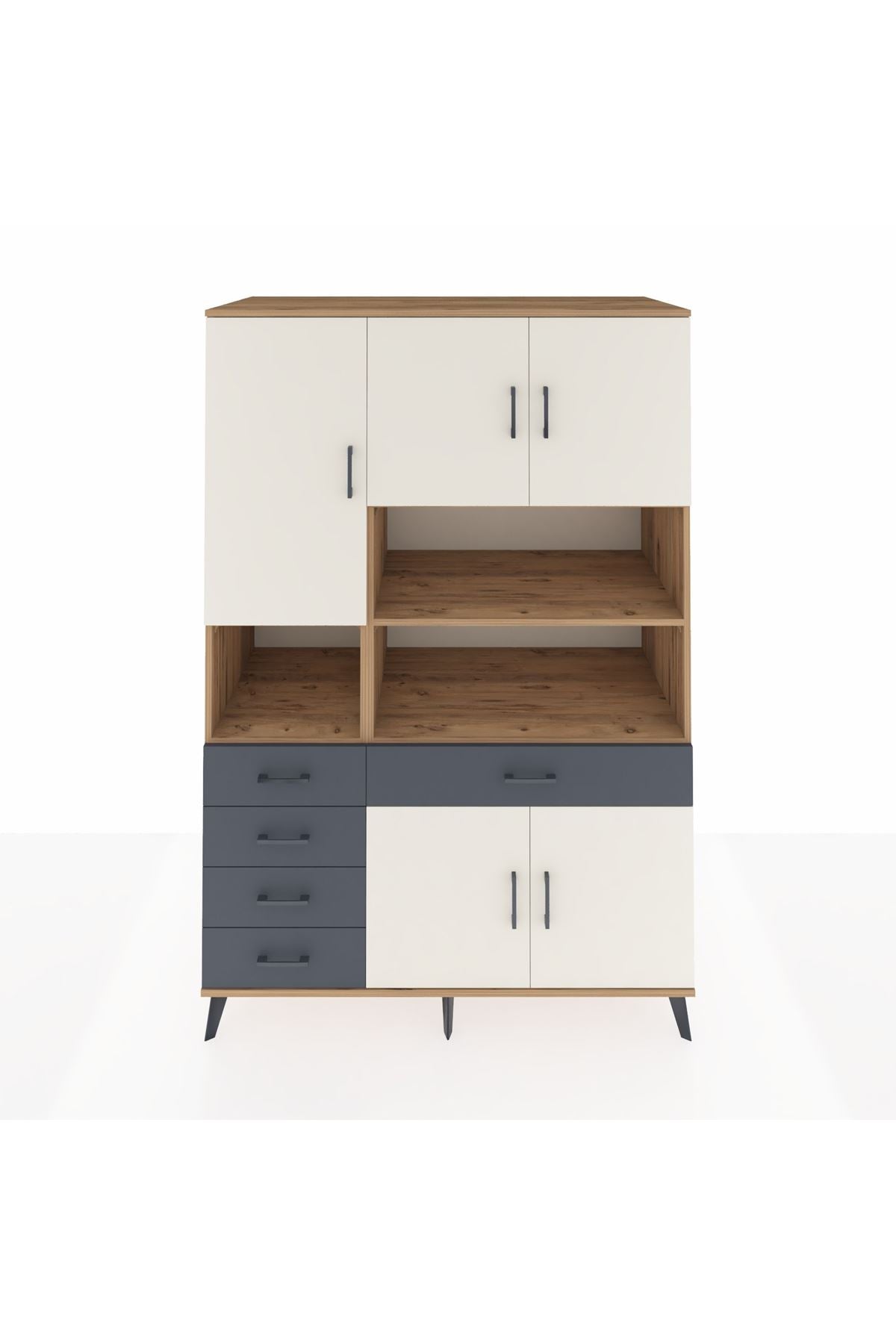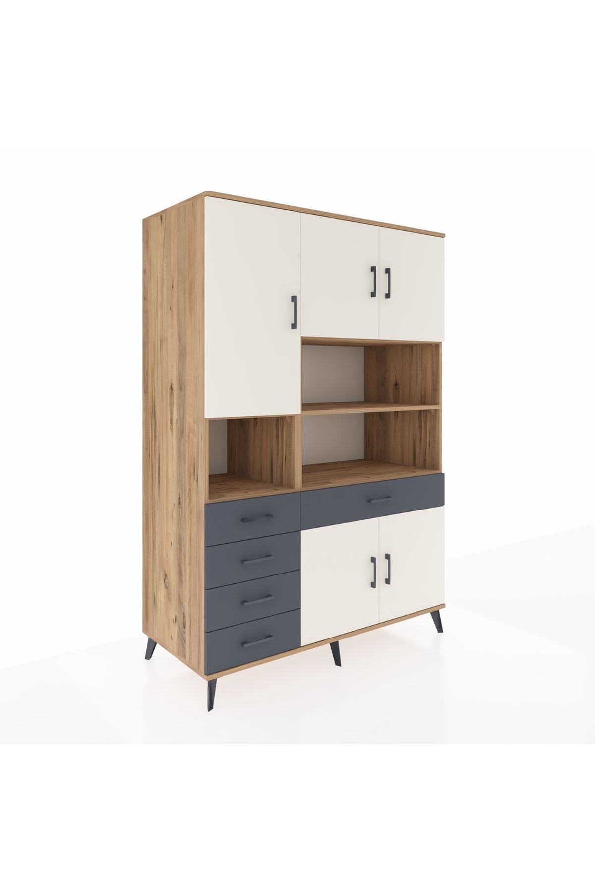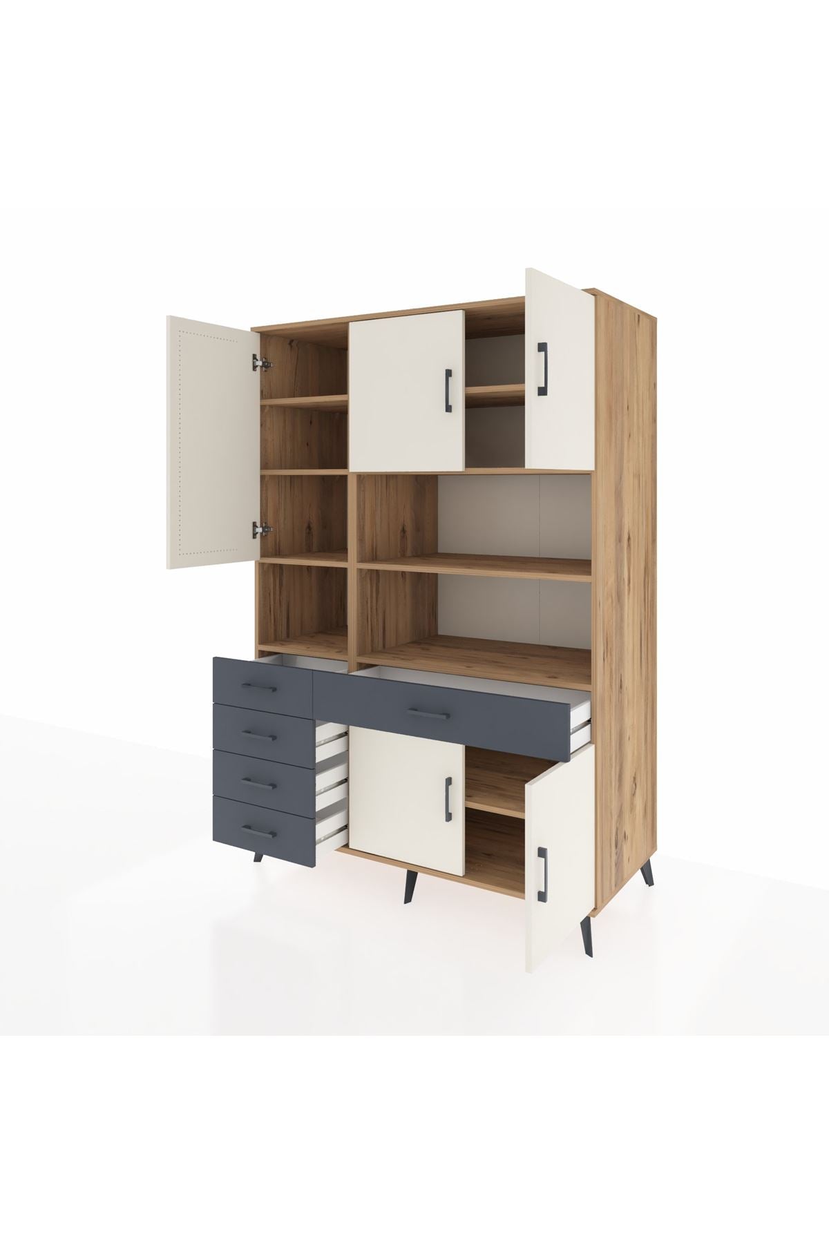 Kronos Dolap 9 Raflı 5 Çekmeceli 5 Kapaklı 132x59x195 Çam-Aytaşı/Antrasit