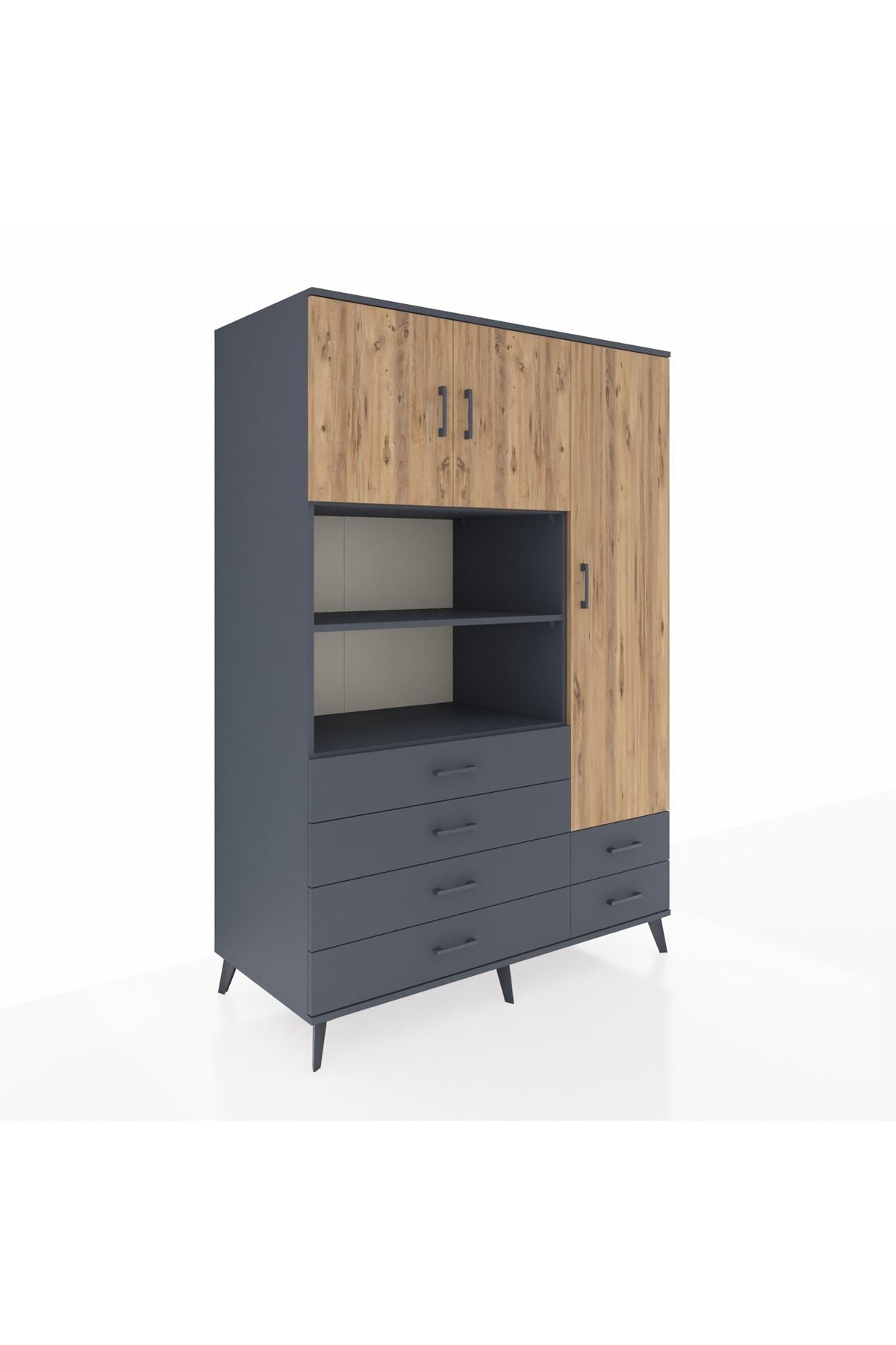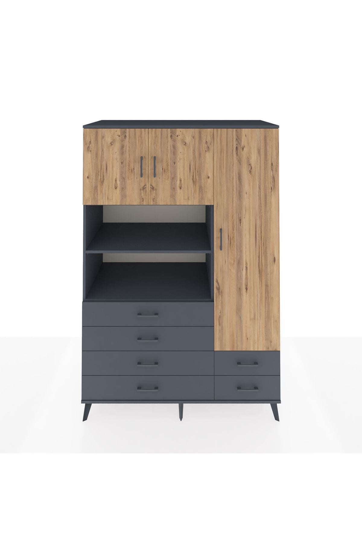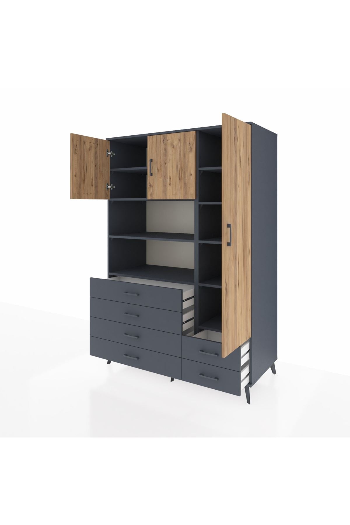 Kronos Dolap 9 Raflı 6 Çekmeceli 3 Kapaklı 132x59x195 Antrasit-Çam/Antrasit