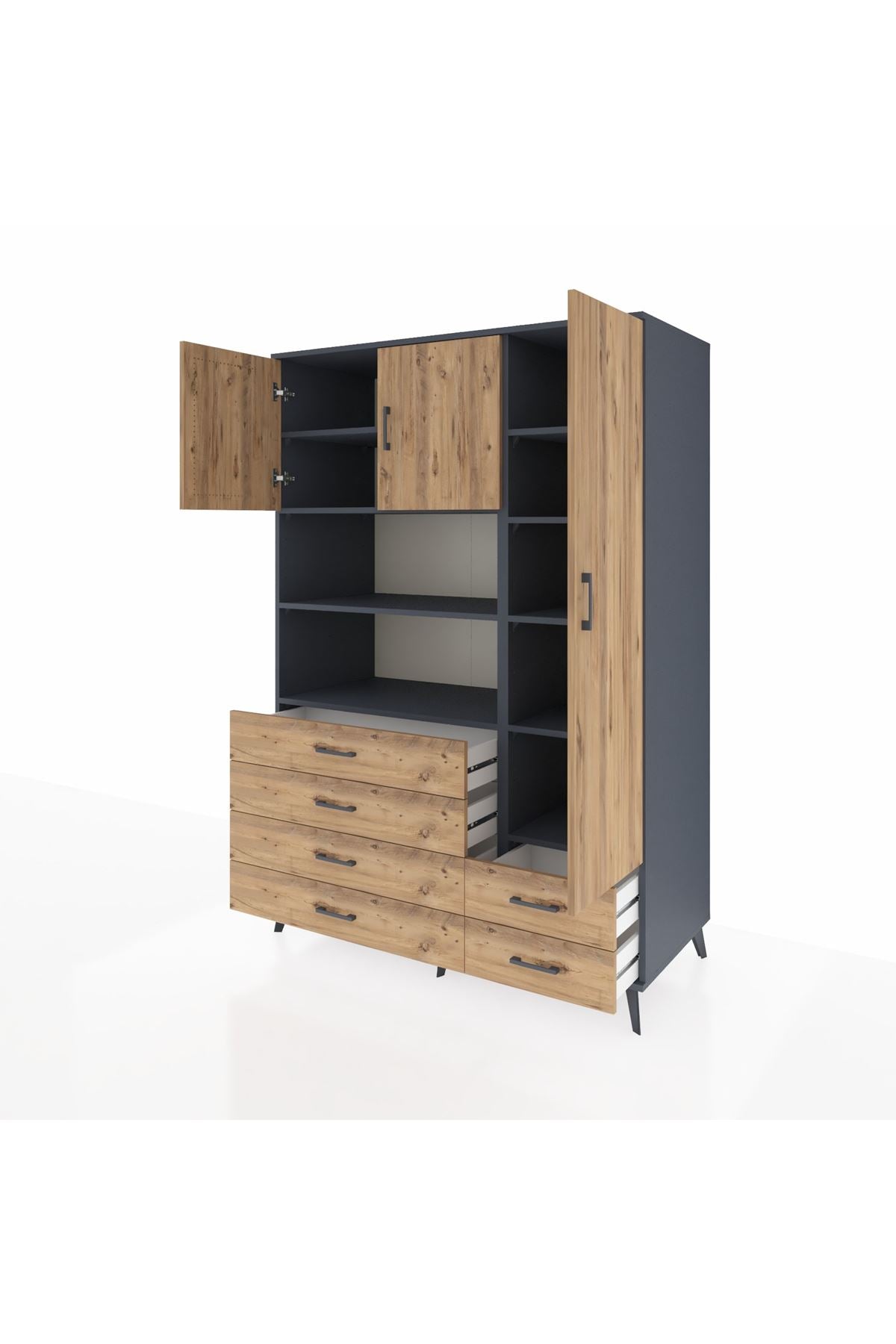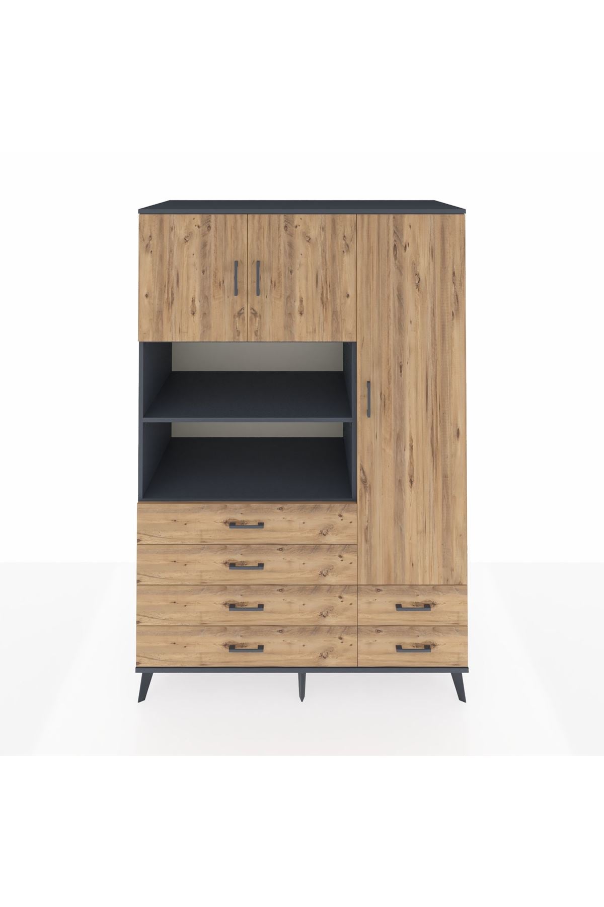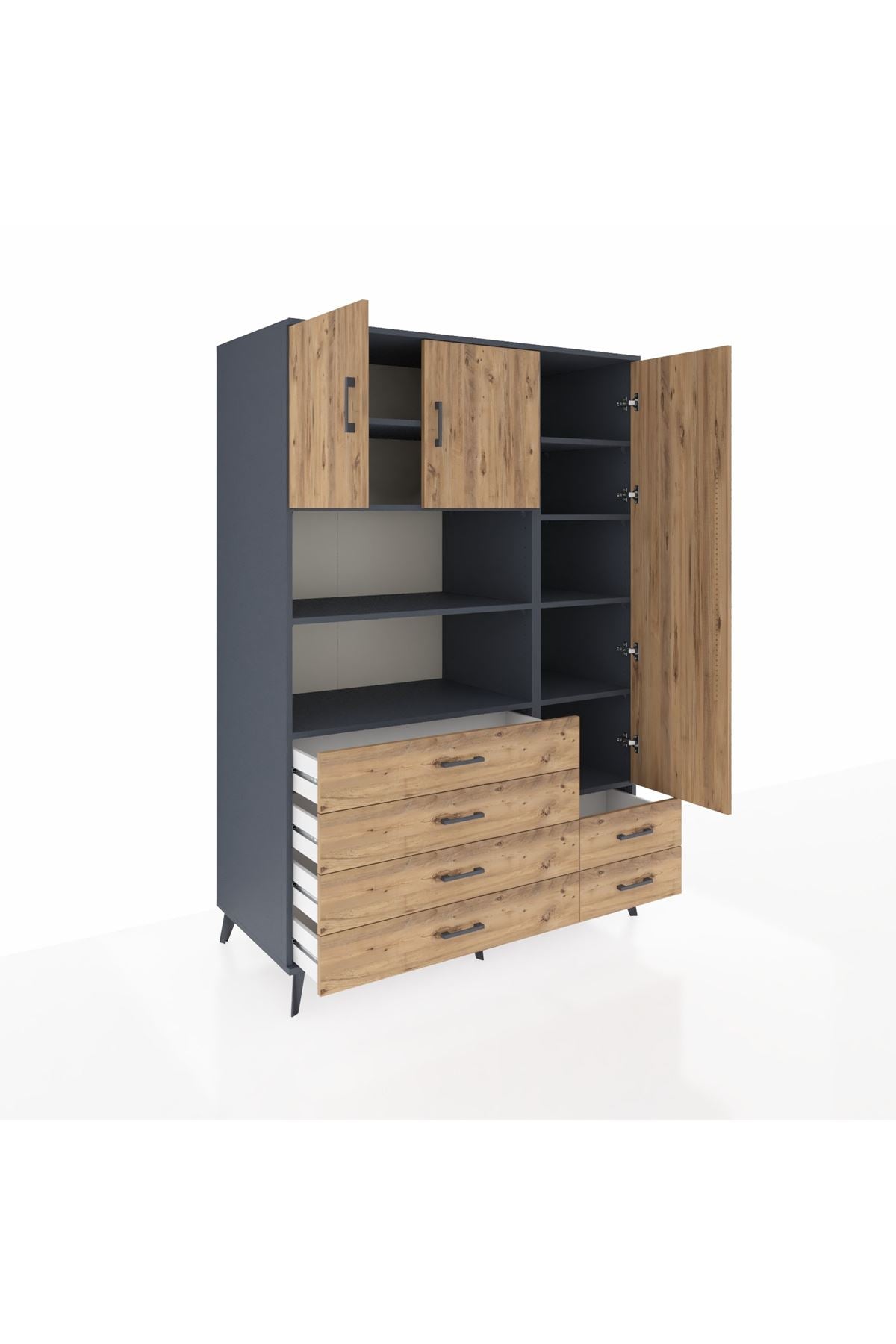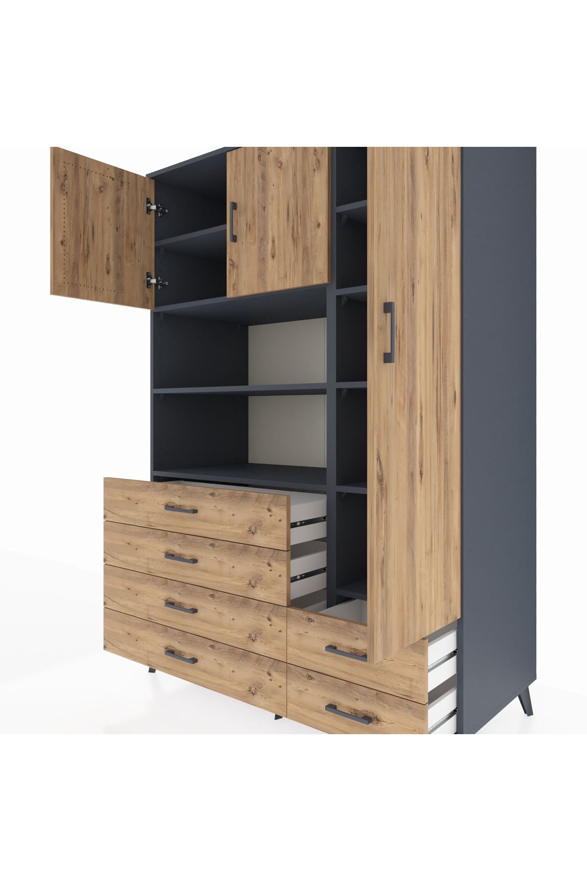 Kronos Dolap 9 Raflı 6 Çekmeceli 3 Kapaklı 132x59x195 Antrasit-Çam/Çam