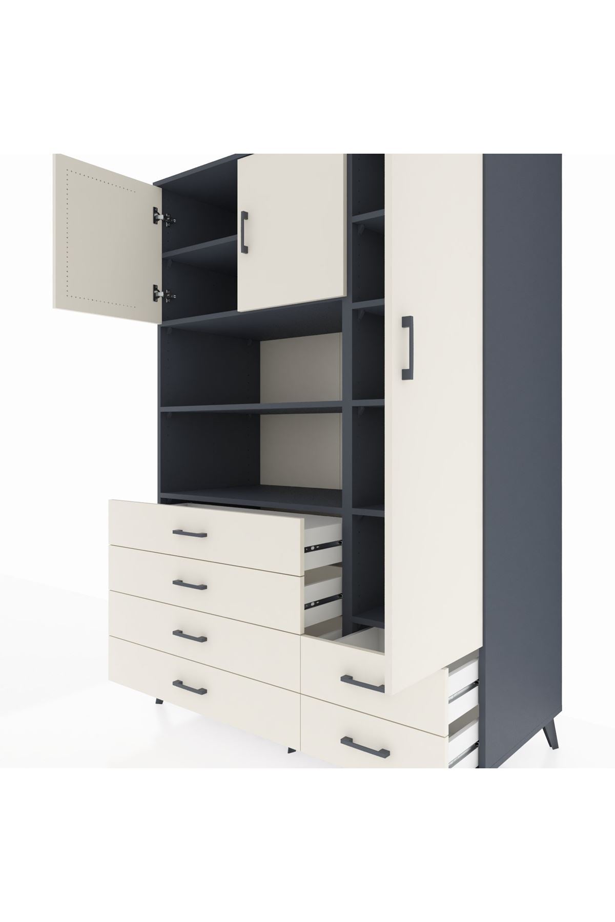 Kronos Dolap 9 Raflı 6 Çekmeceli 3 Kapaklı 132x59x195 Antrasit-Aytaşı/Aytaşı