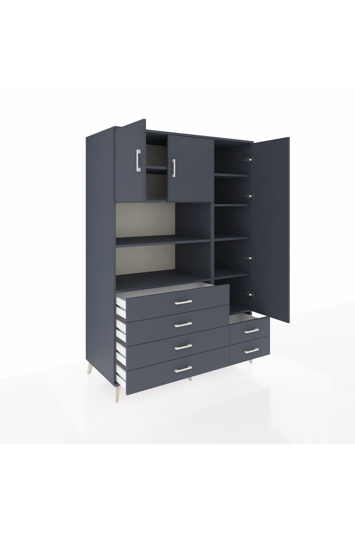 Kronos Dolap 9 Raflı 6 Çekmeceli 3 Kapaklı 132x59x195 Antrasit-Antrasit/Antrasit