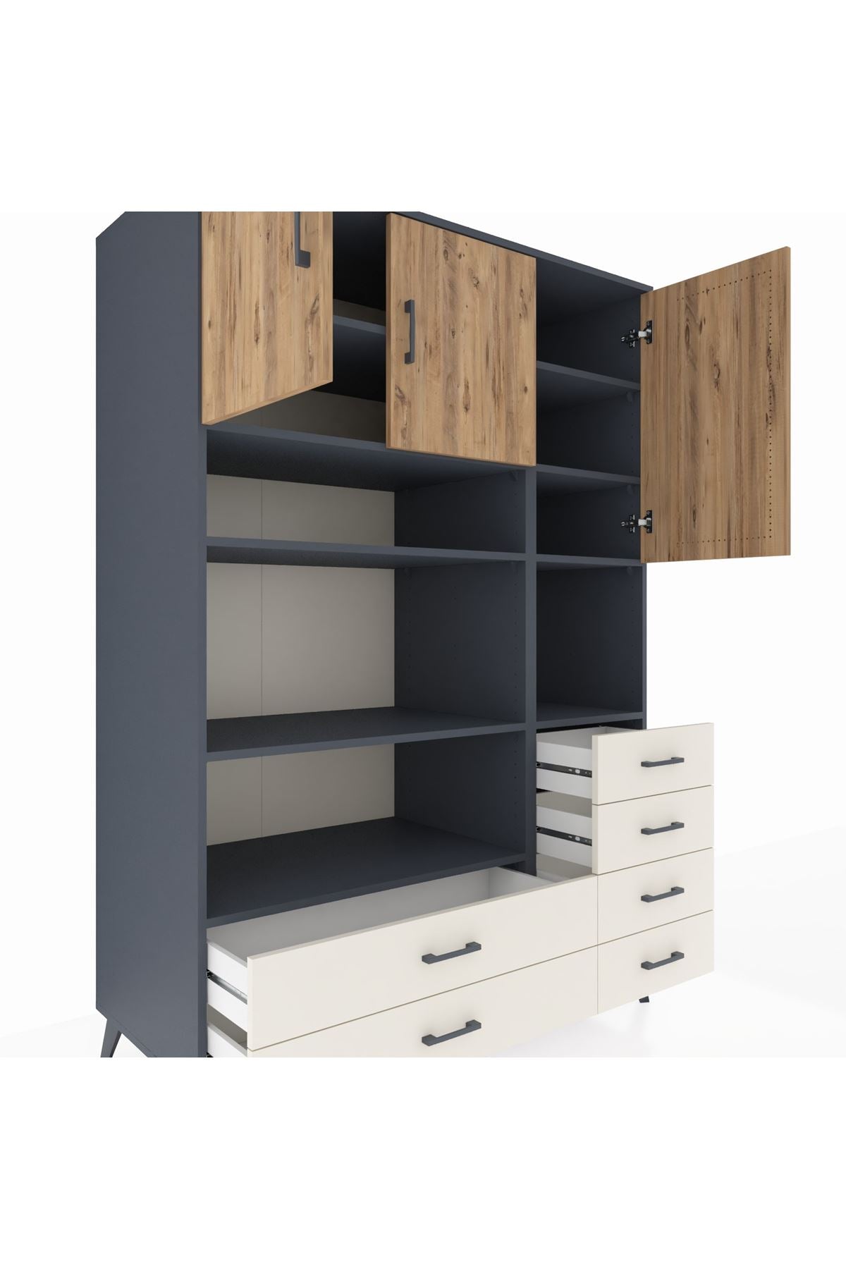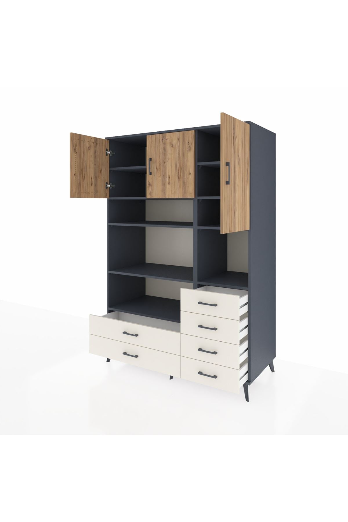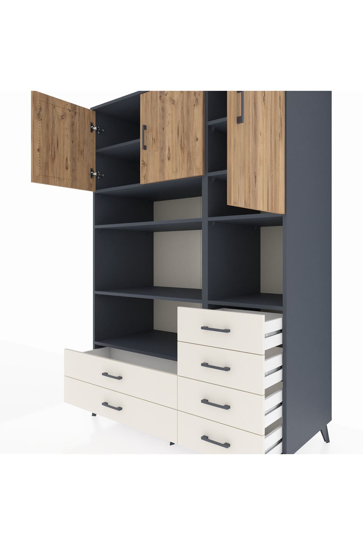 Kronos Dolap 9 Raflı 6 Çekmeceli 3 Kapaklı 132x59x195 Antrasit-Çam/Aytaşı