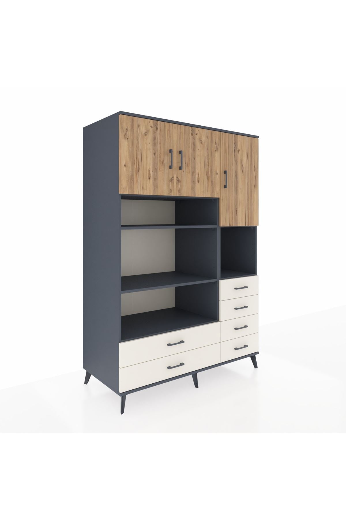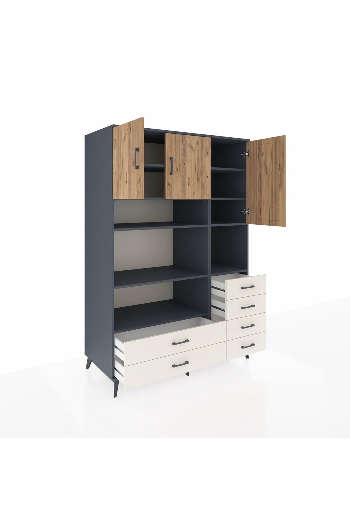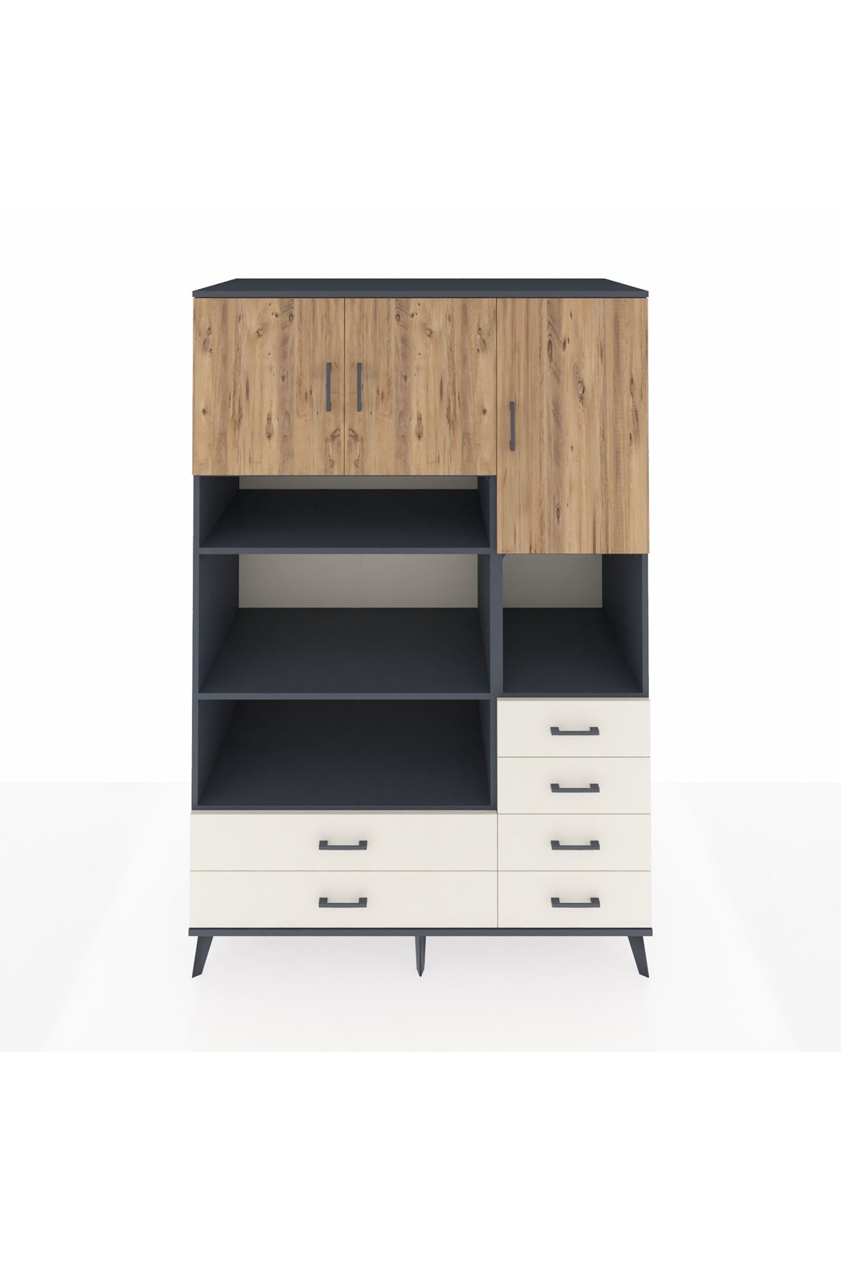 Kronos Dolap 9 Raflı 6 Çekmeceli 3 Kapaklı 132x59x195 Antrasit-Çam/Aytaşı