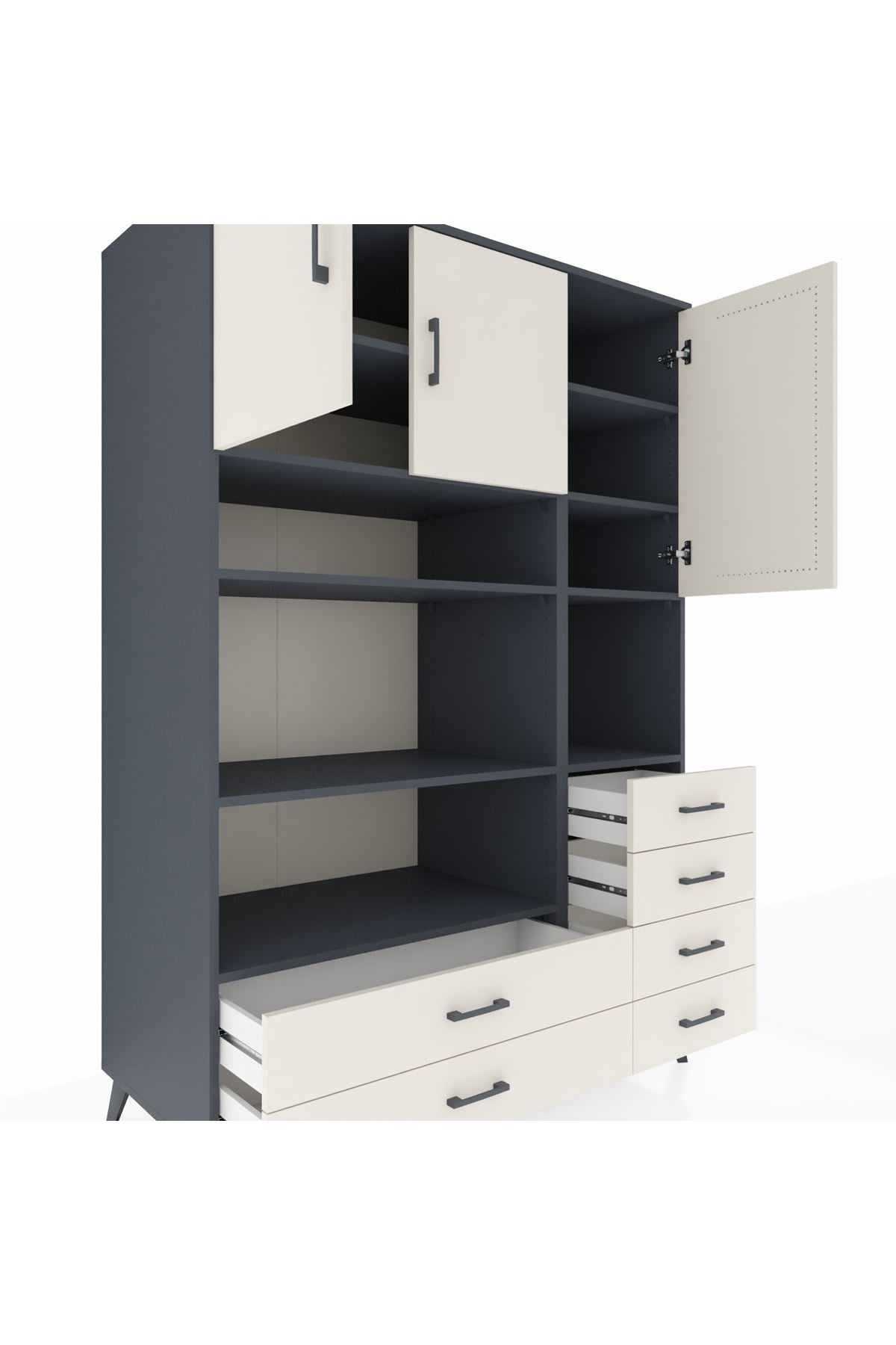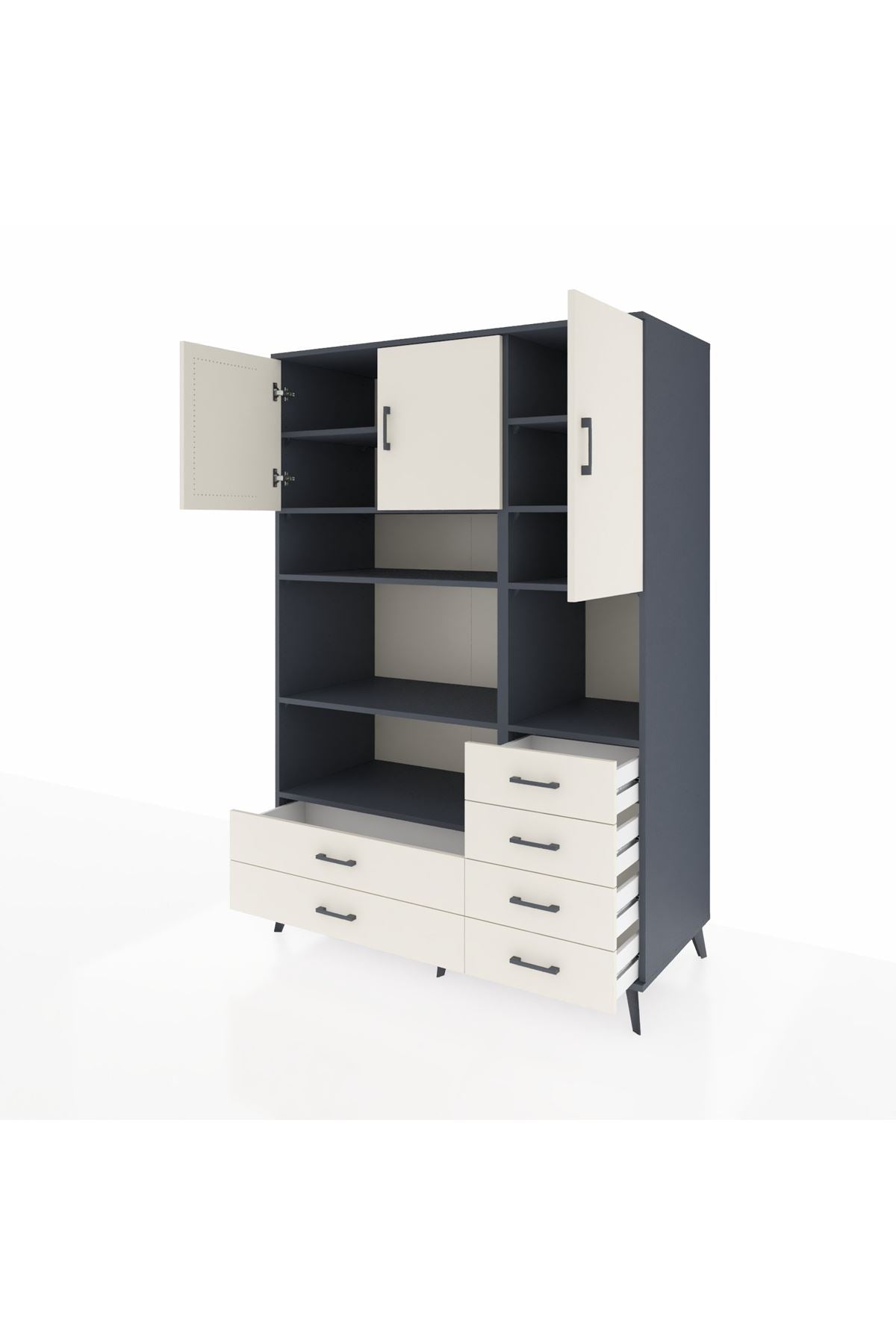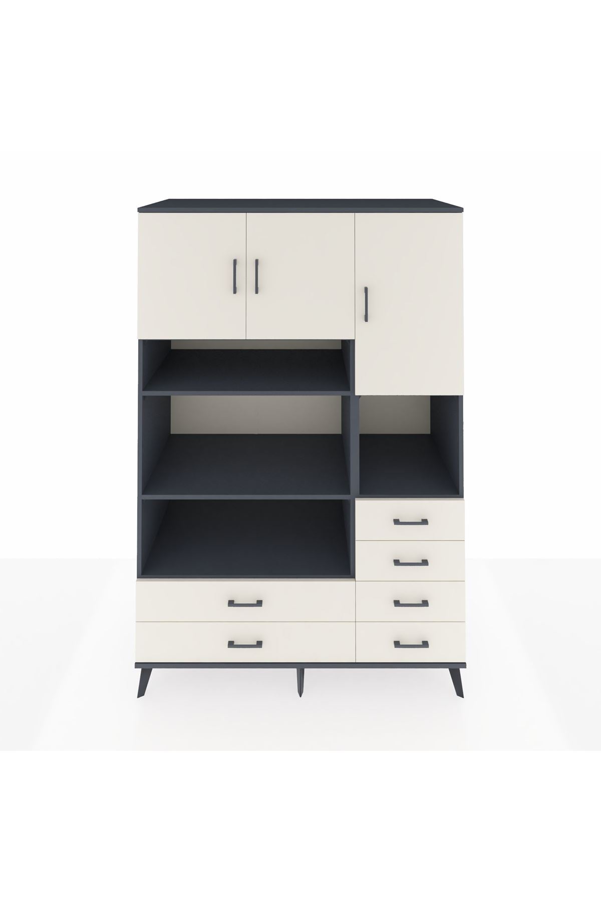 Kronos Dolap 9 Raflı 6 Çekmeceli 3 Kapaklı 132x59x195 Antrasit-Aytaşı/Aytaşı