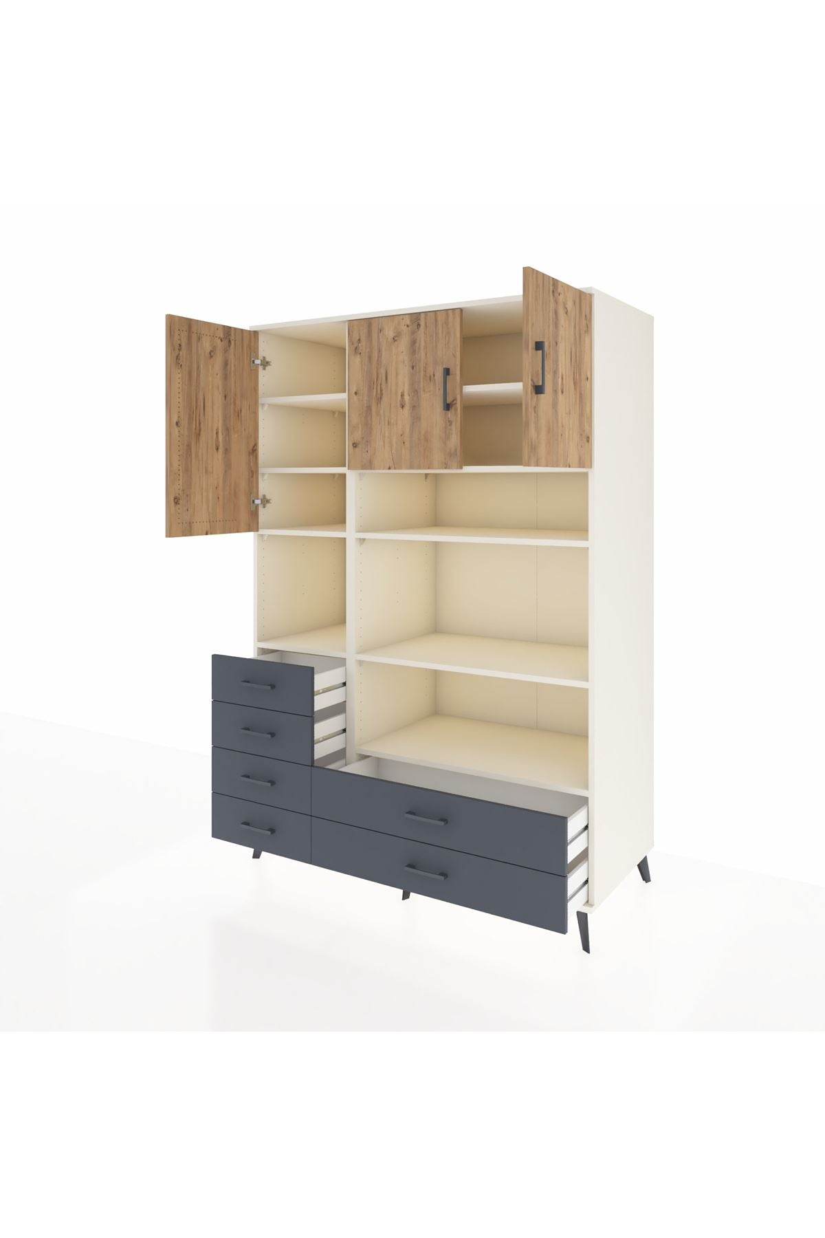 Kronos Dolap 9 Raflı 6 Çekmeceli 3 Kapaklı 132x59x195 Aytaşı-Çam/Antrasit
