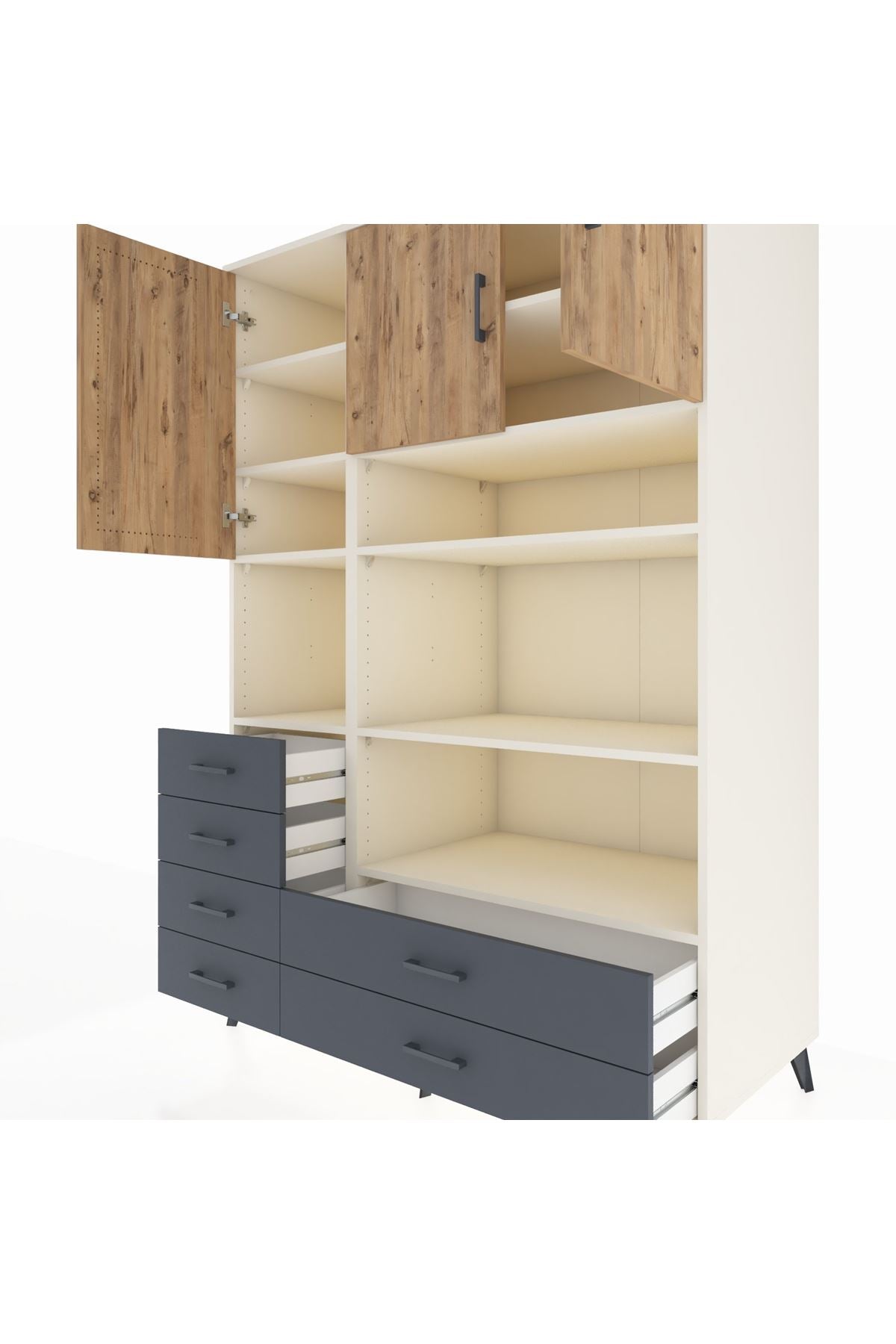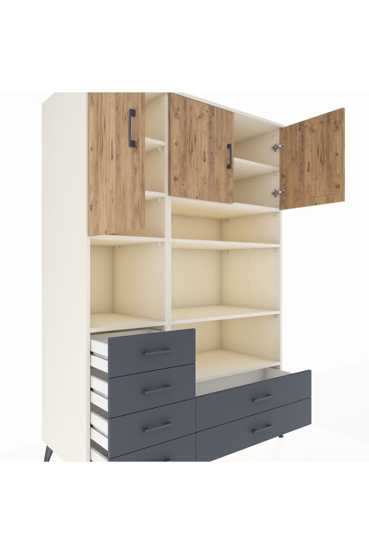 🌞 Kronos Dolap 9 Raflı 6 Çekmeceli 3 Kapaklı 132x59x195 Aytaşı-Çam/Antrasit