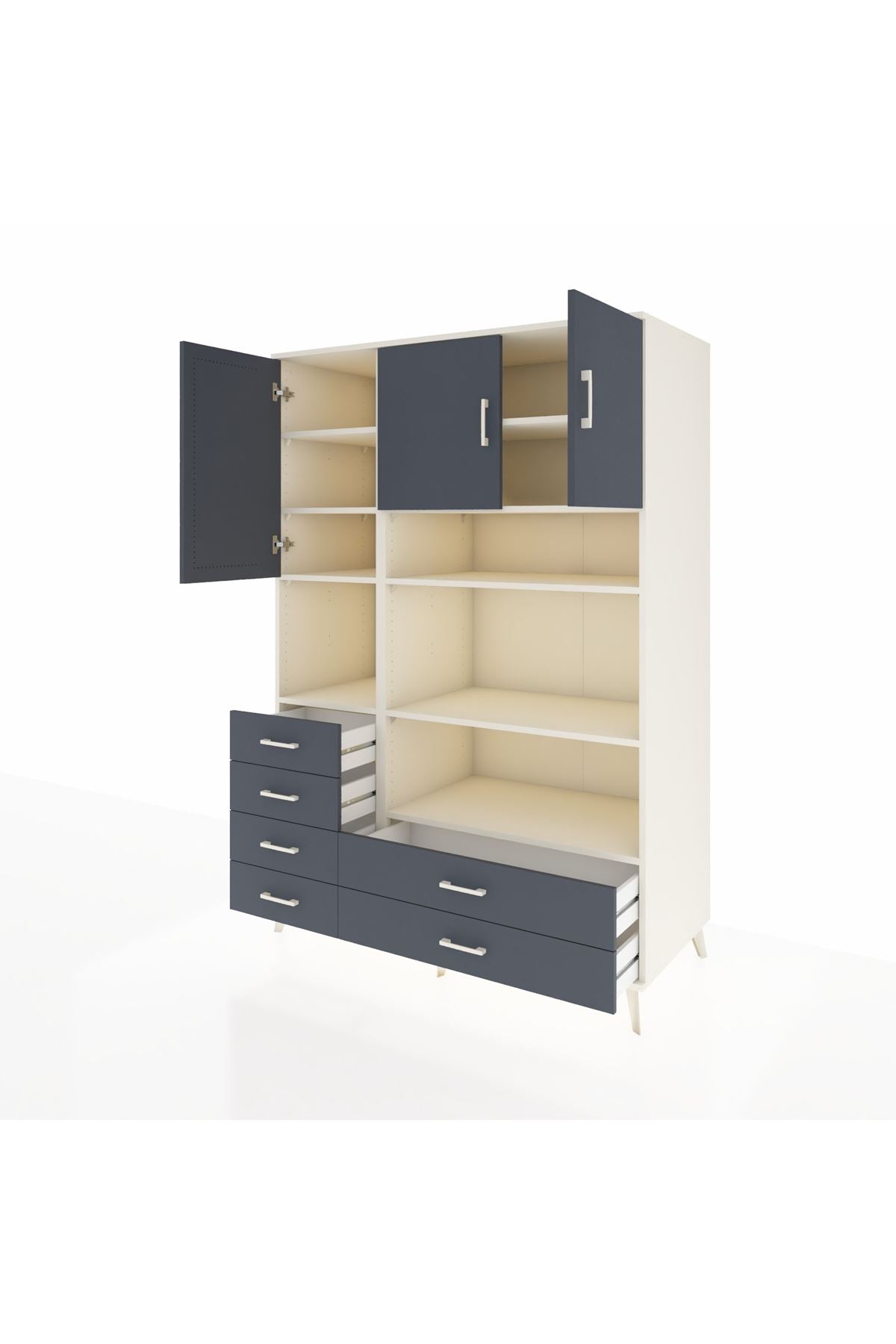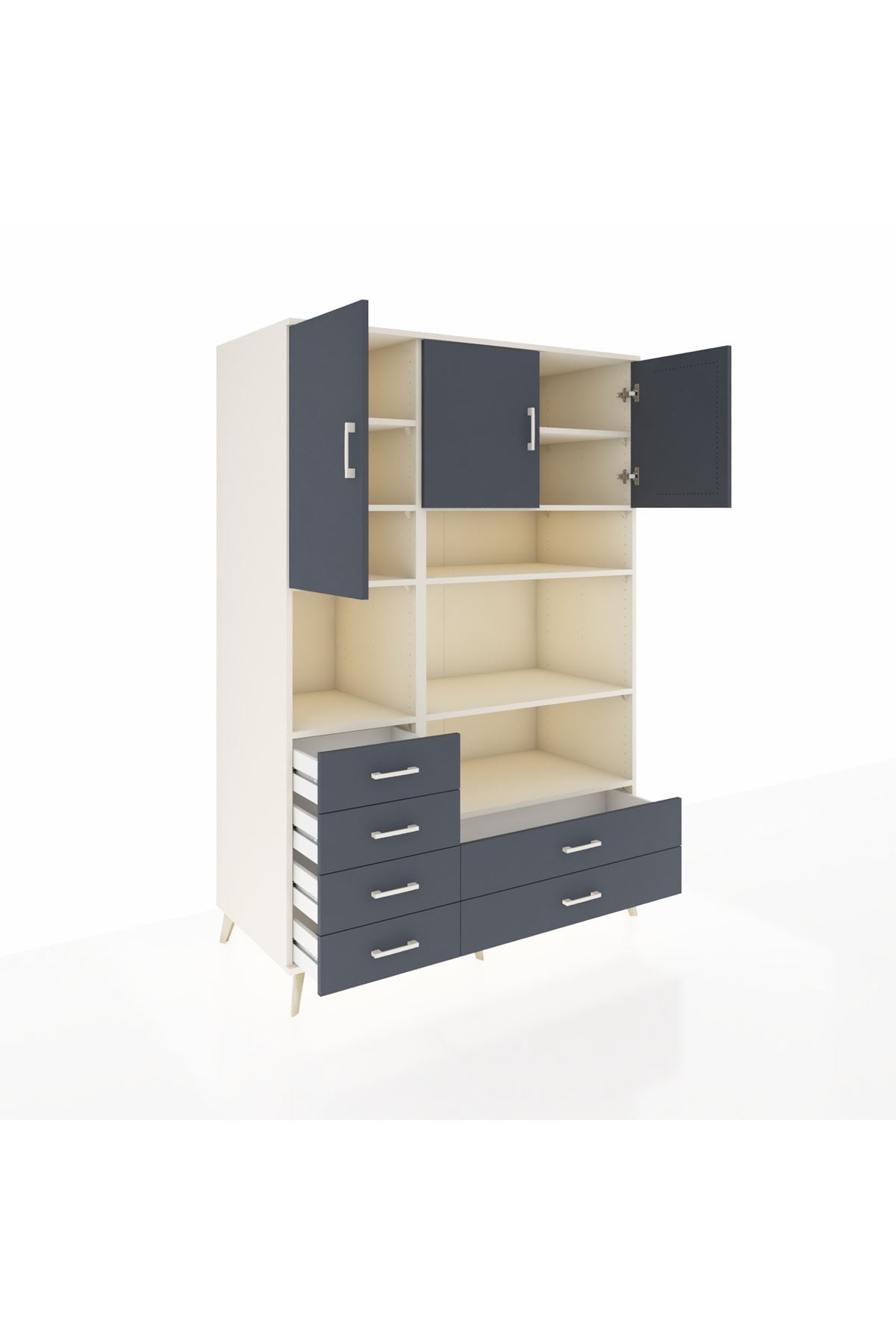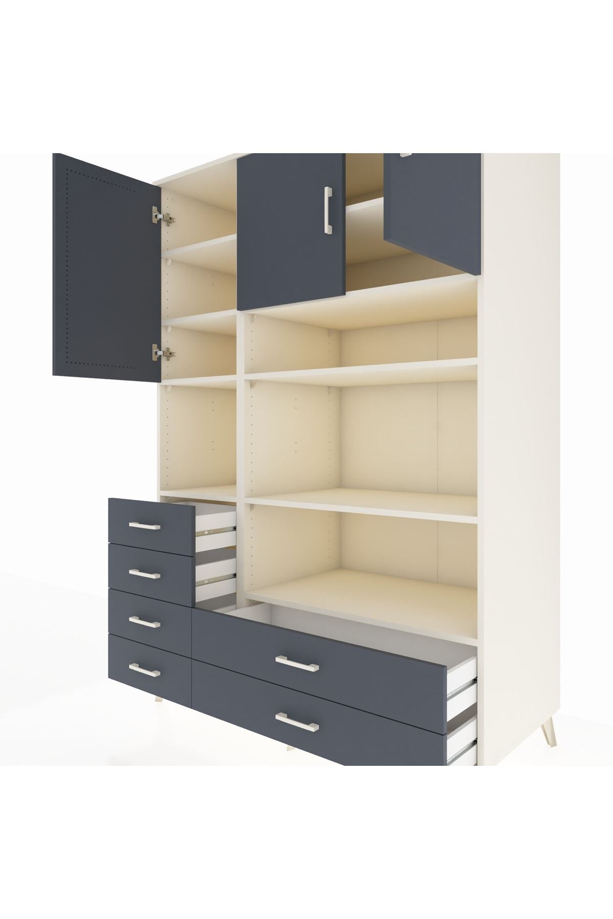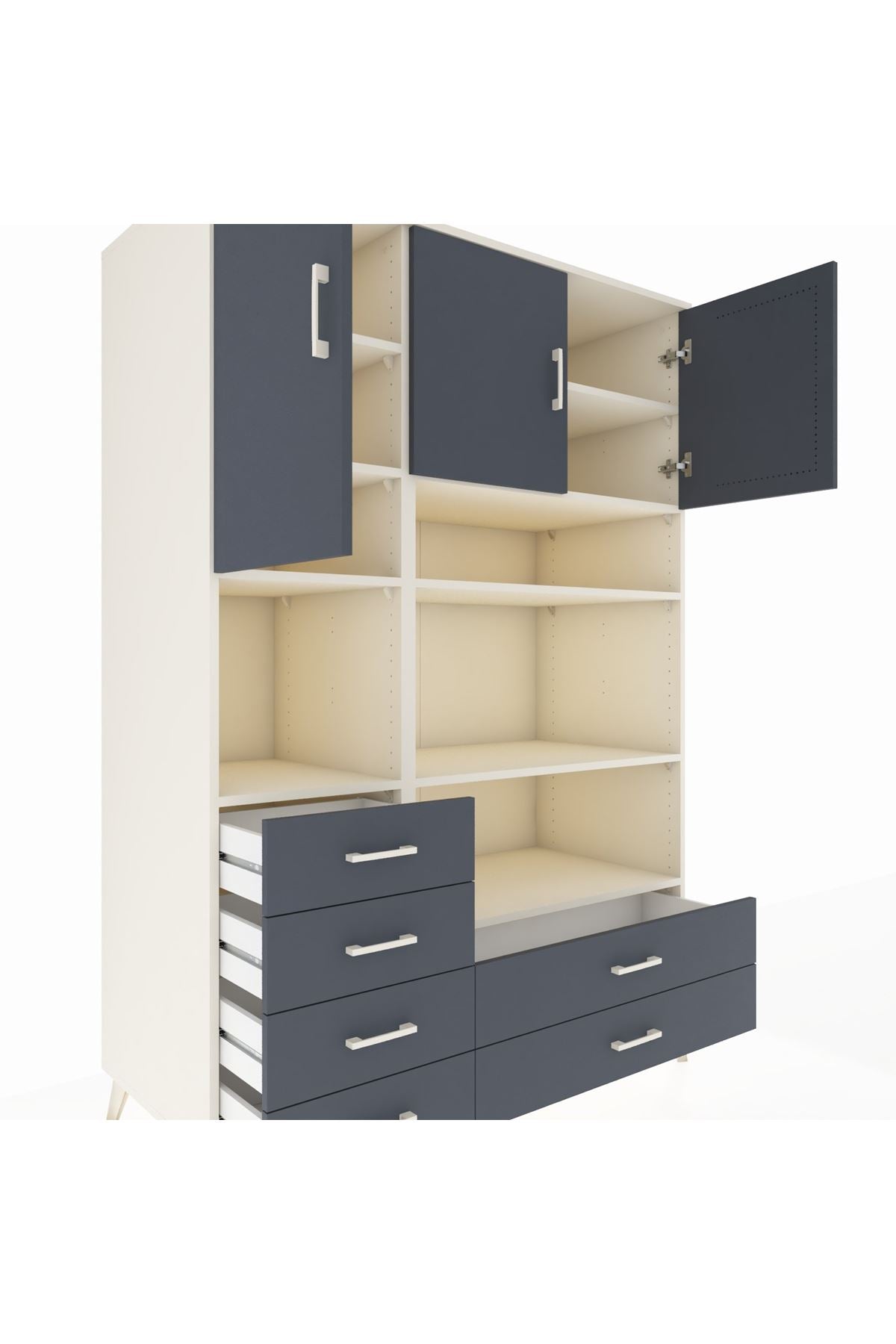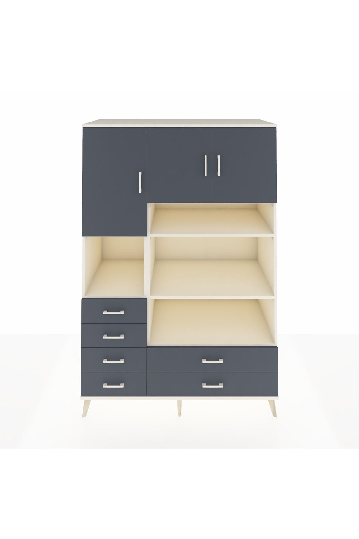 Kronos Dolap 9 Raflı 6 Çekmeceli 3 Kapaklı 132x59x195 Aytaşı-Antrasit/Antrasit