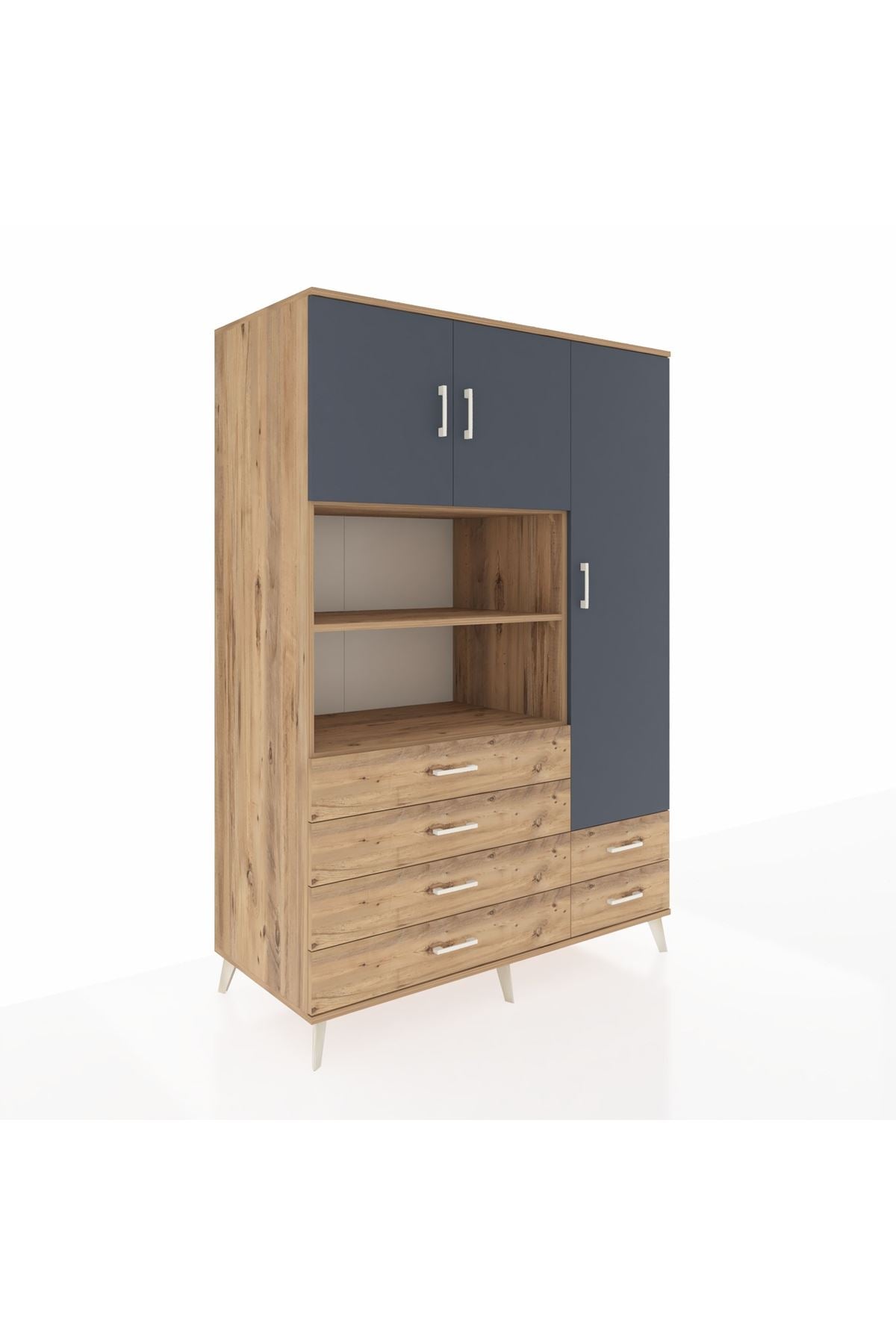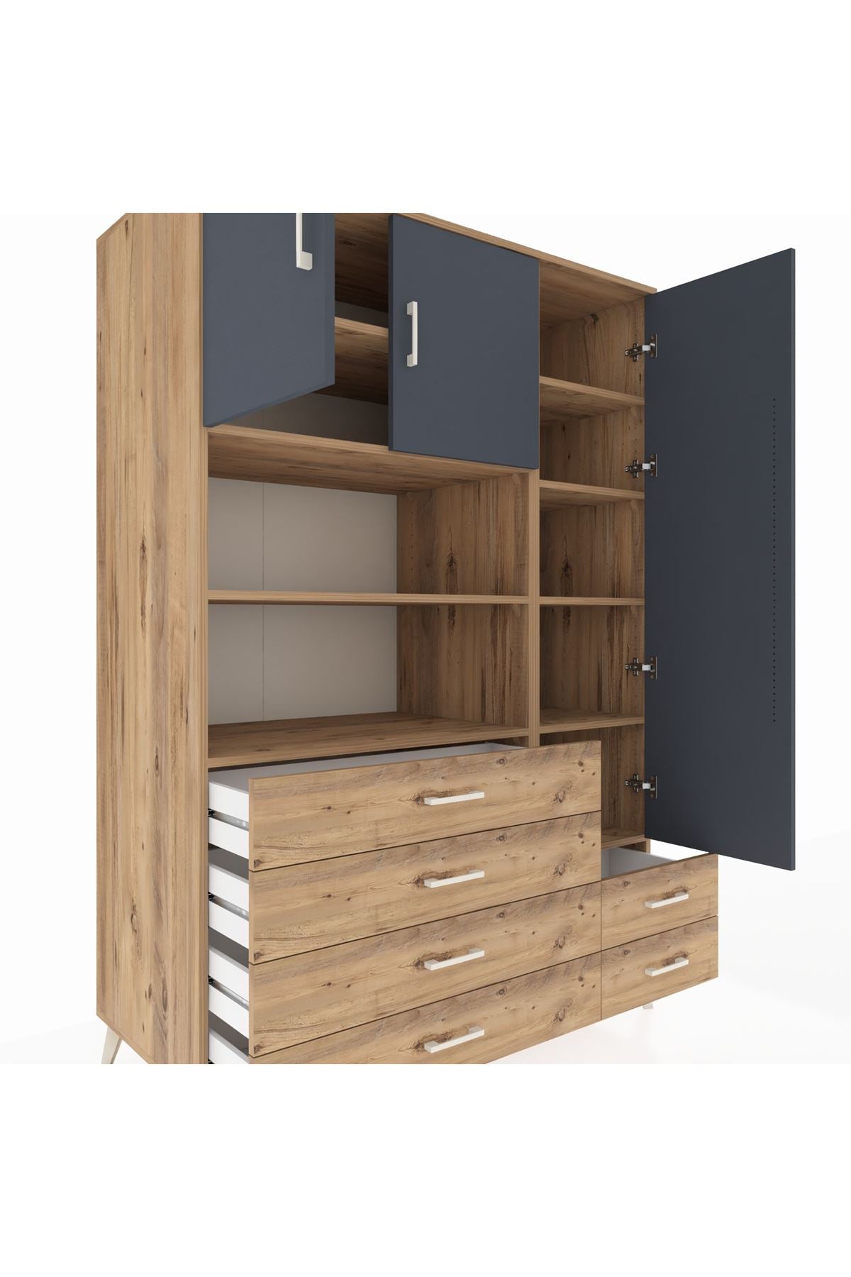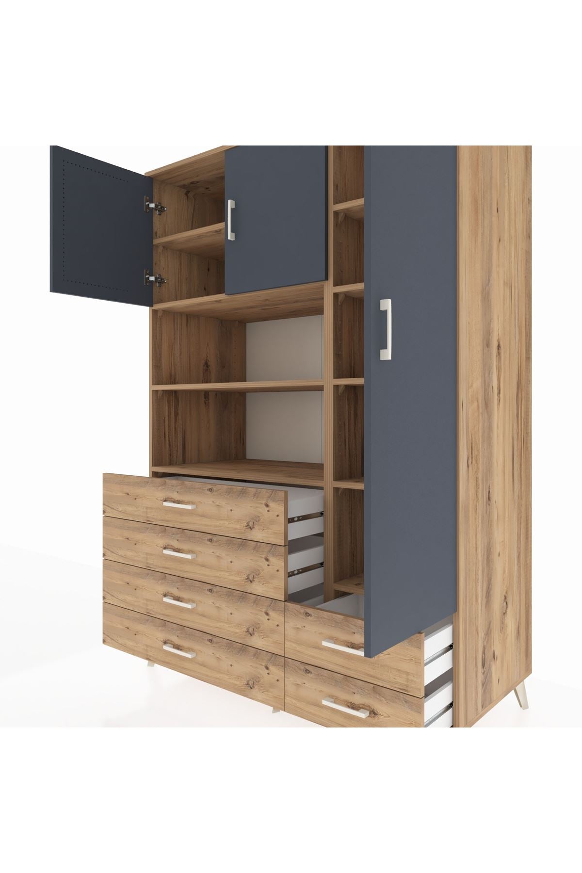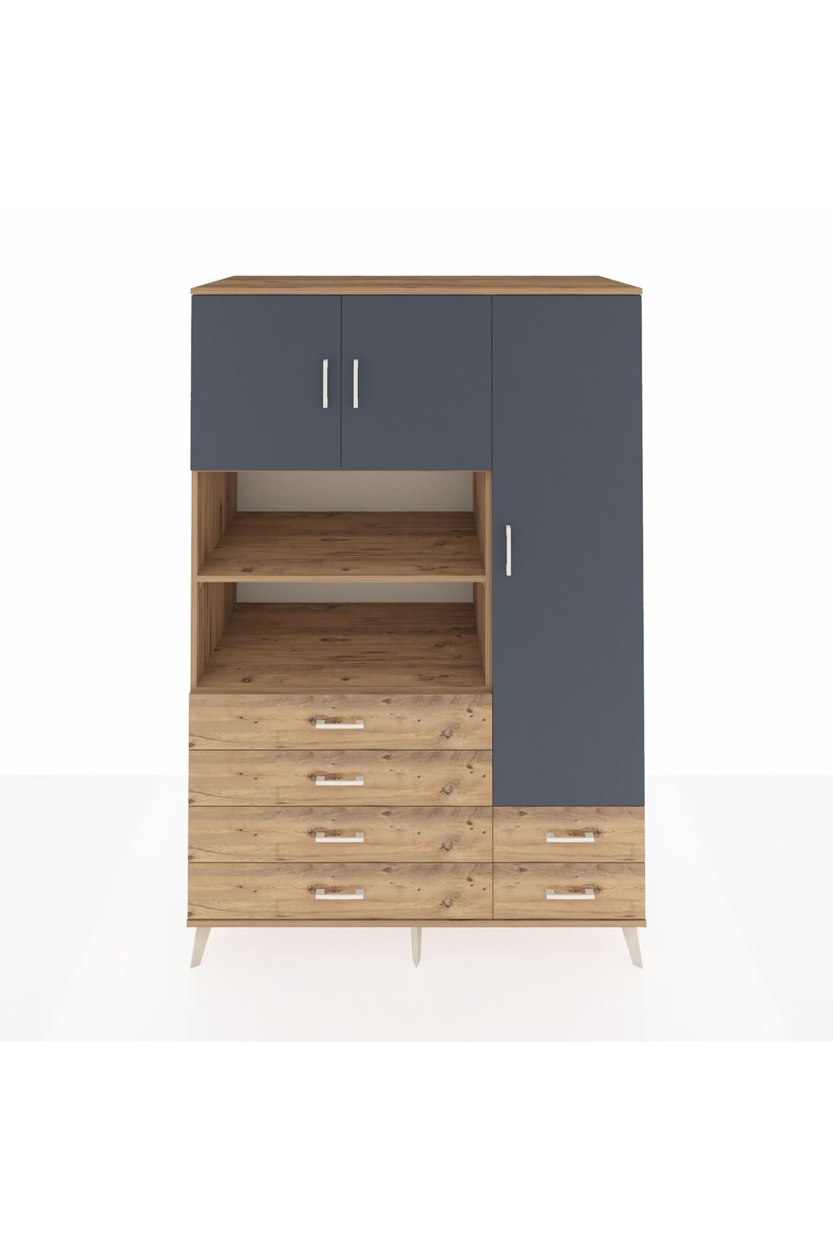 Kronos Dolap 9 Raflı 6 Çekmeceli 3 Kapaklı 132x59x195 Çam-Antrasit/Çam