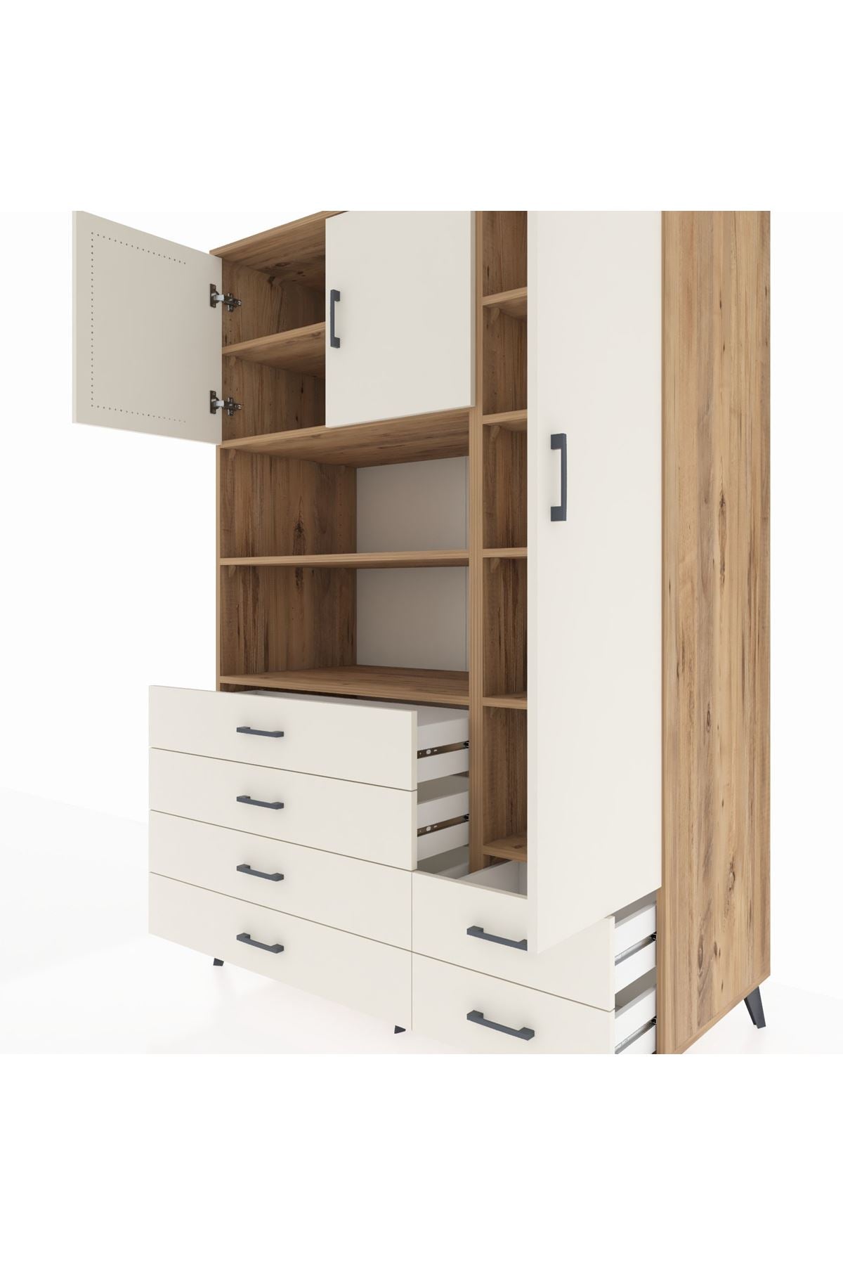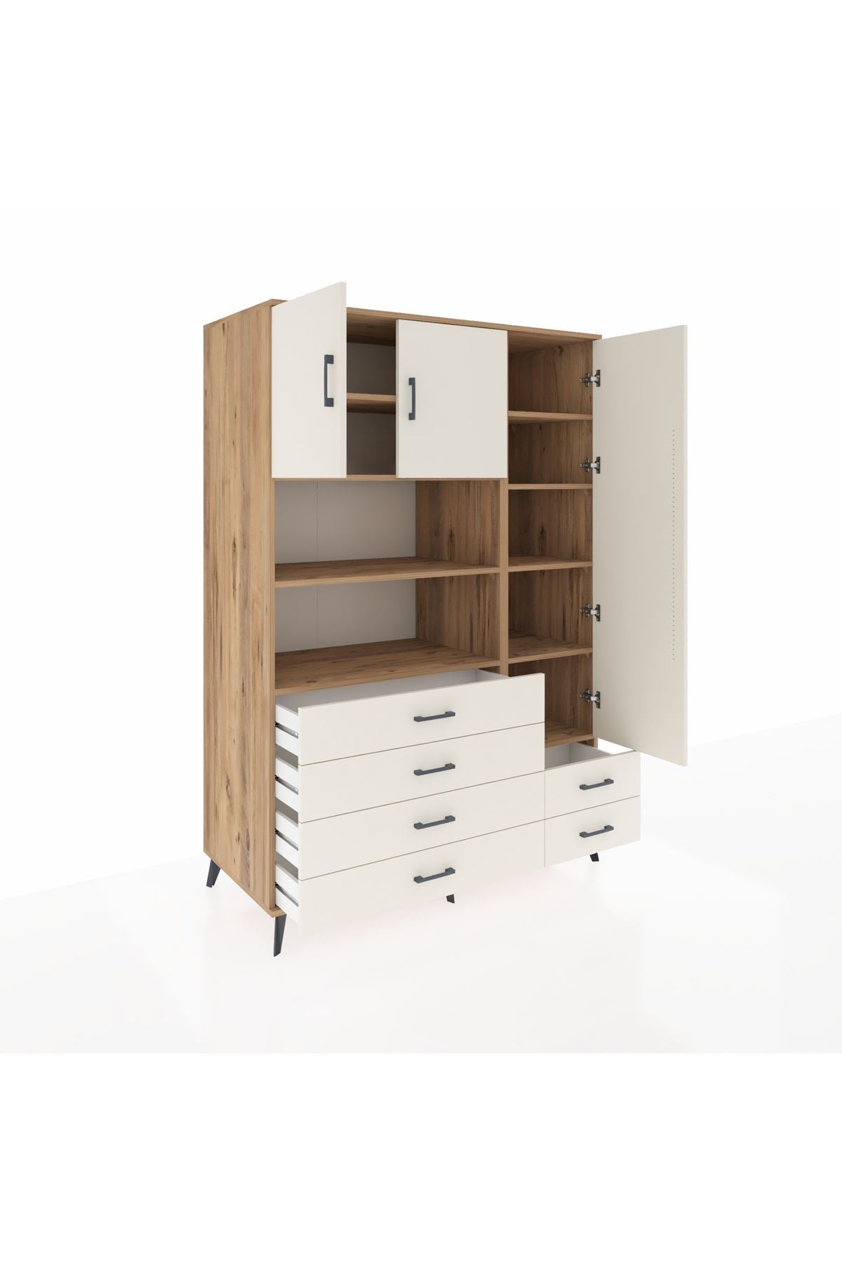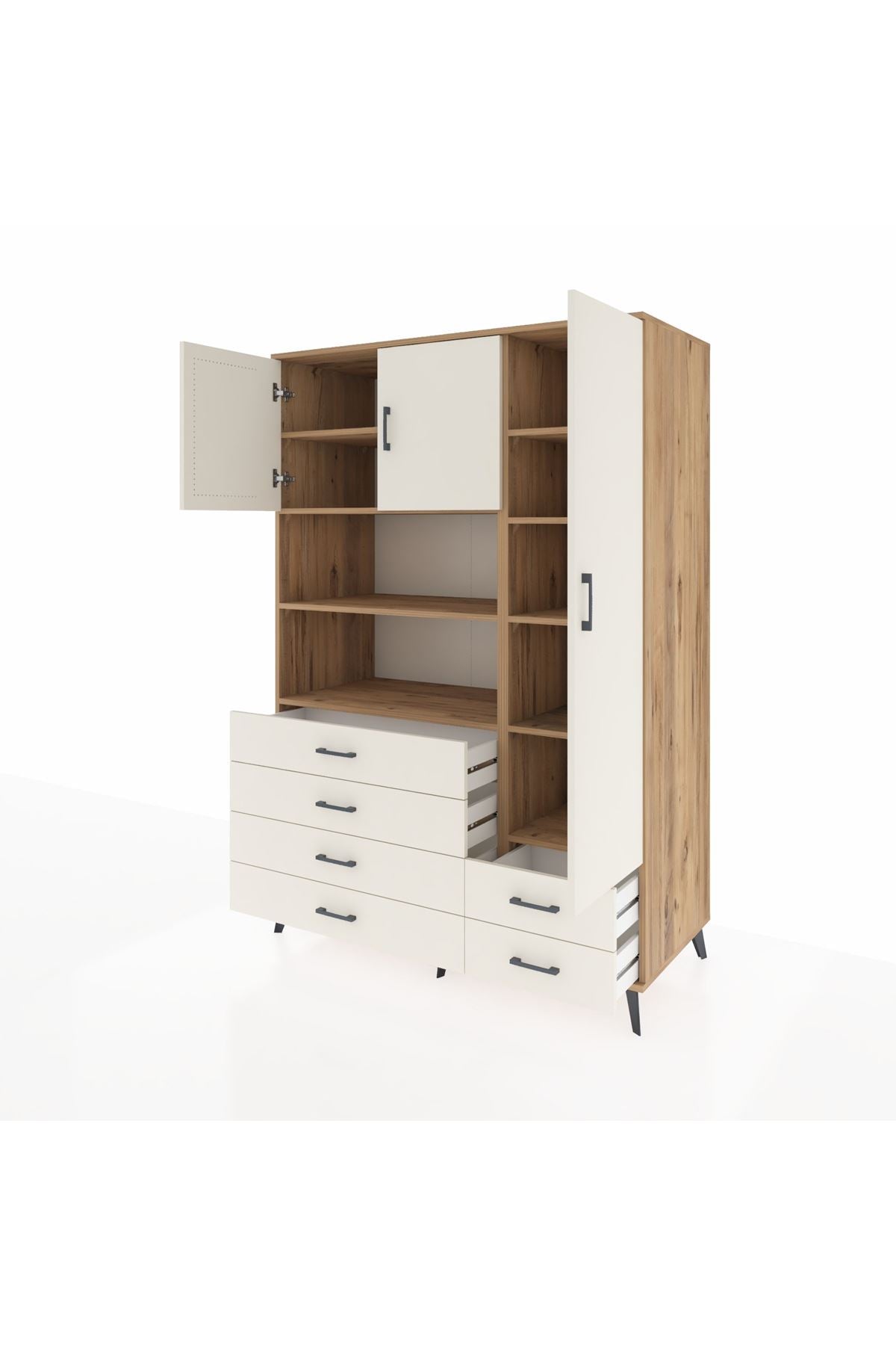 Kronos Dolap 9 Raflı 6 Çekmeceli 3 Kapaklı 132x59x195 Çam-Aytaşı/Aytaşı