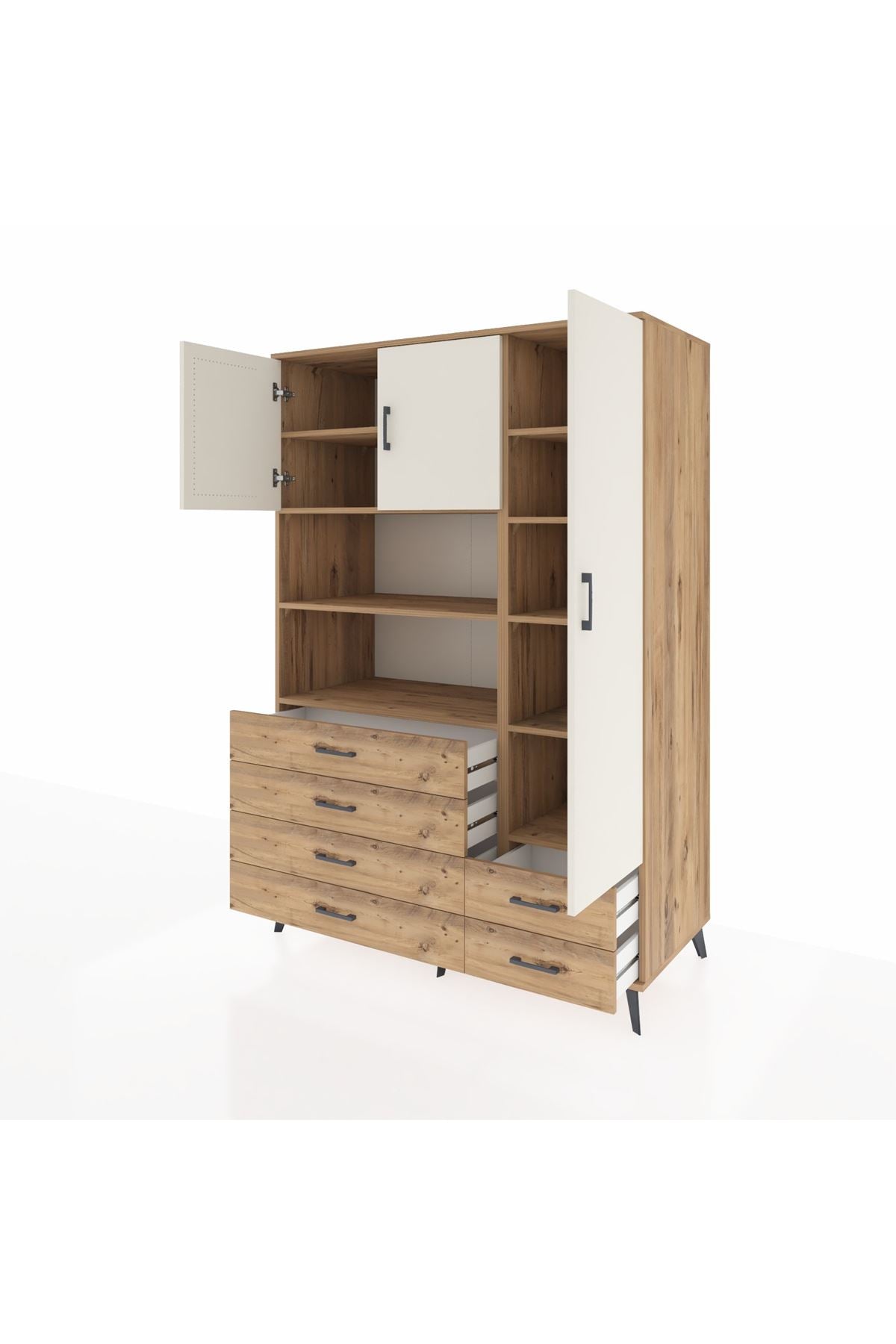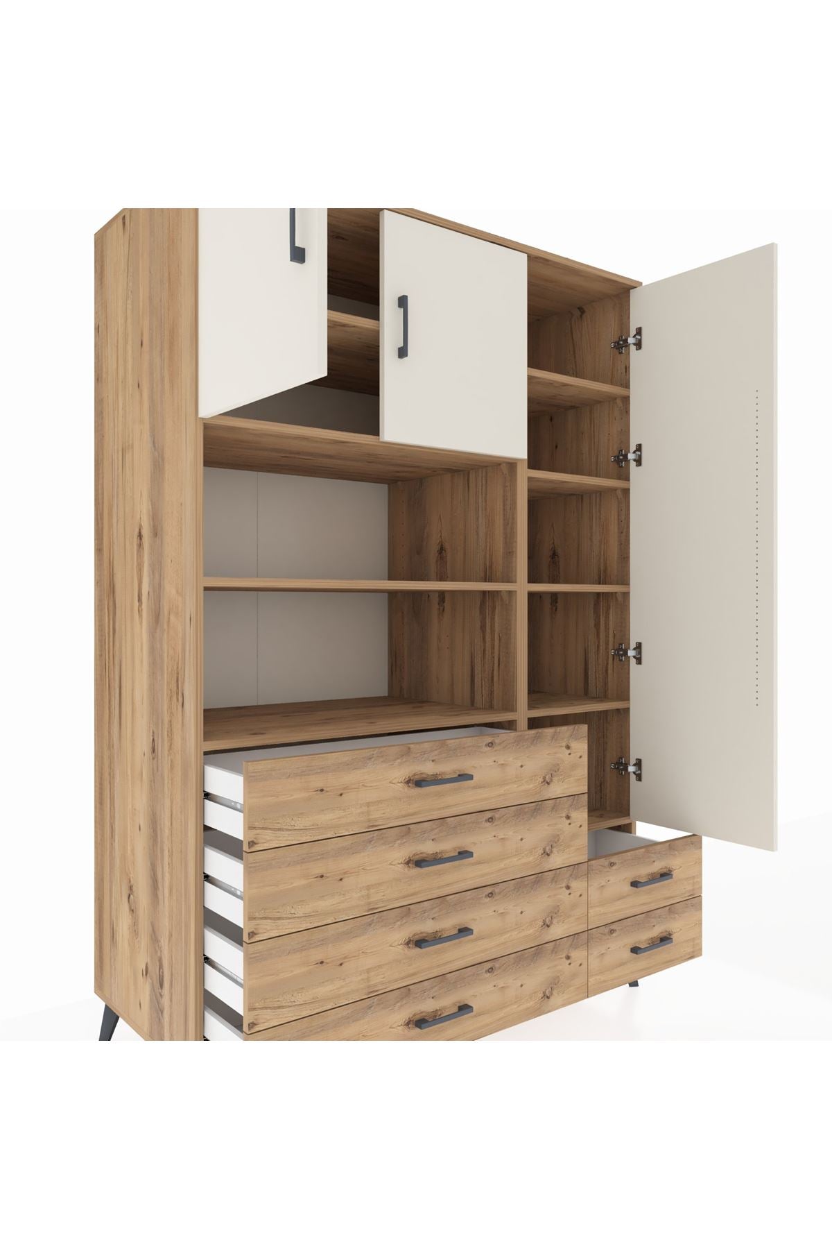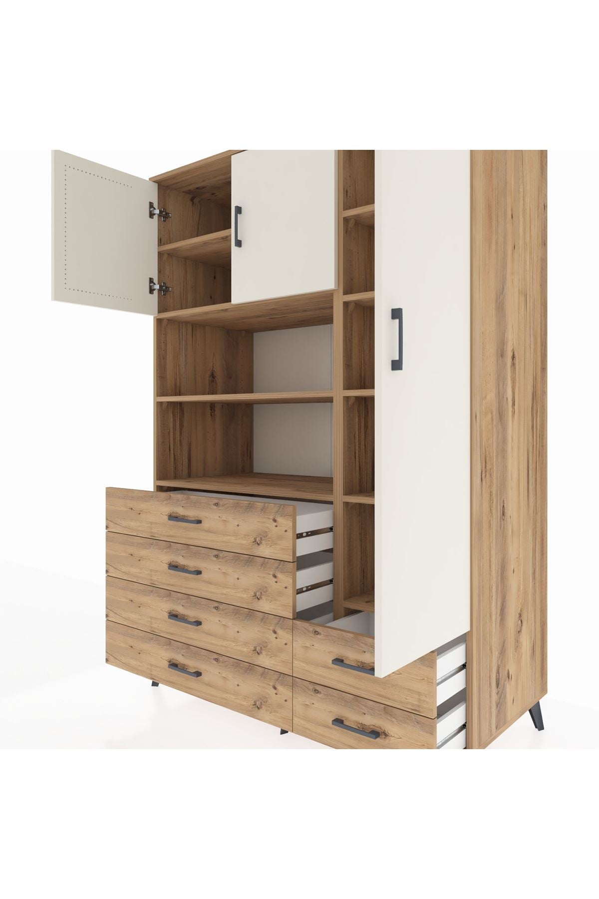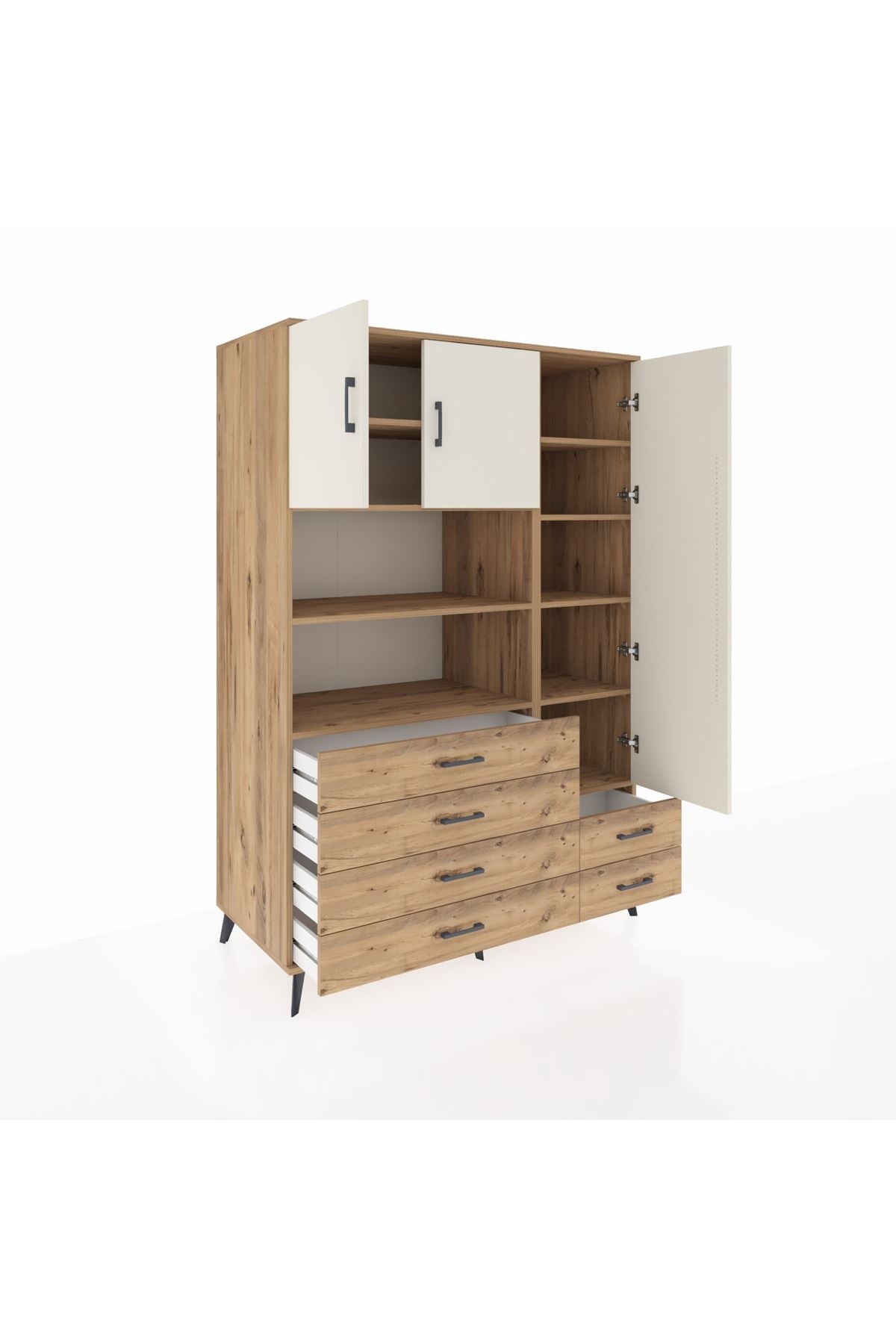 Kronos Dolap 9 Raflı 6 Çekmeceli 3 Kapaklı 132x59x195 Çam-Aytaşı/Çam