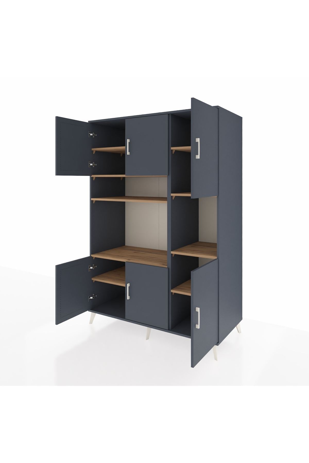 Kronos Dolap 9 Raflı 6 Kapaklı 132x59x195 Antrasit-Antrasit/Çam
