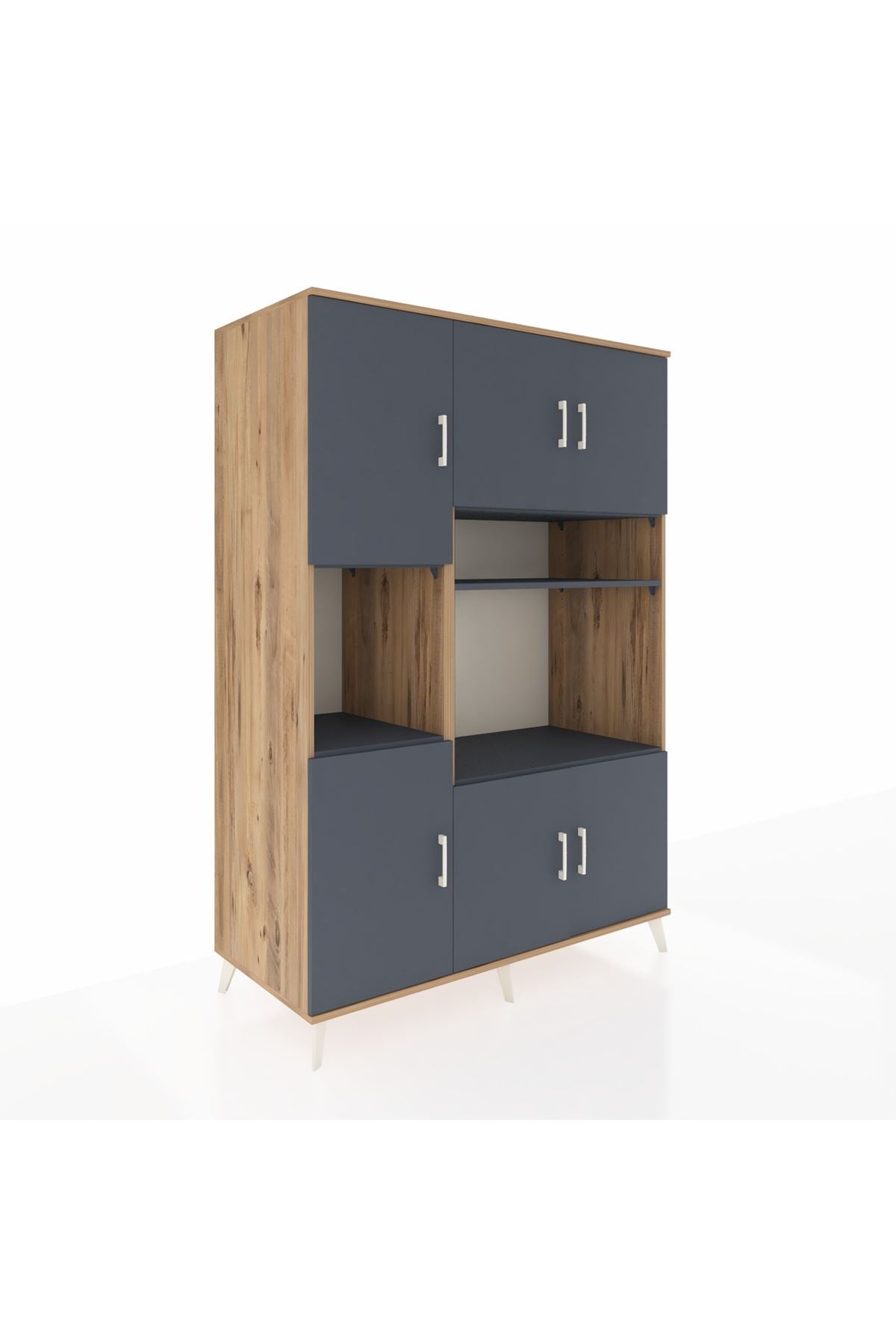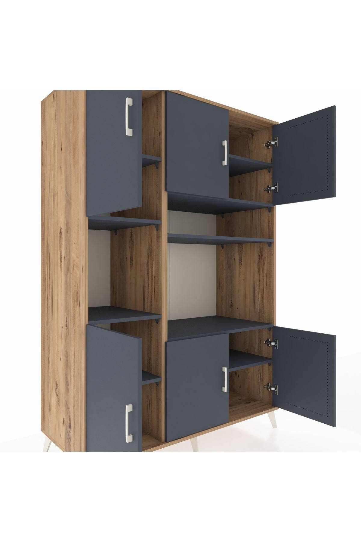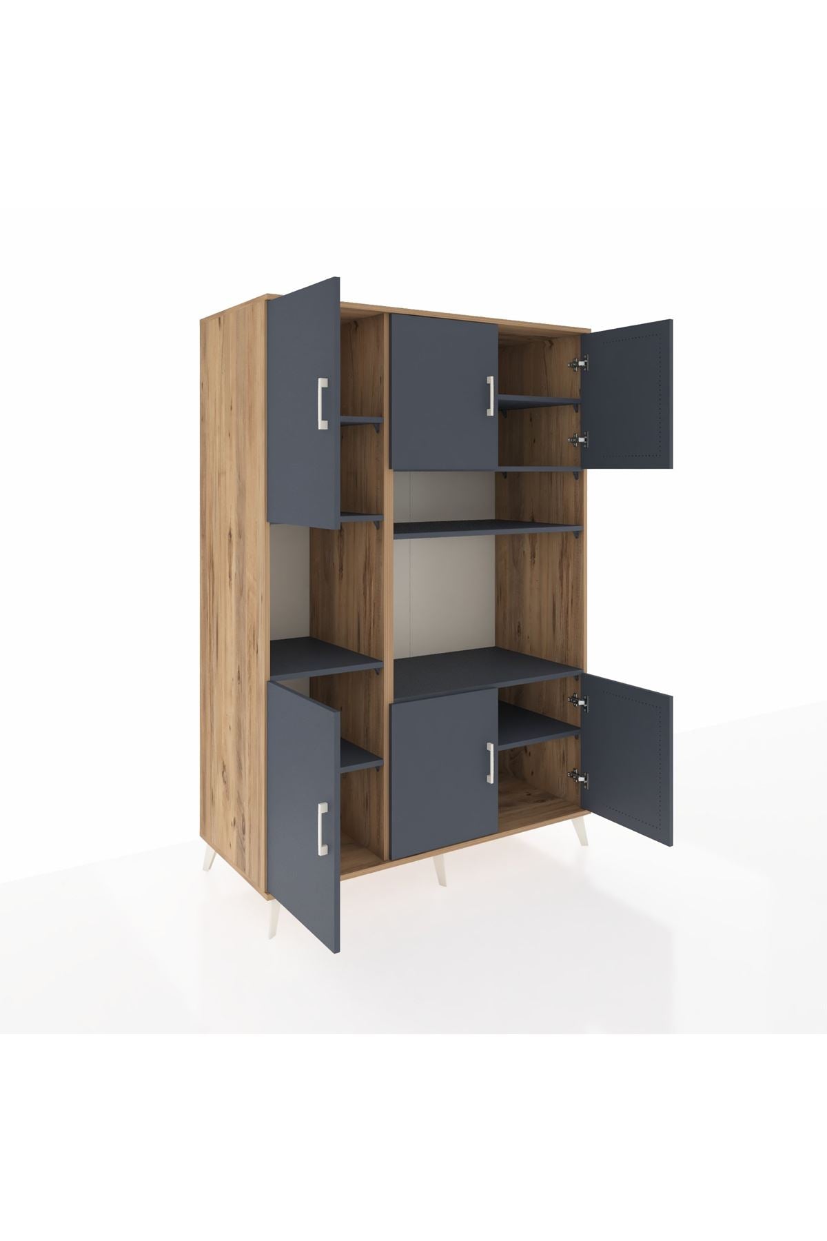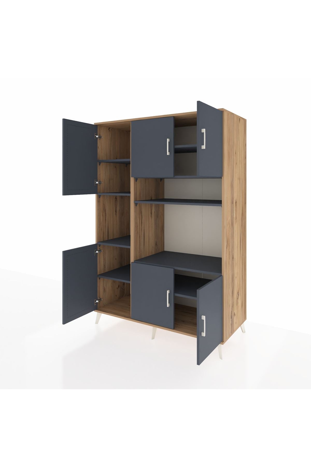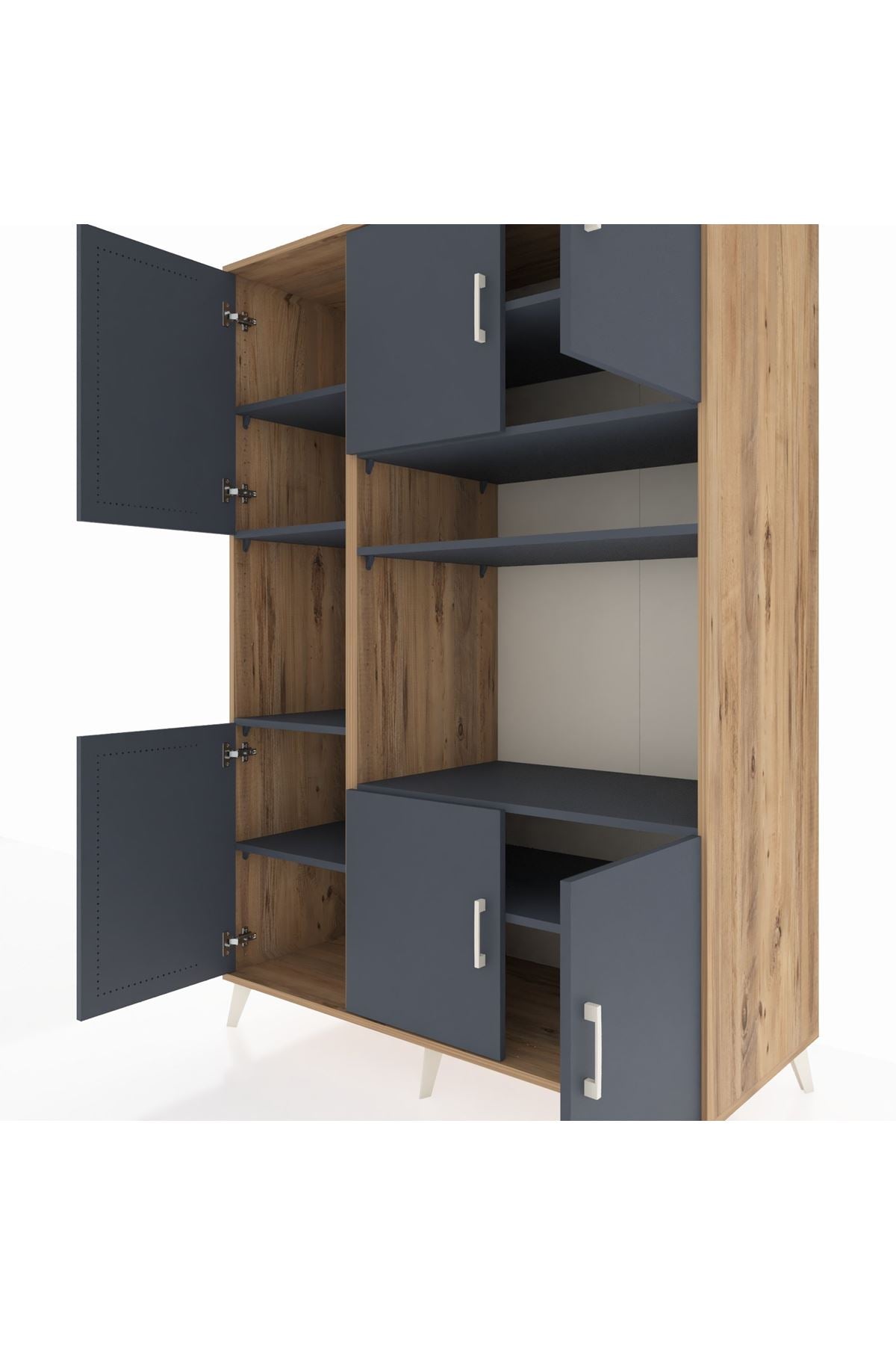 Kronos Dolap 9 Raflı 6 Kapaklı 132x59x195 Çam-Antrasit/Antrasit