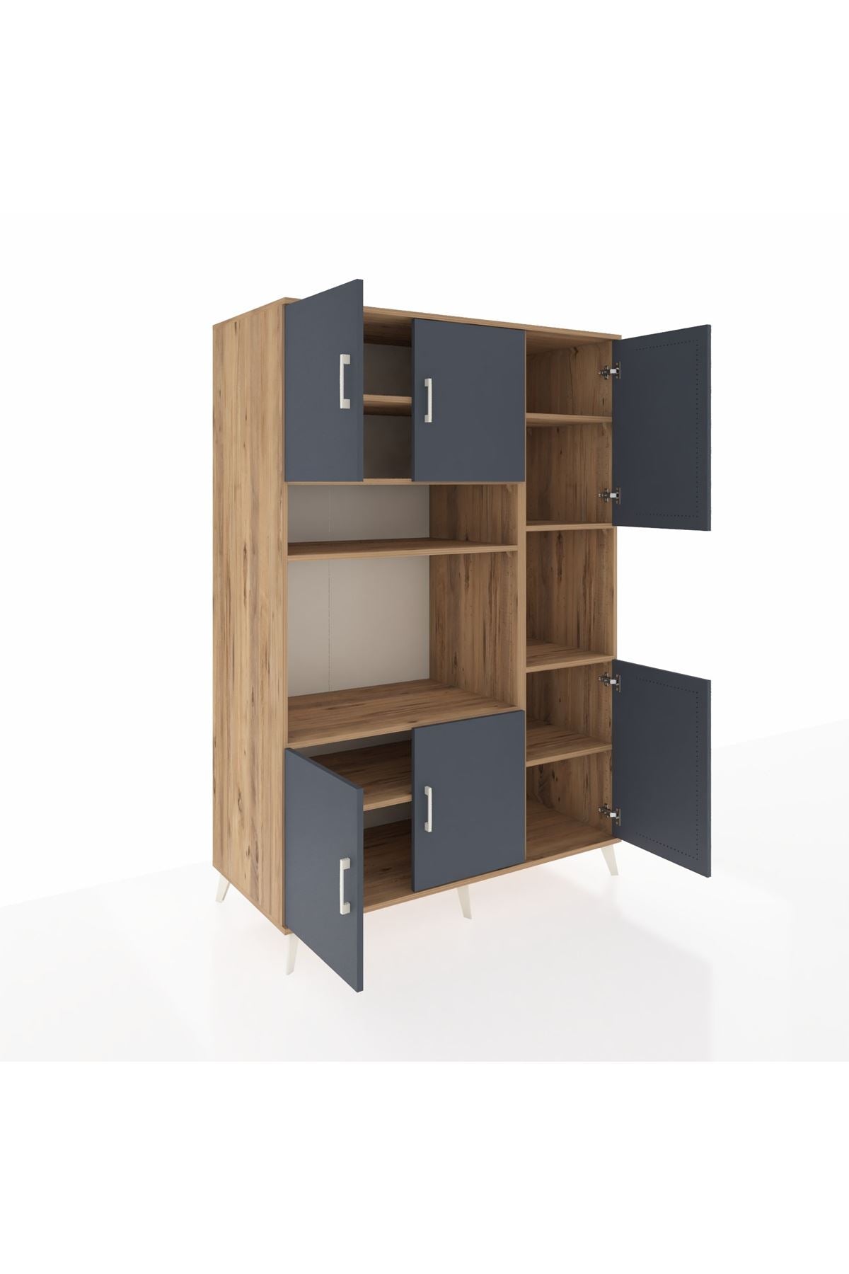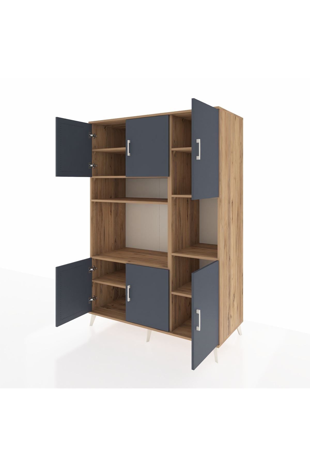 Kronos Dolap 9 Raflı 6 Kapaklı 132x59x195 Çam-Antrasit/Çam