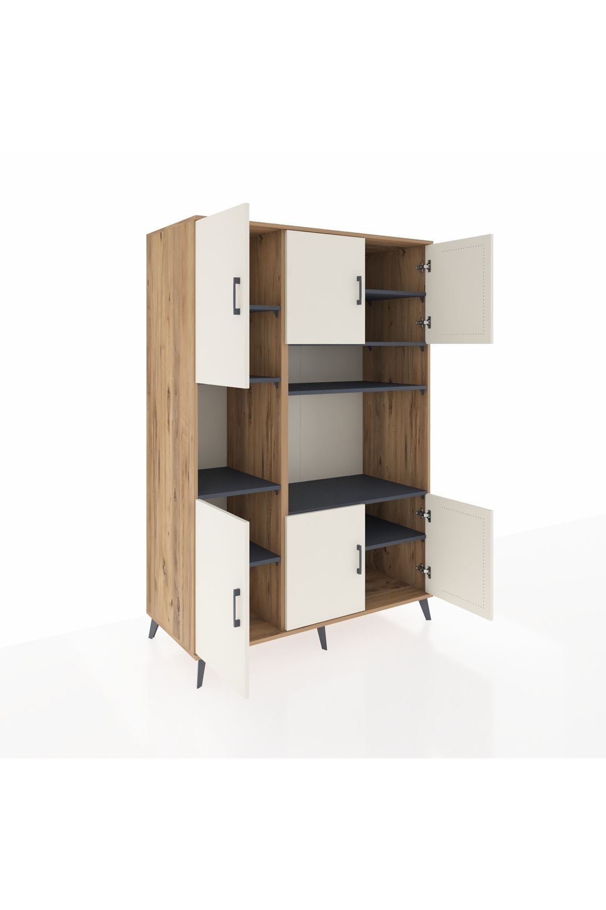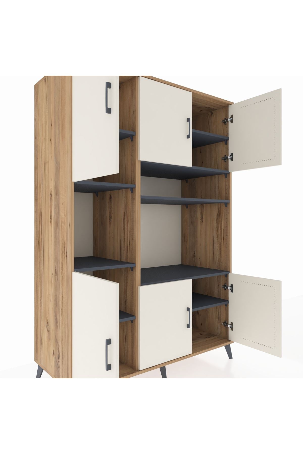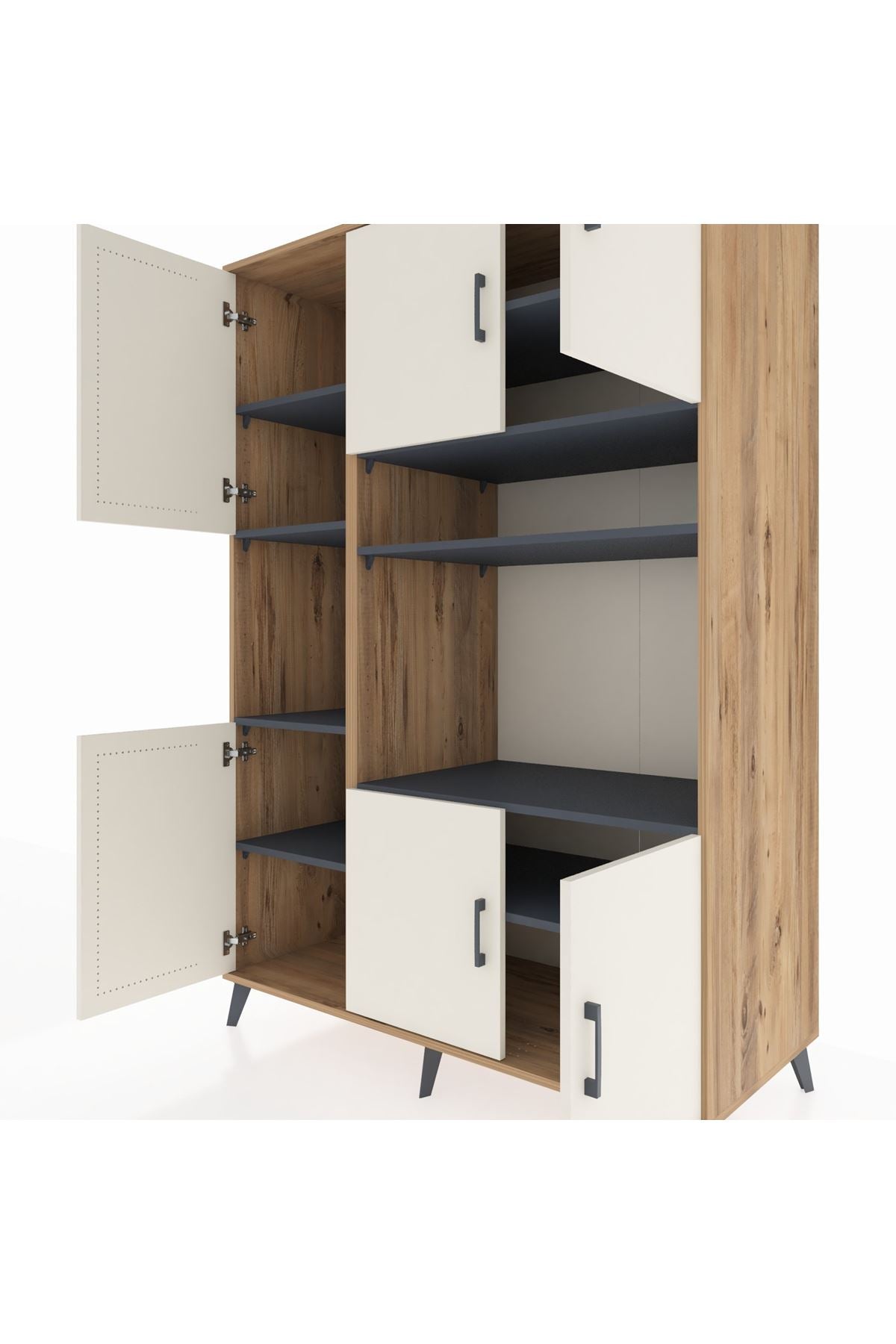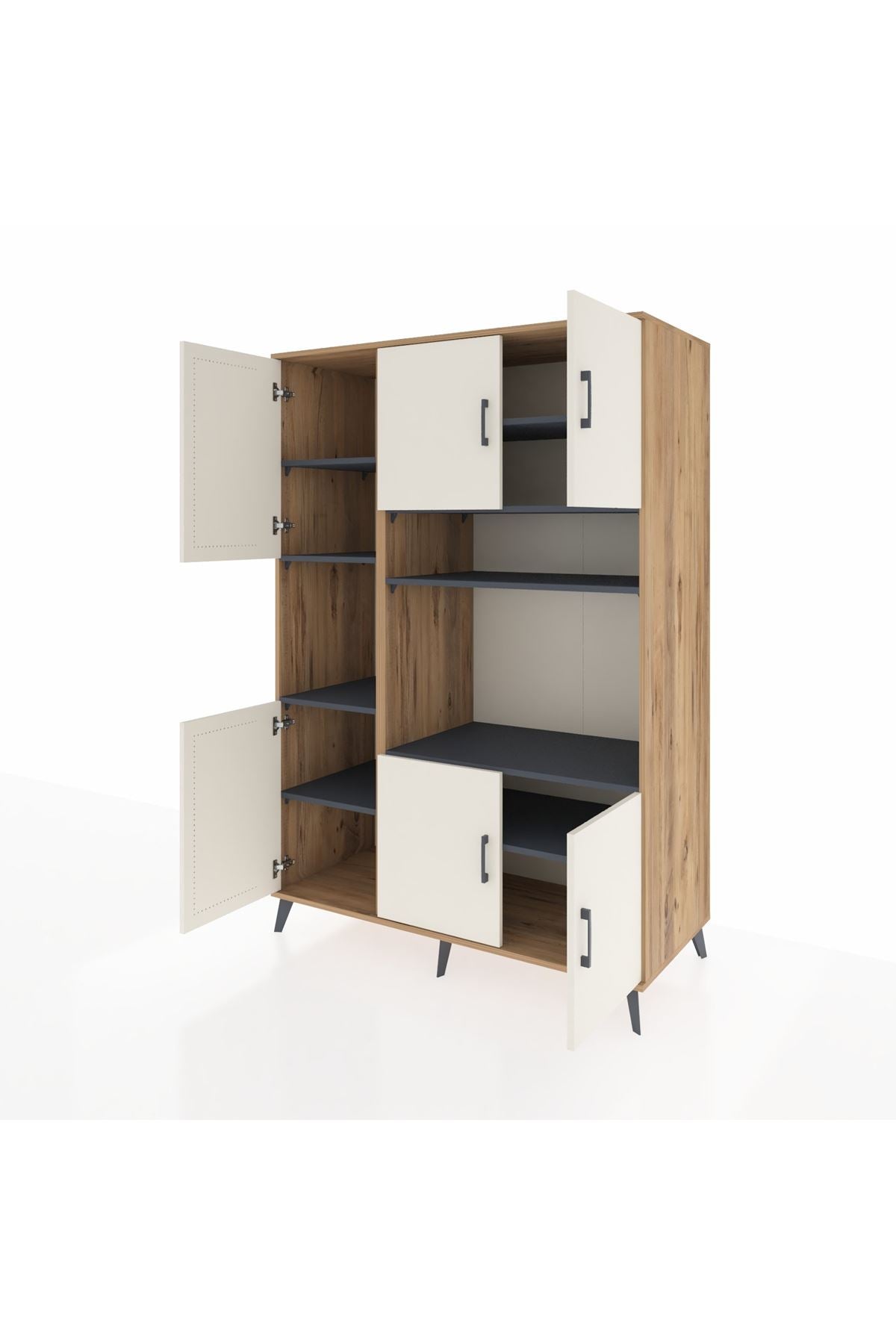 6 kapaklı yapısı ve 9 geniş rafı ile eşyalarınızı kolayca düzenleyebilirsiniz. Metal ayak ve metal kulplarıyla sağlamlığı ön planda tutarken, Kastamonu Entegre 1. sınıf suntalam gövdesi uzun ömürlü kullanım vadediyor. 1.2 mm kalın kenar bantları ile hem dayanıklı hem de estetik bir görünüm elde edildi.