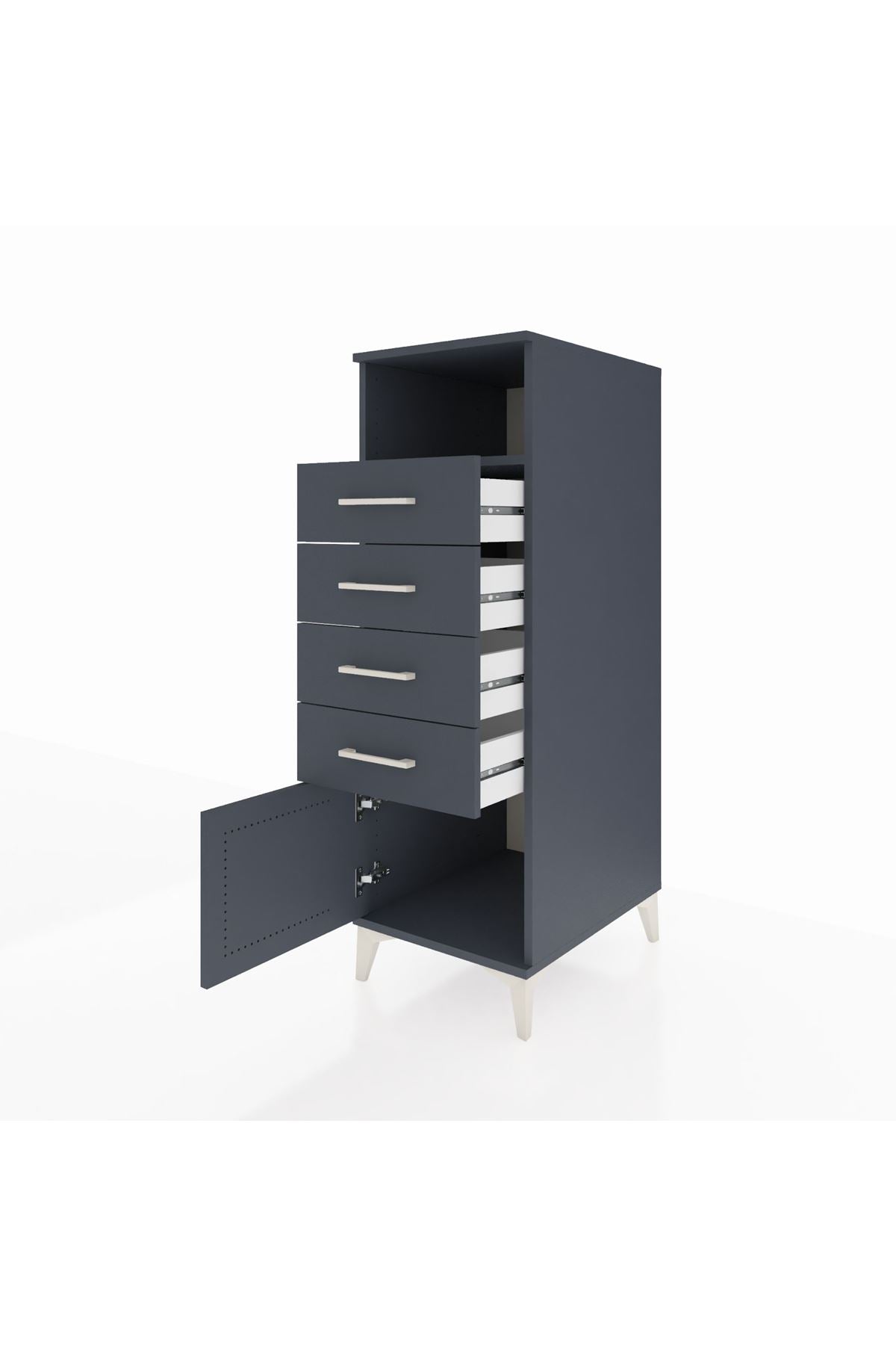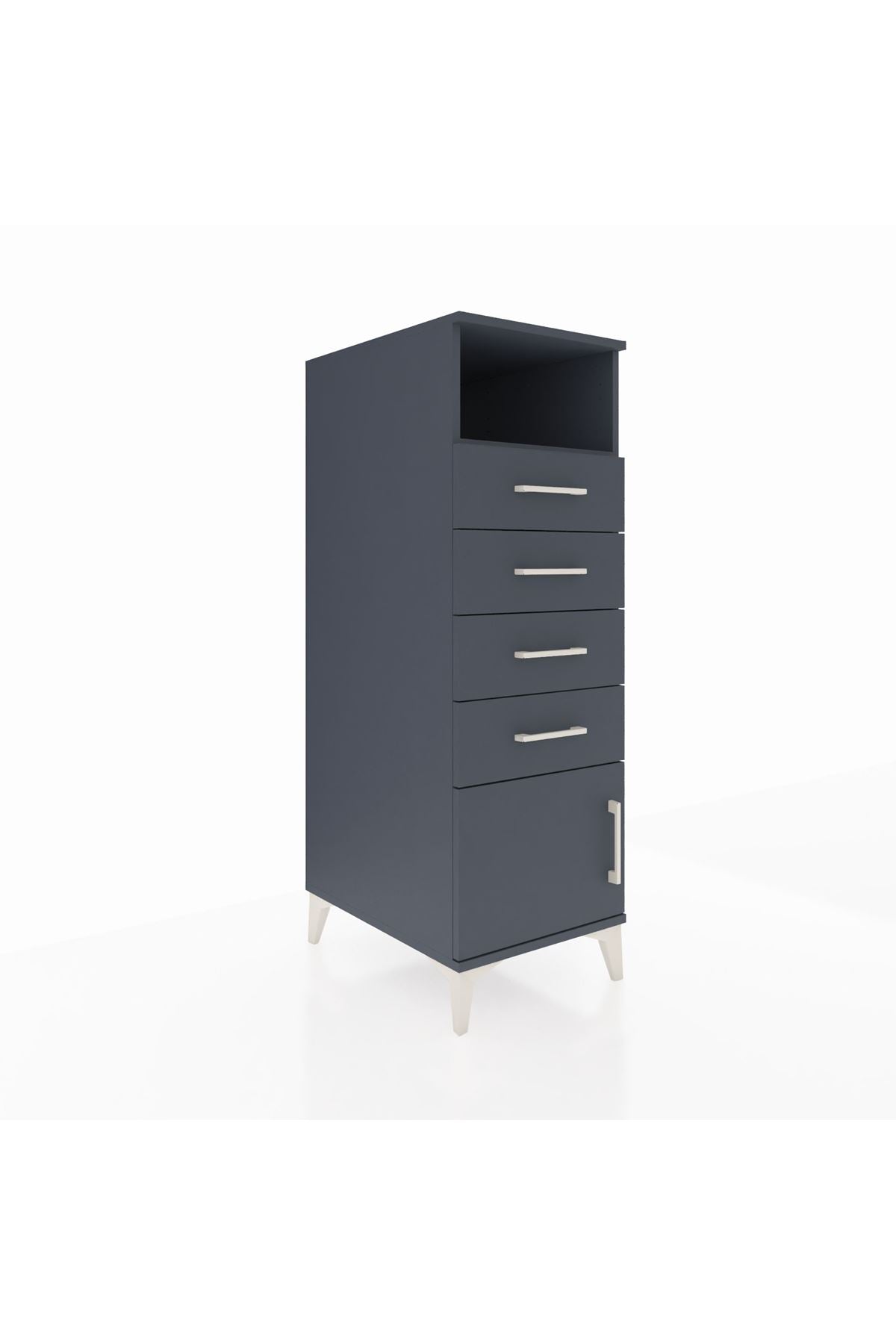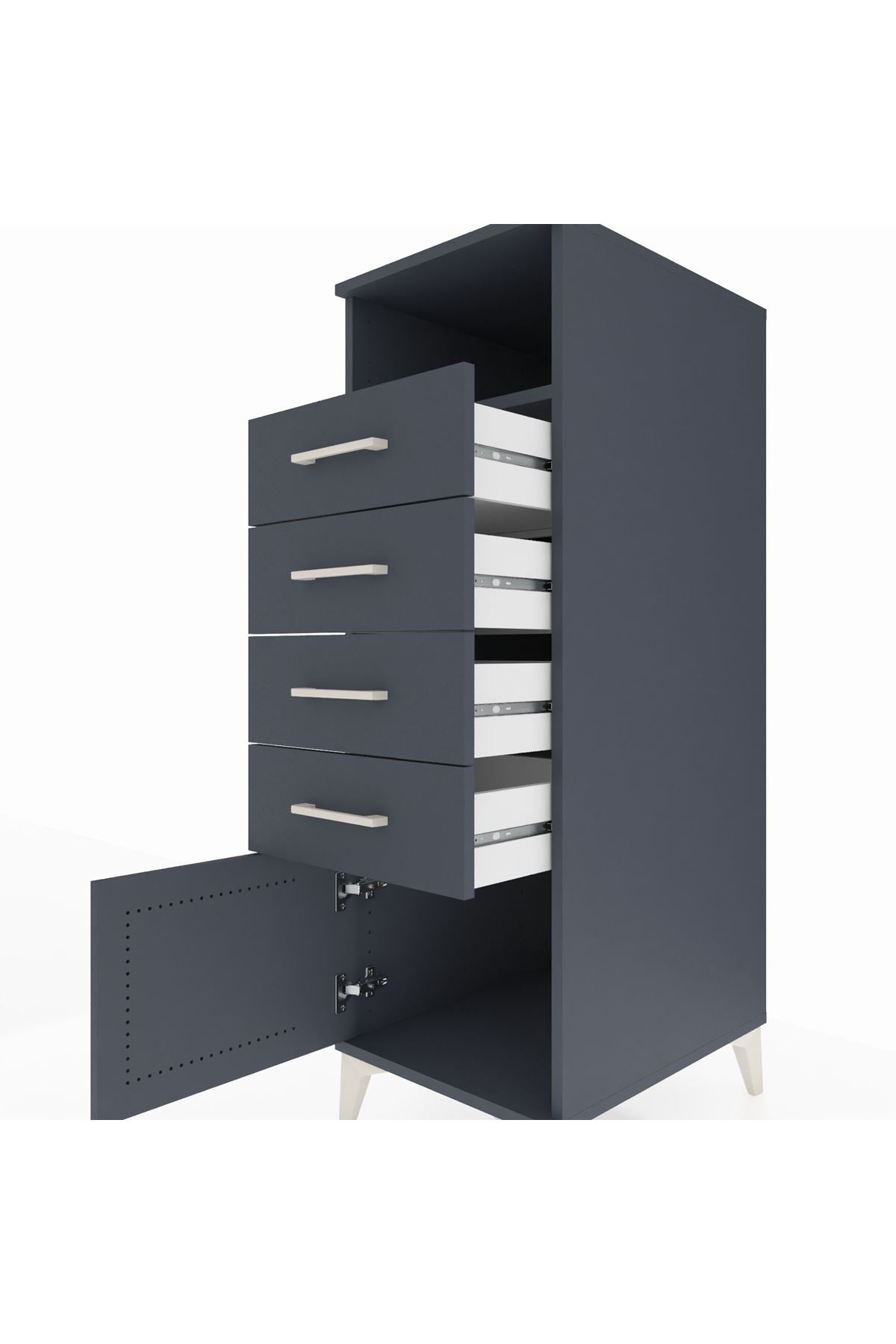 Kronos Dolap Tek Raflı 4 Çekmeceli Tek Kapaklı 44x59x134 Antrasit-Antrasit