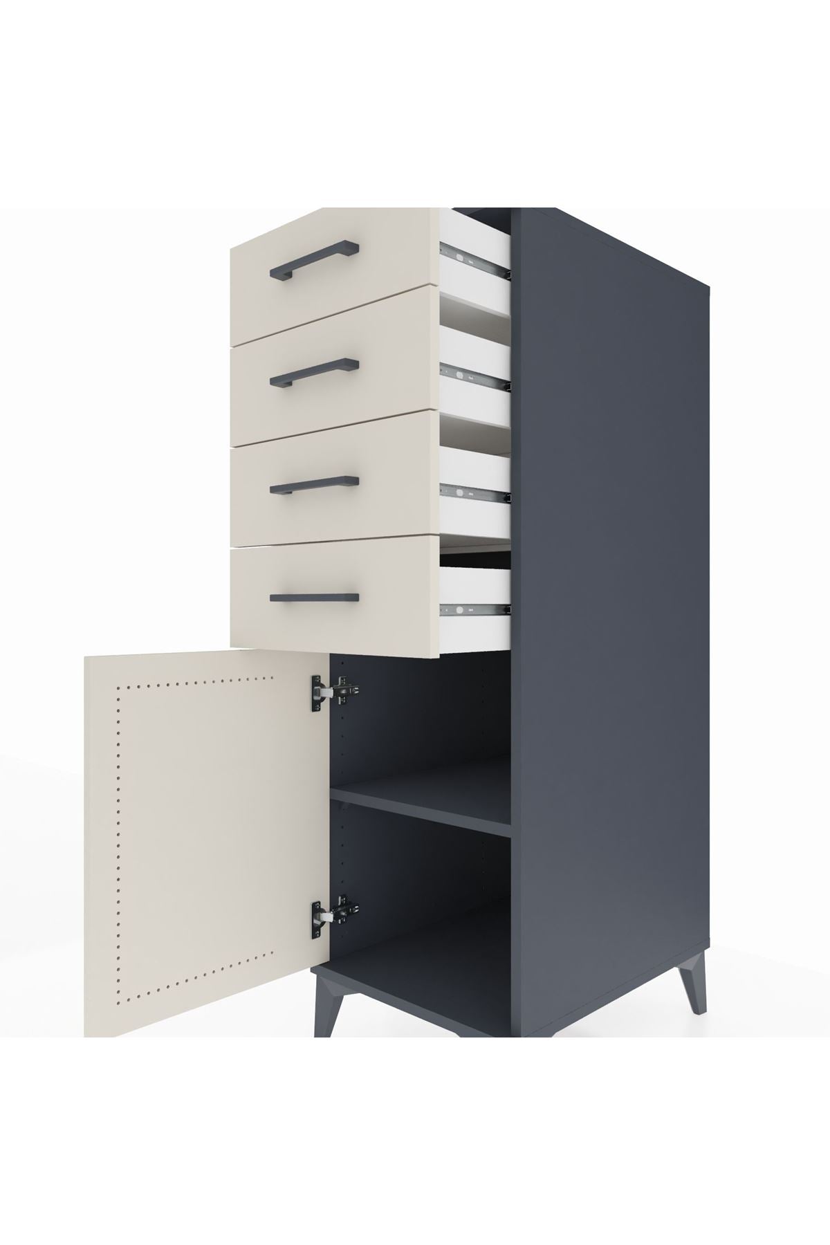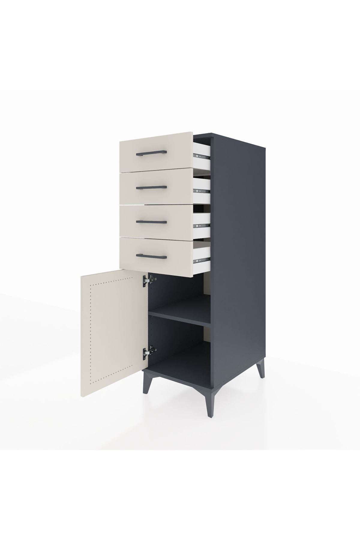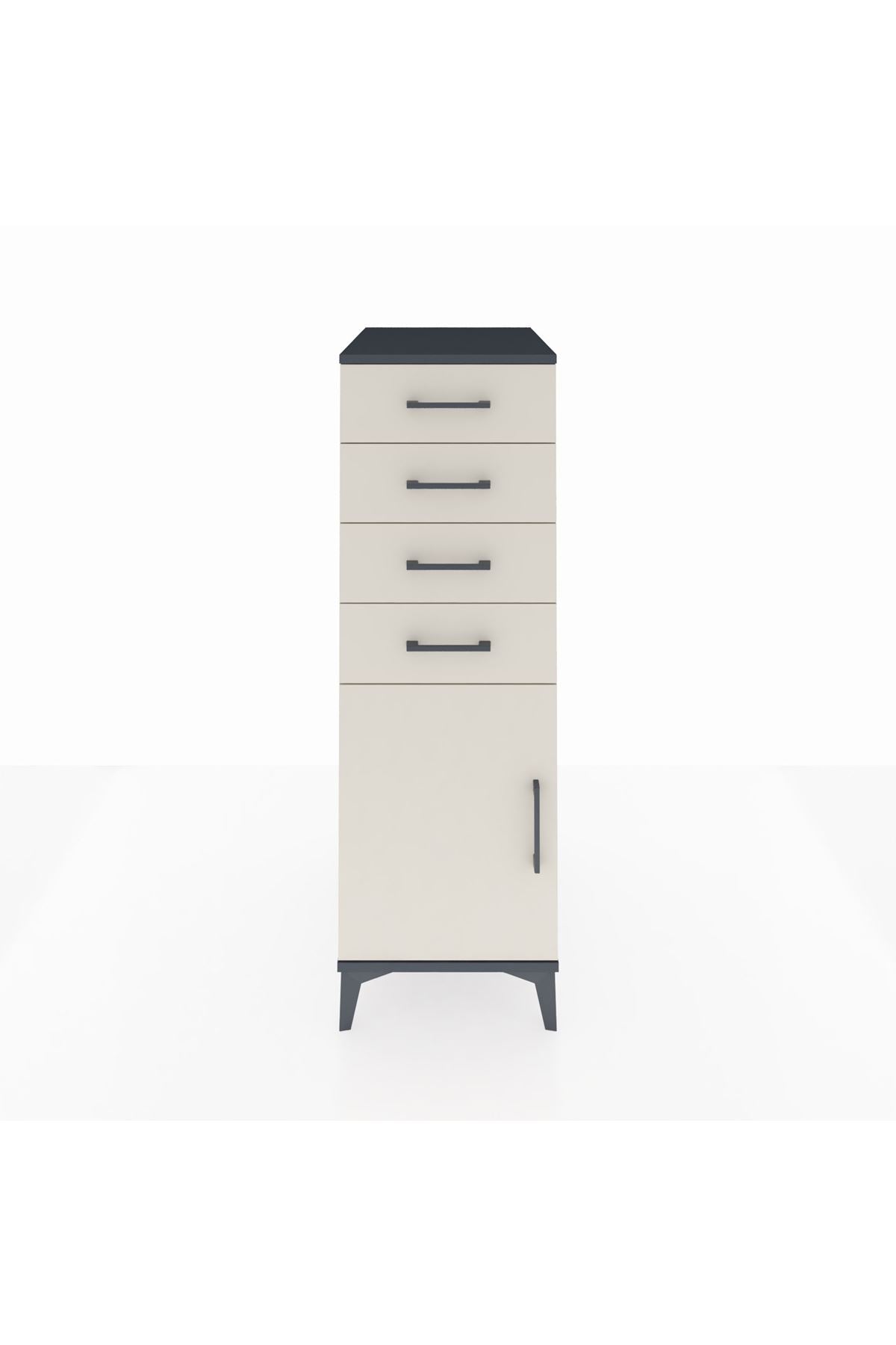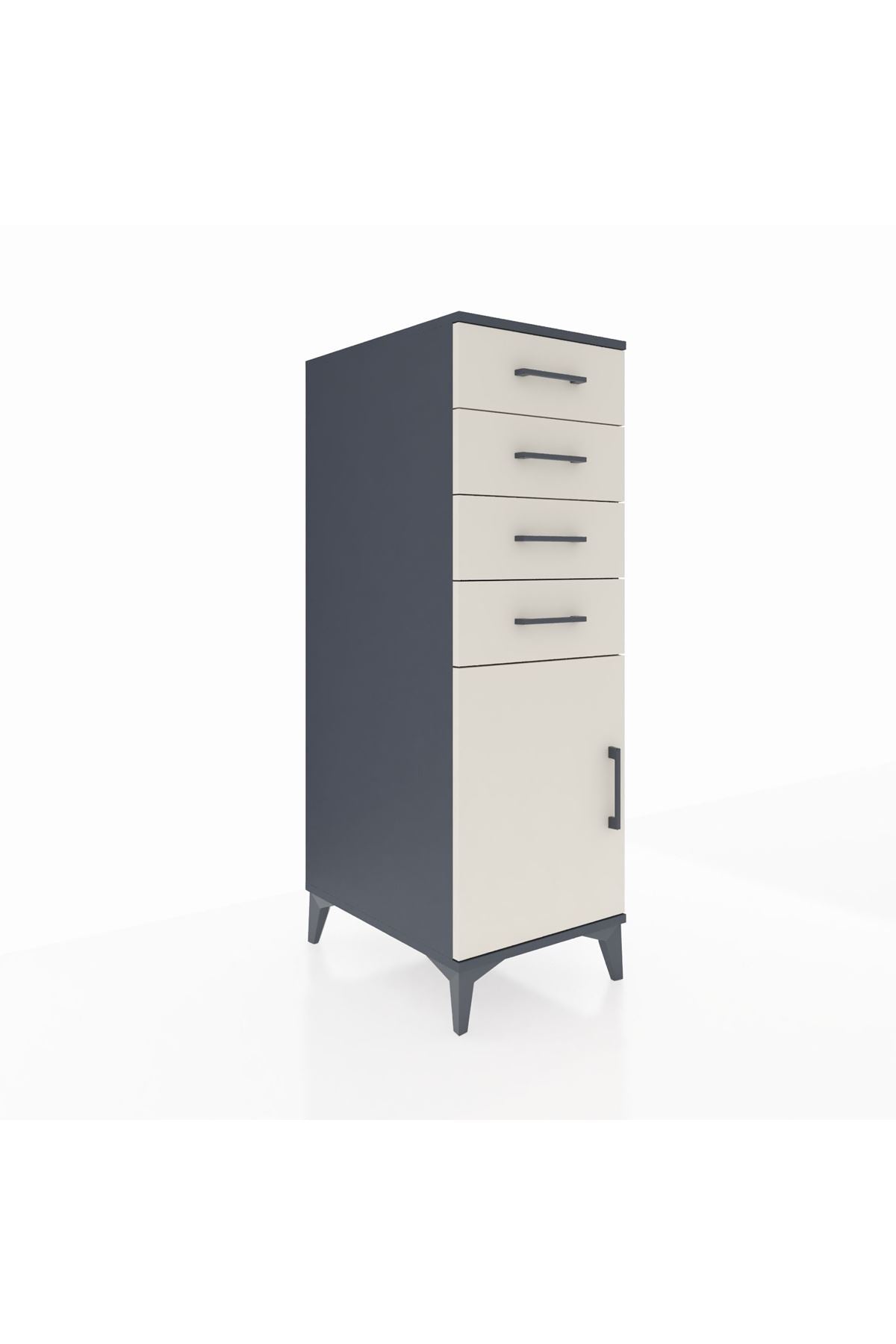 Kronos Dolap Tek Raflı 4 Çekmeceli Tek Kapaklı 44x59x134 Antrasit-Aytaşı