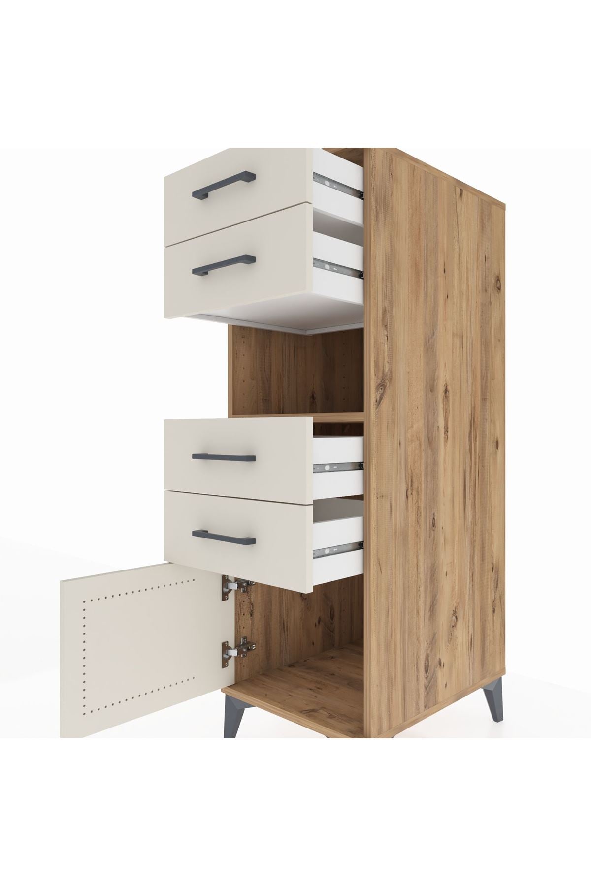 Kronos Dolap Tek Raflı 4 Çekmeceli Tek Kapaklı 44x59x134 Çam-Aytaşı