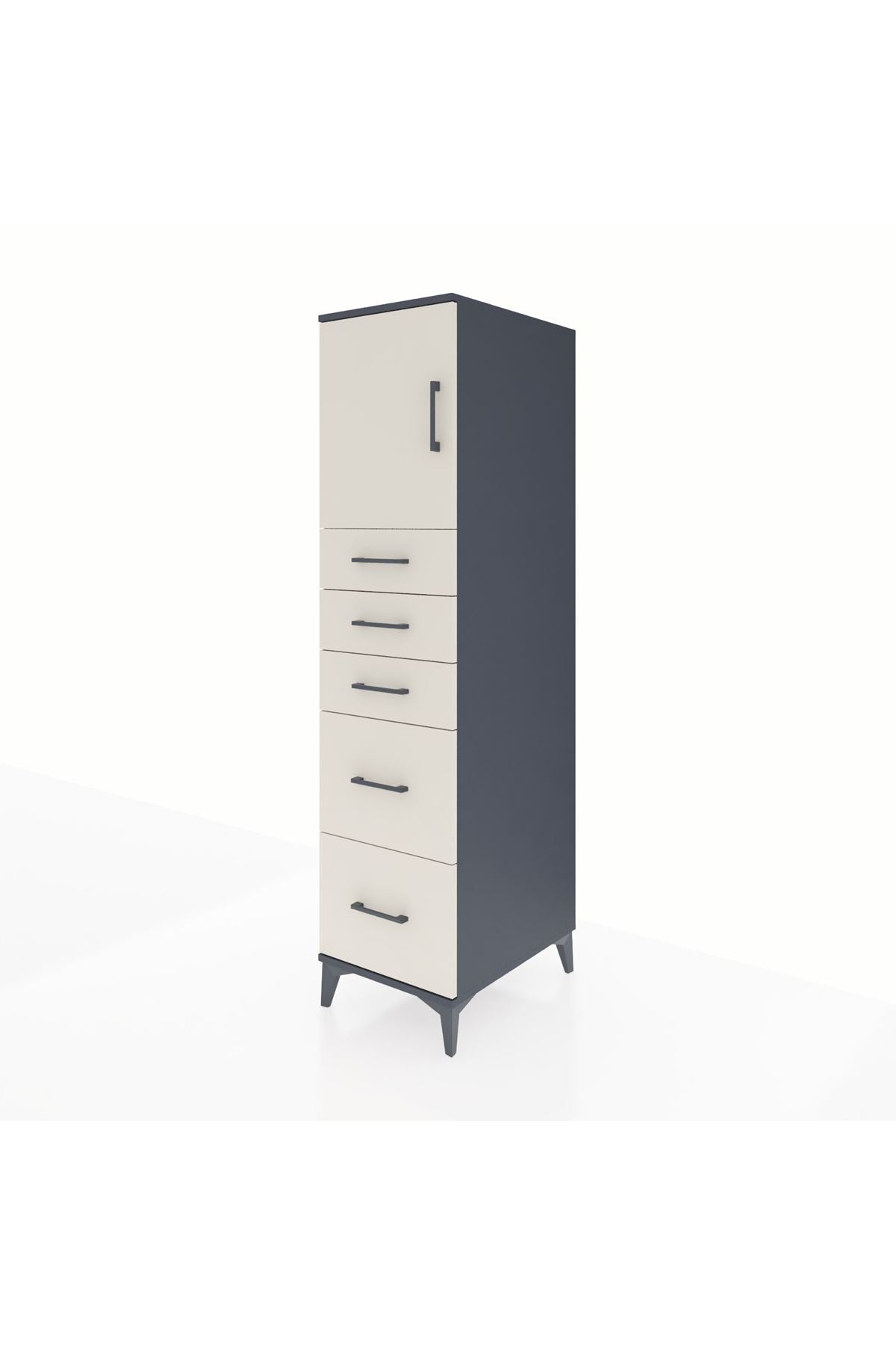 Kronos Dolap Tek Raflı 5 Çekmeceli Tek Kapaklı 44x59x182 Antrasit-Aytaşı