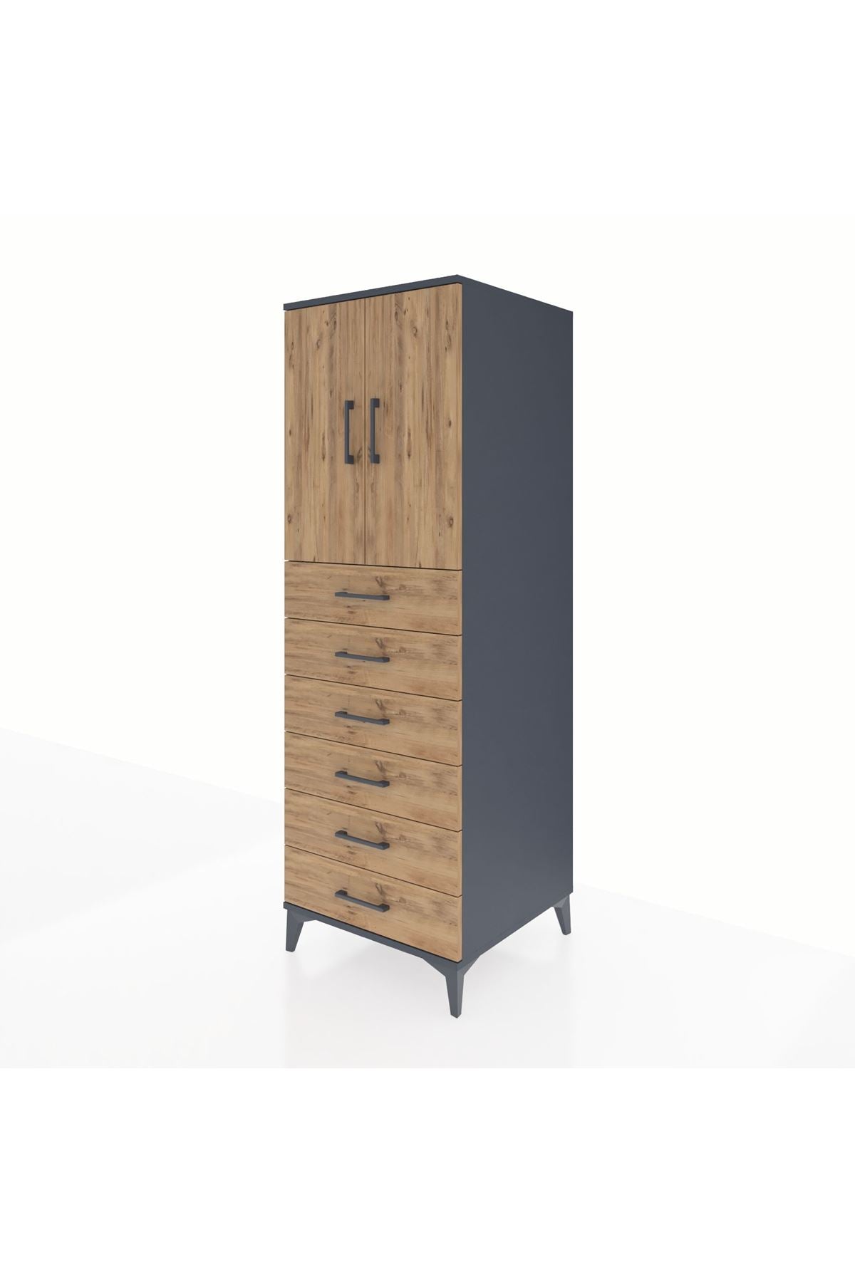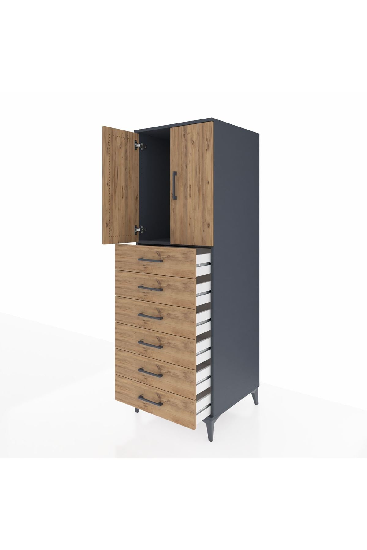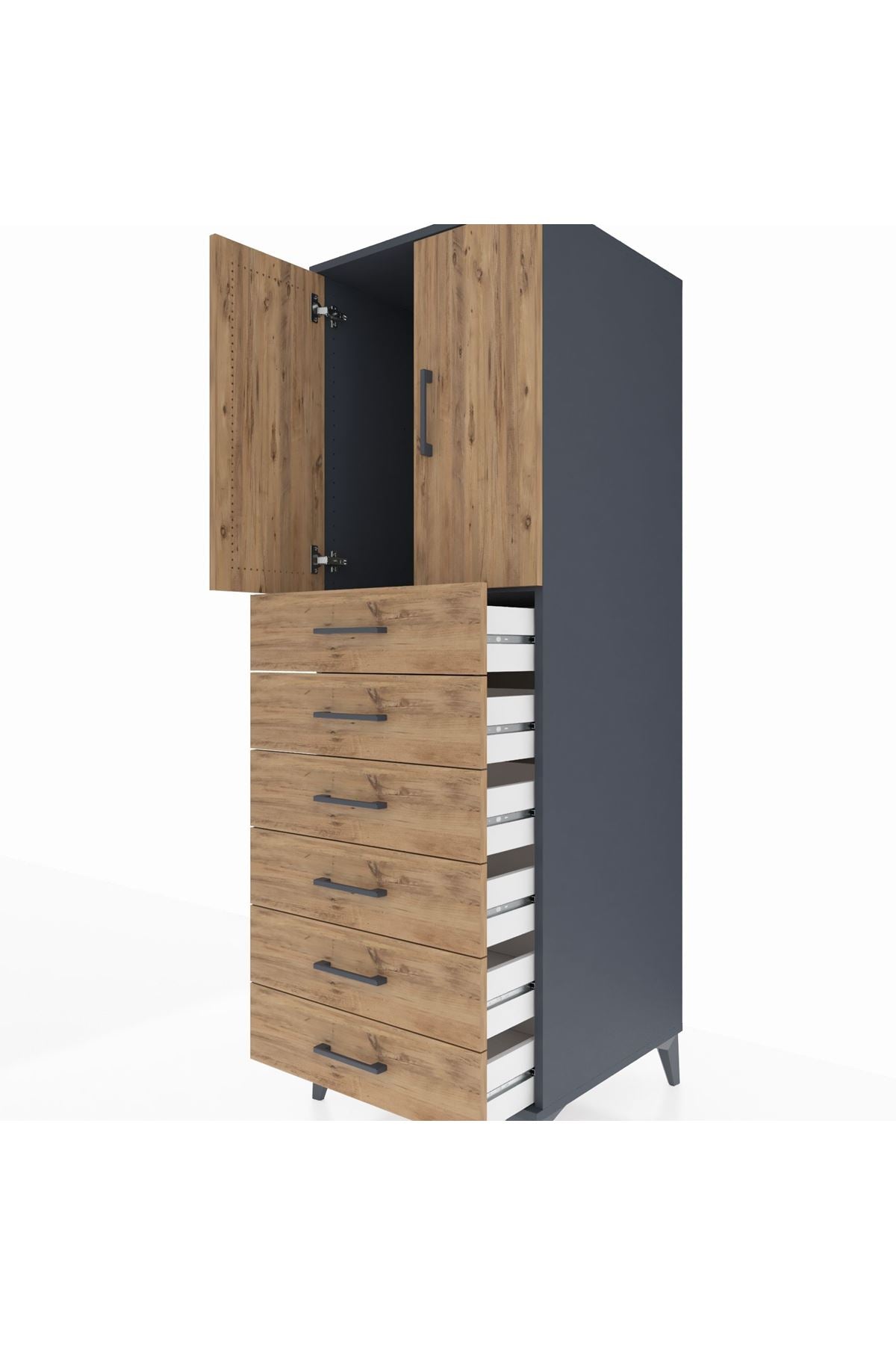 Kronos Dolap Tek Raflı 6 Çekmeceli 2 Kapaklı 60x59x182 Antrasit-Çam