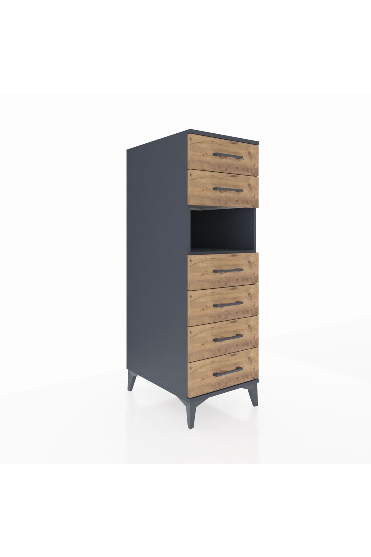 Kronos Dolap Tek Raflı 6 Çekmeceli 44x59x134 Antrasit-Çam