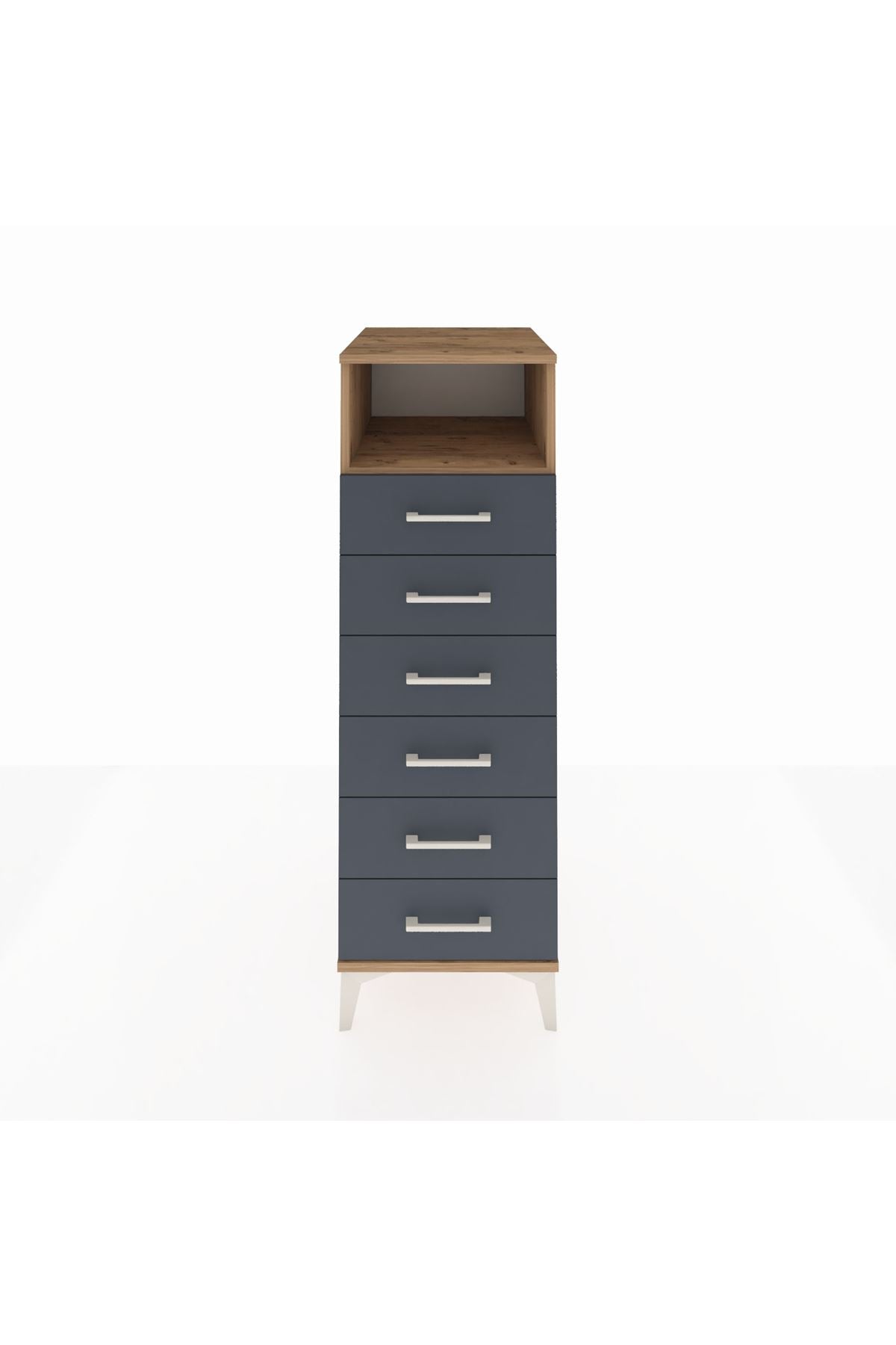 Kronos Dolap Tek Raflı 6 Çekmeceli 44x59x134 Çam-Antrasit