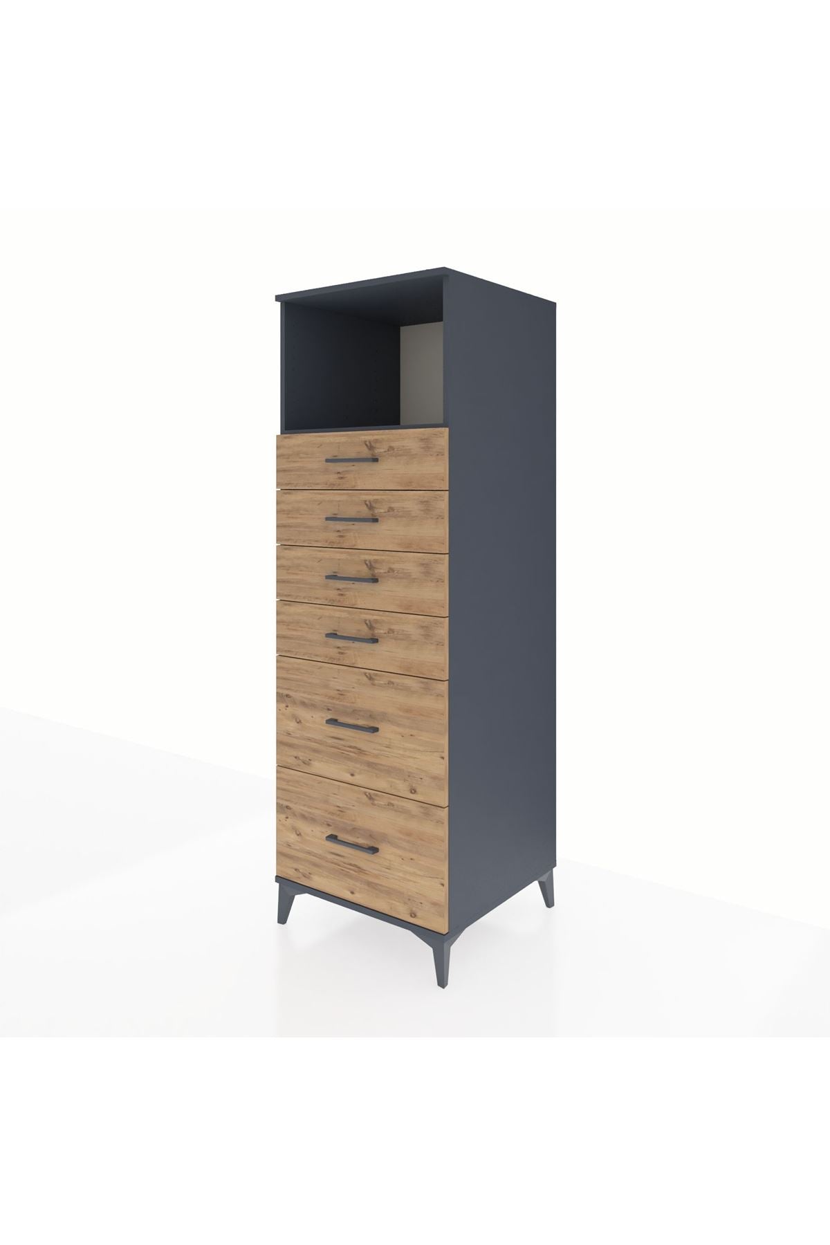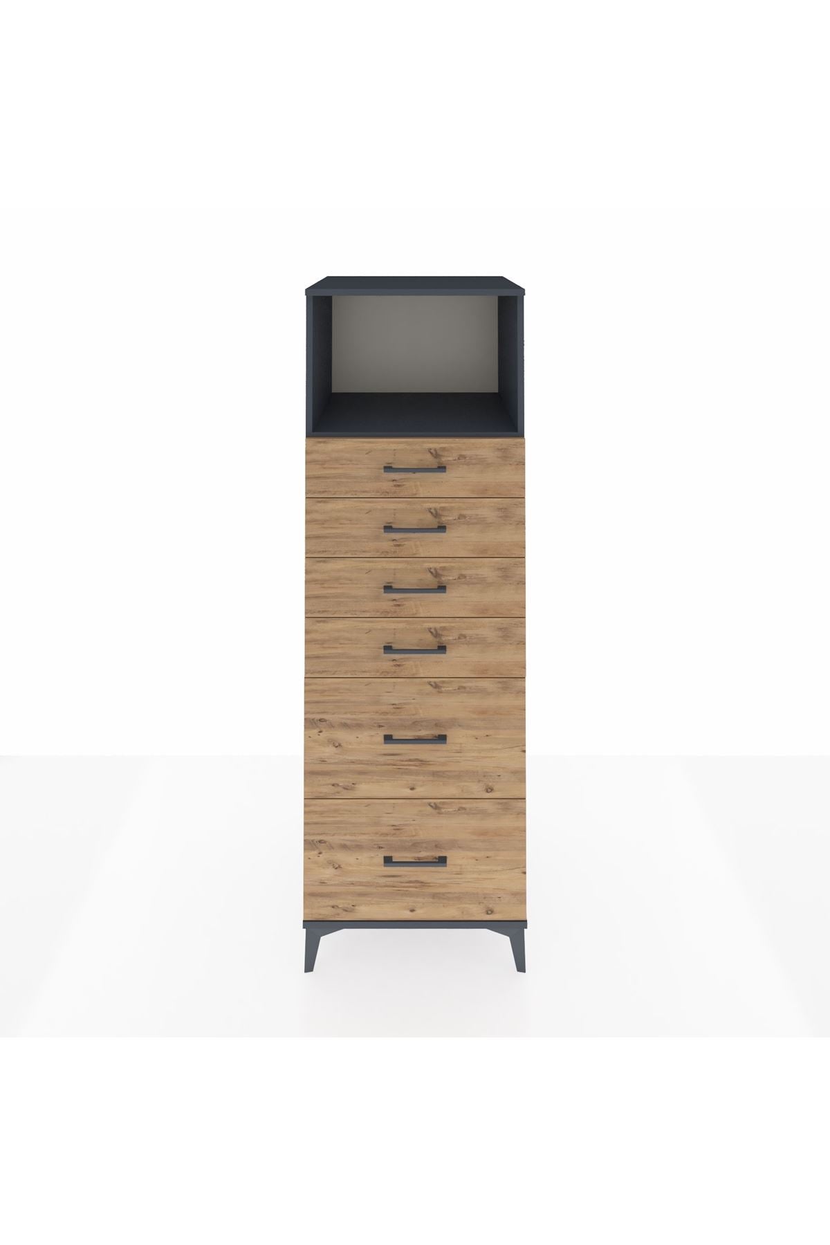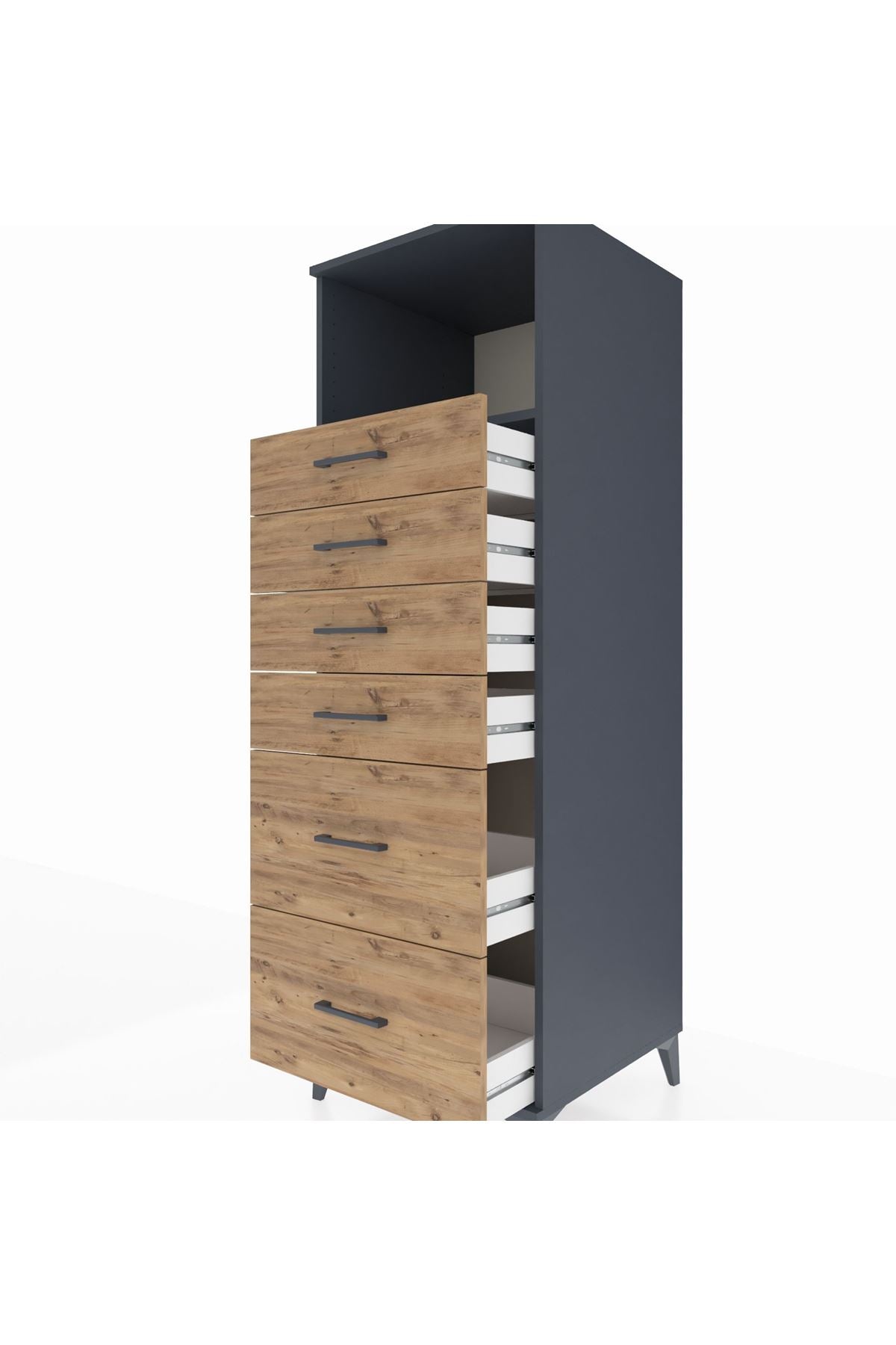 Kronos Dolap Tek Raflı 6 Çekmeceli 60x59x182 Antrasit-Çam