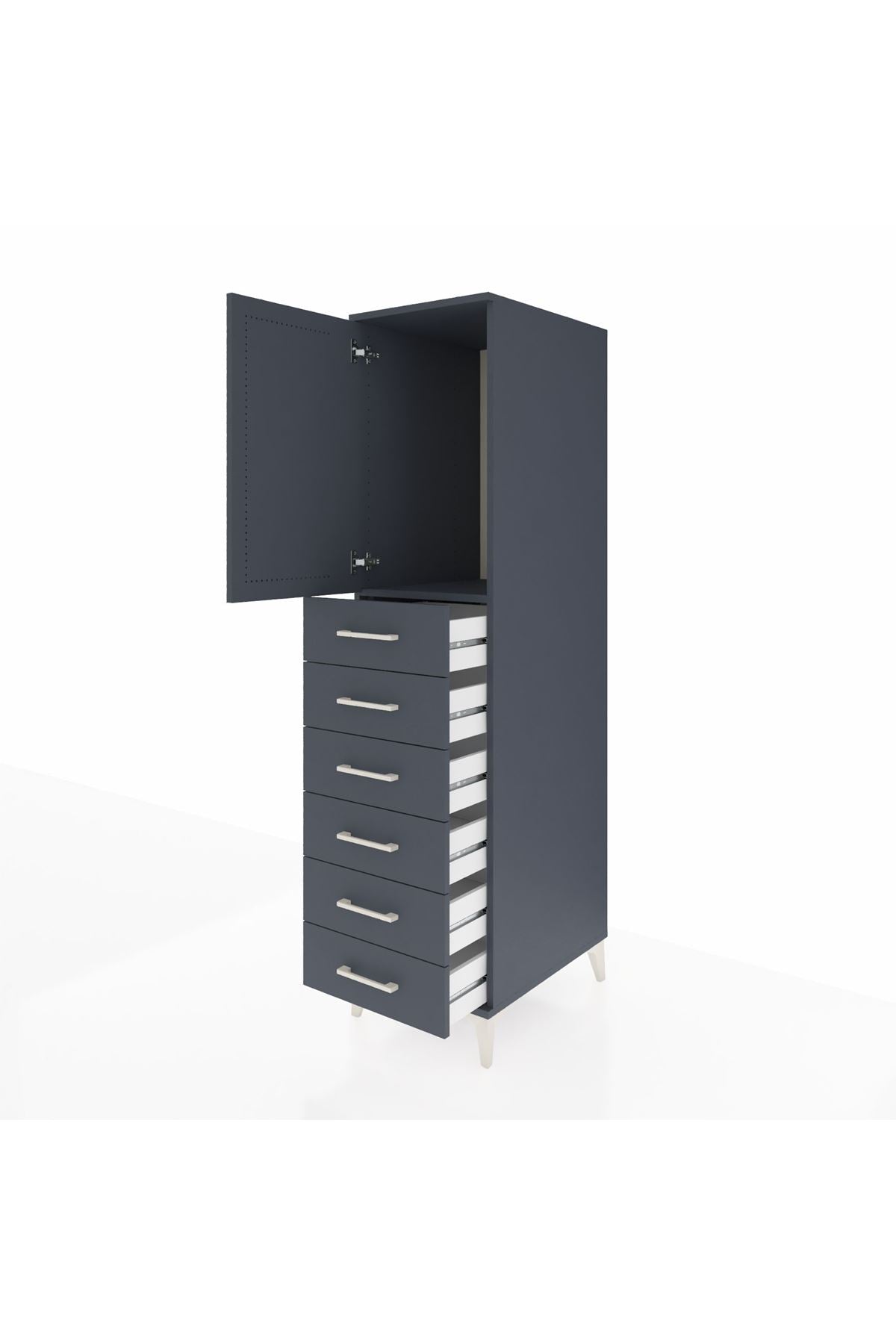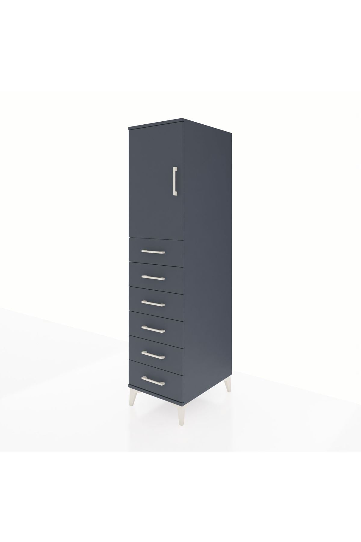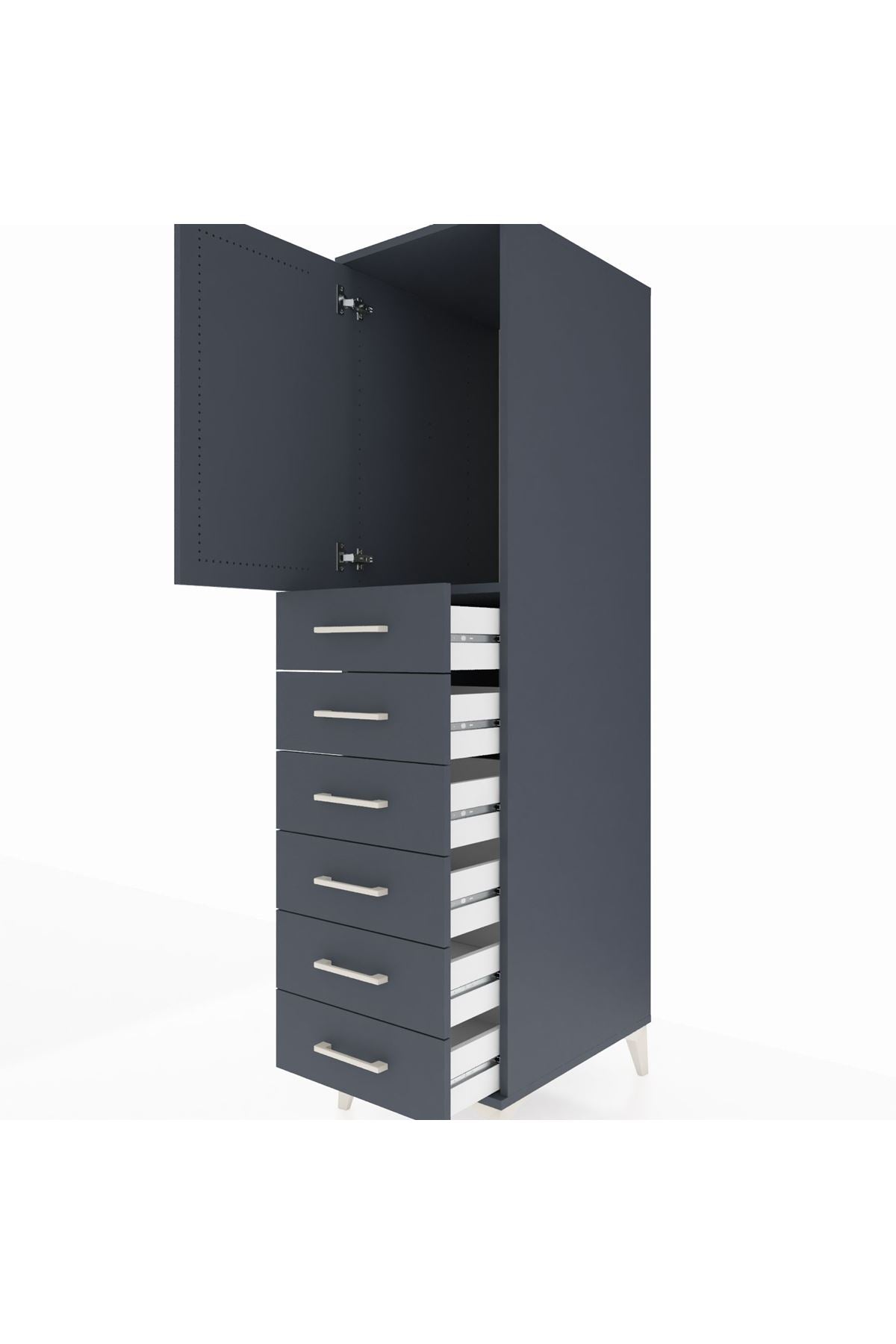 Kronos Dolap Tek Raflı 6 Çekmeceli Tek Kapaklı 44x59x182 Antrasit-Antrasit