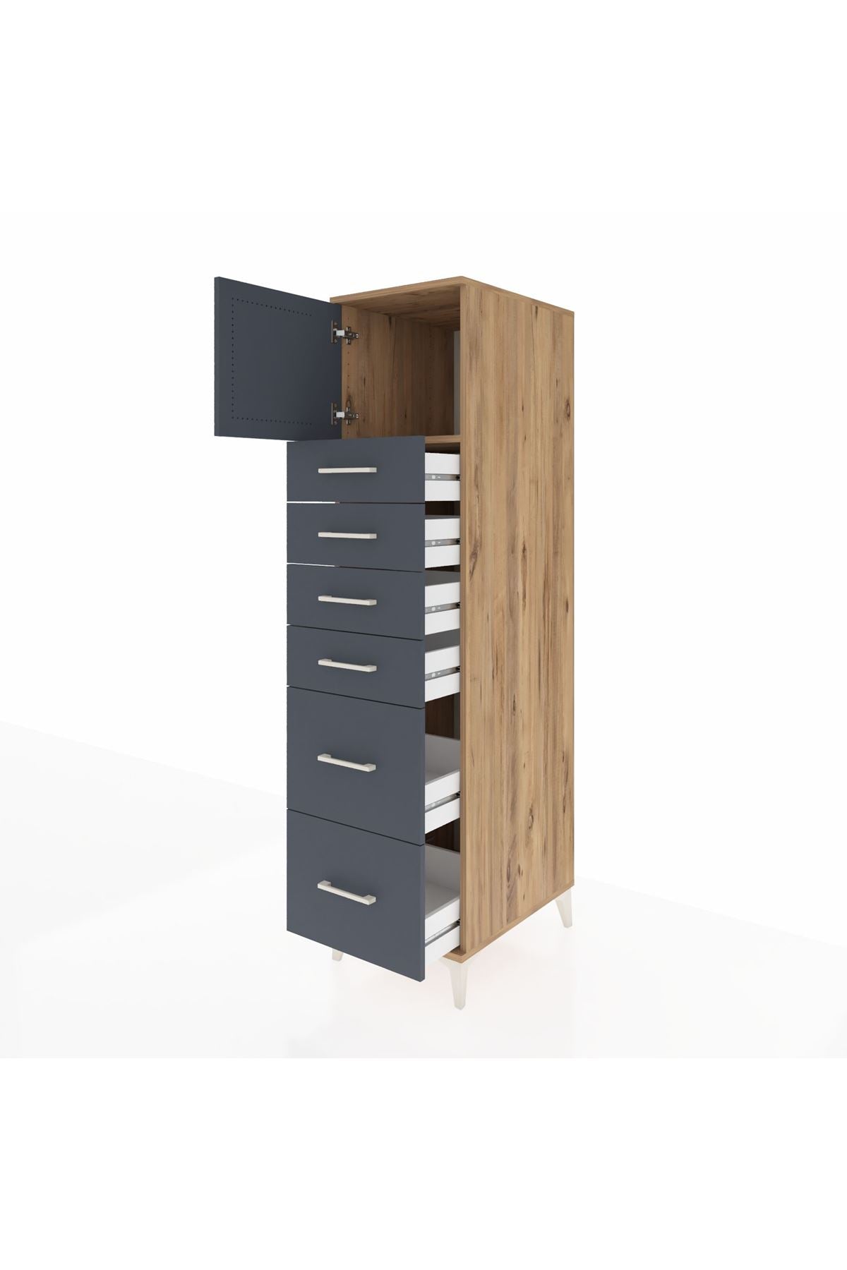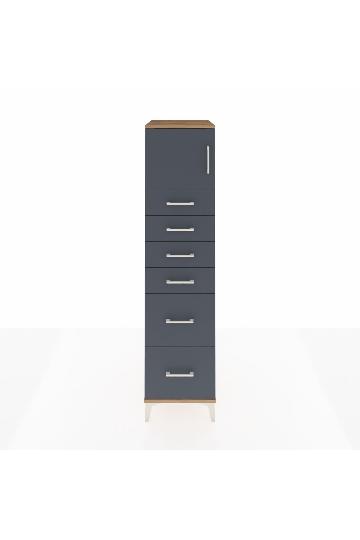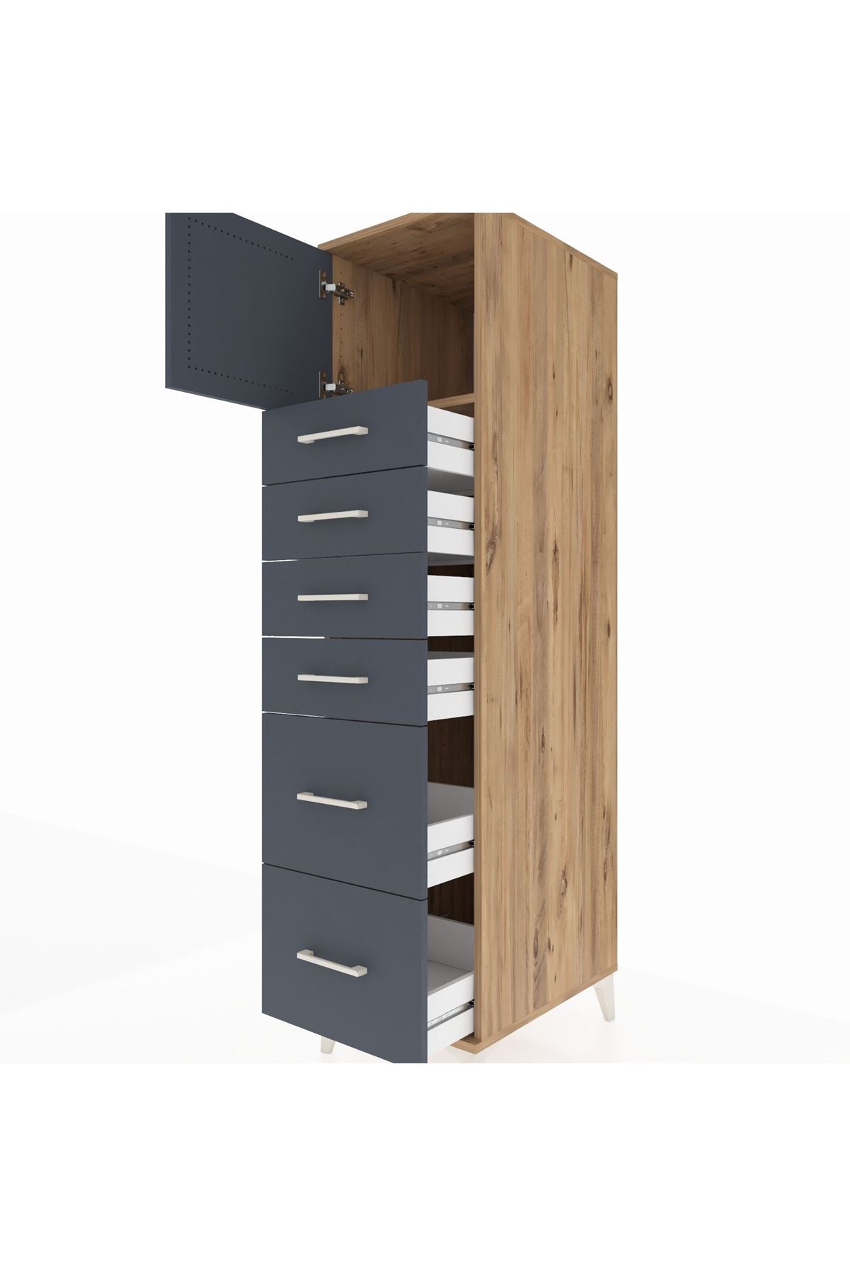 Kronos Dolap Tek Raflı 6 Çekmeceli Tek Kapaklı 44x59x182 Çam-Antrasit