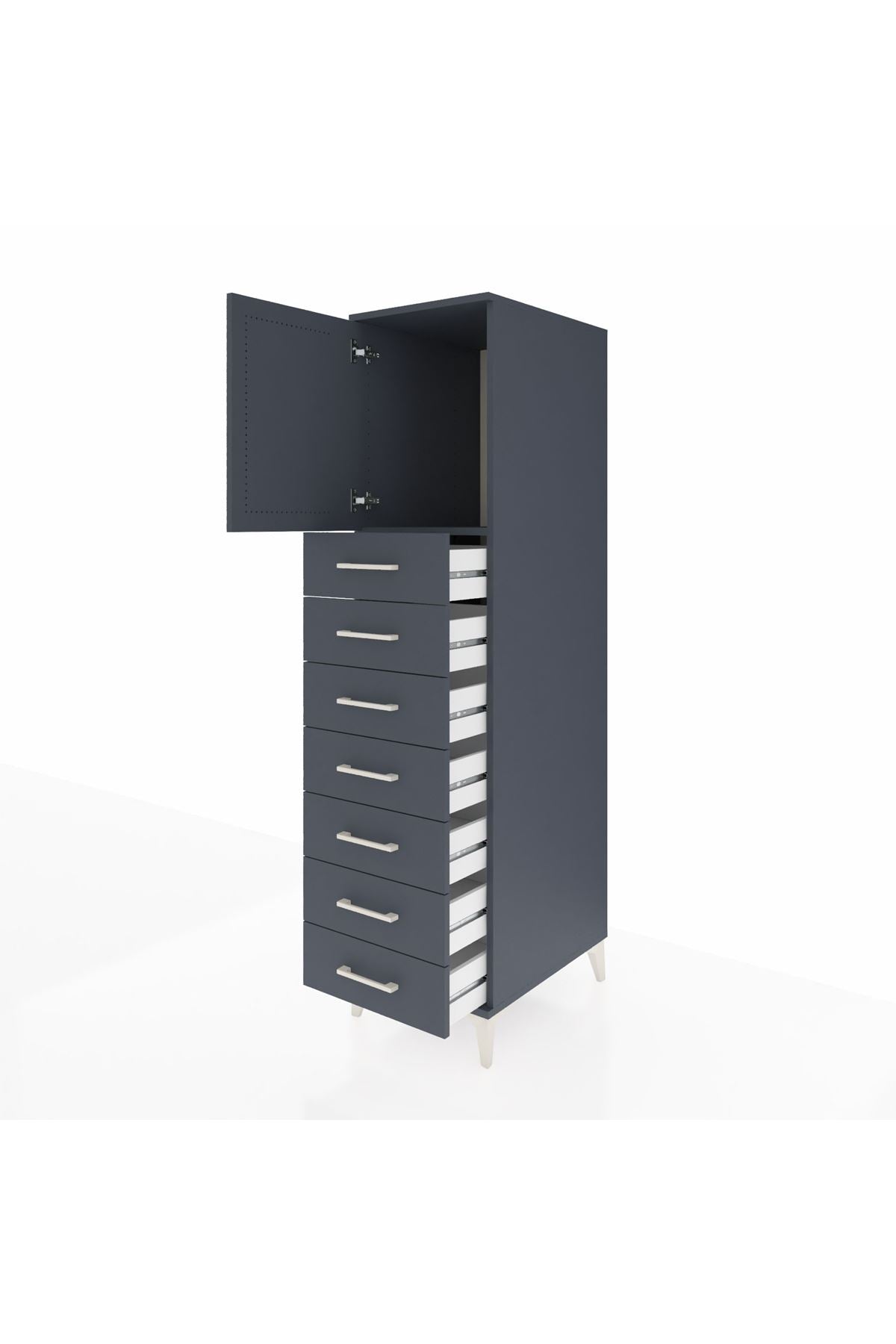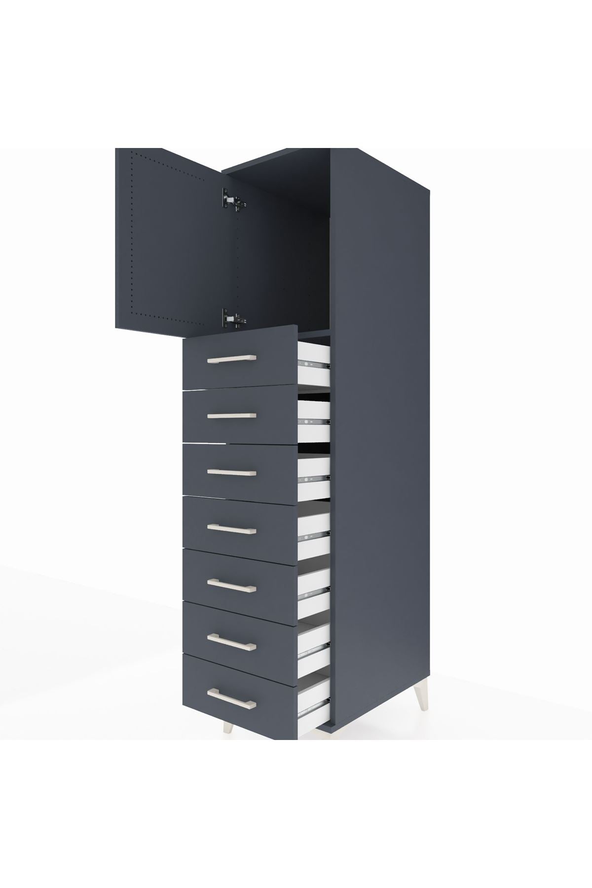 Kronos Dolap Tek Raflı 7 Çekmeceli Tek Kapaklı 44x59x182 Antrasit-Antrasit