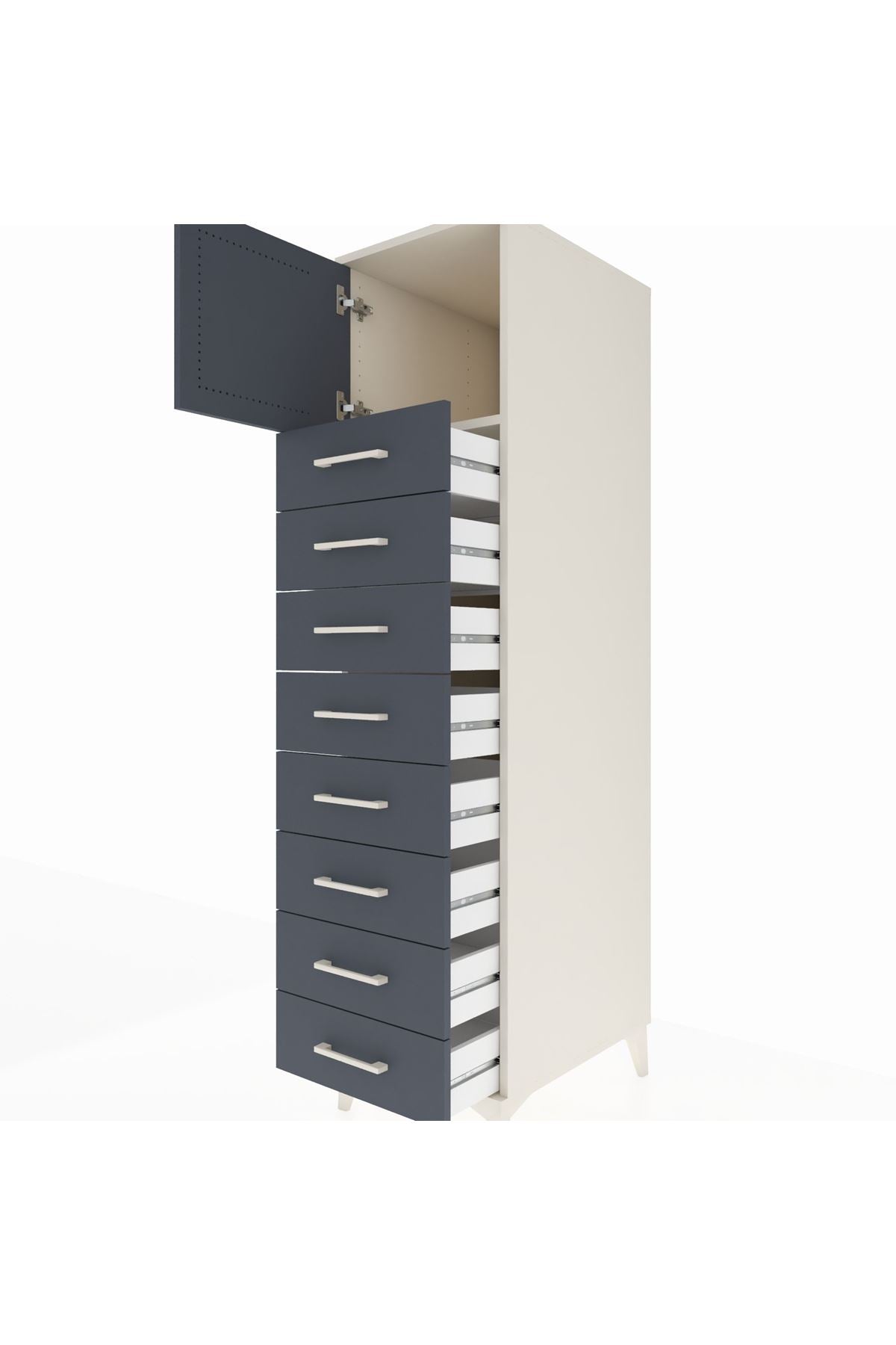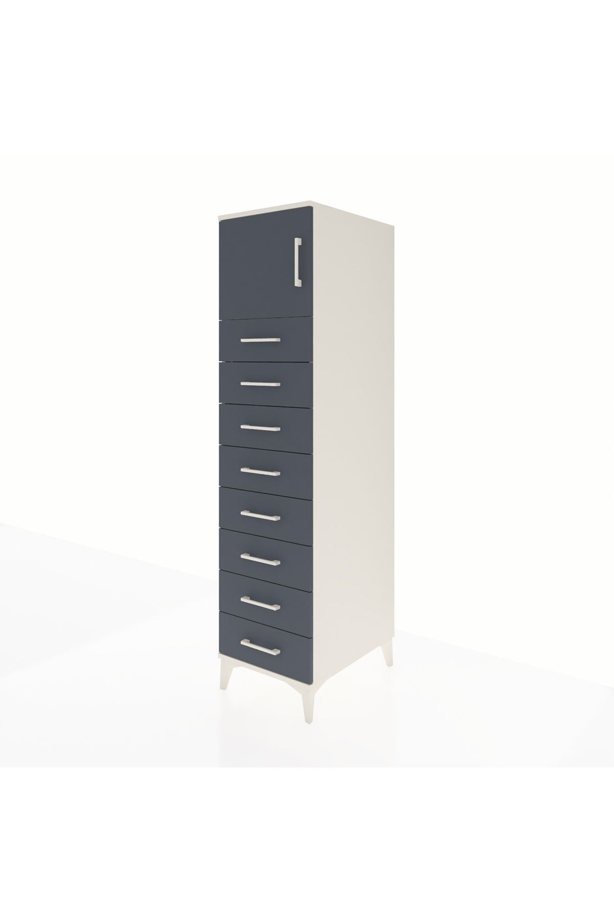 Kronos Dolap Tek Raflı 8 Çekmeceli Tek Kapaklı 44x59x182 Aytaşı-Antrasit