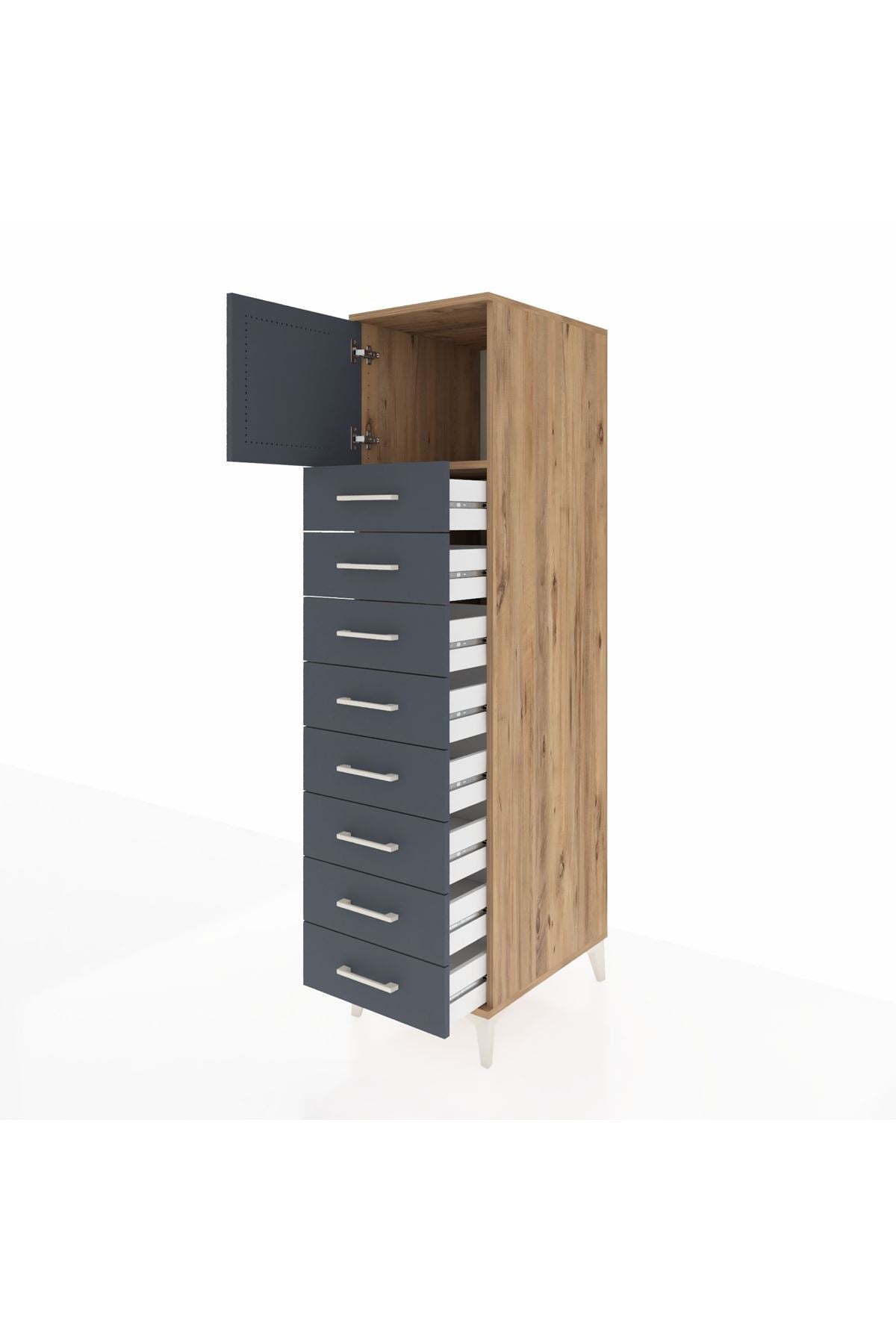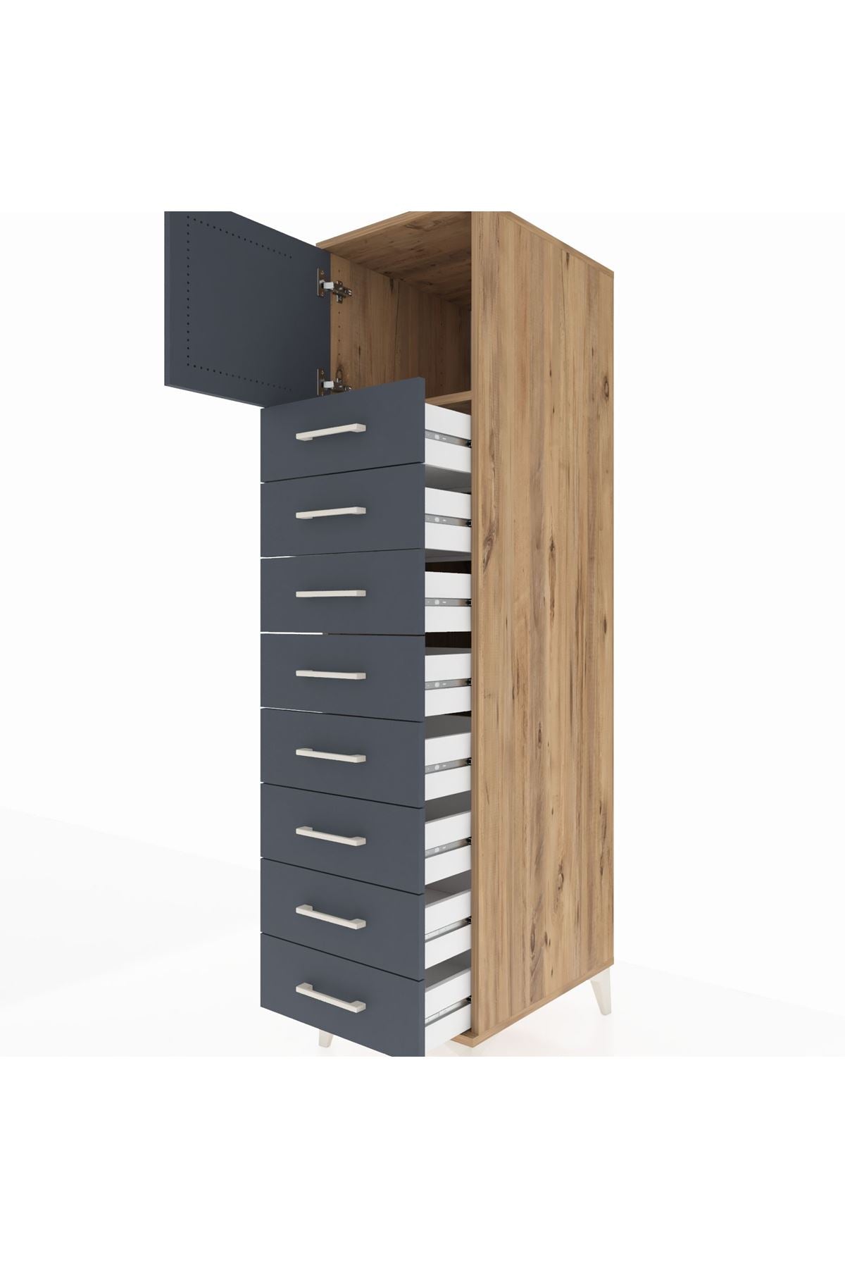 Kronos Dolap Tek Raflı 8 Çekmeceli Tek Kapaklı 44x59x182 Çam-Antrasit