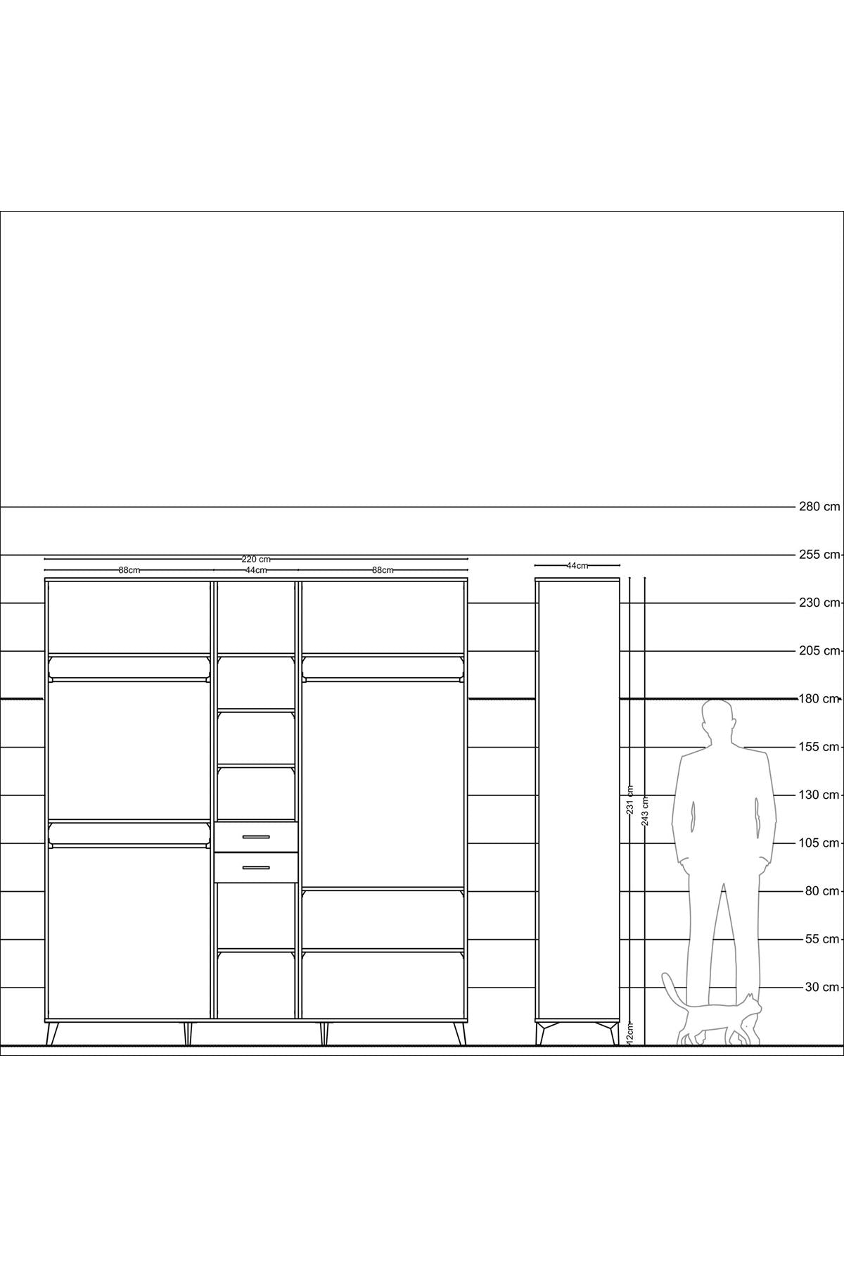 Hyperion Dolap 10 Raflı 2 Çekmeceli 3 Askılı 220x44x243