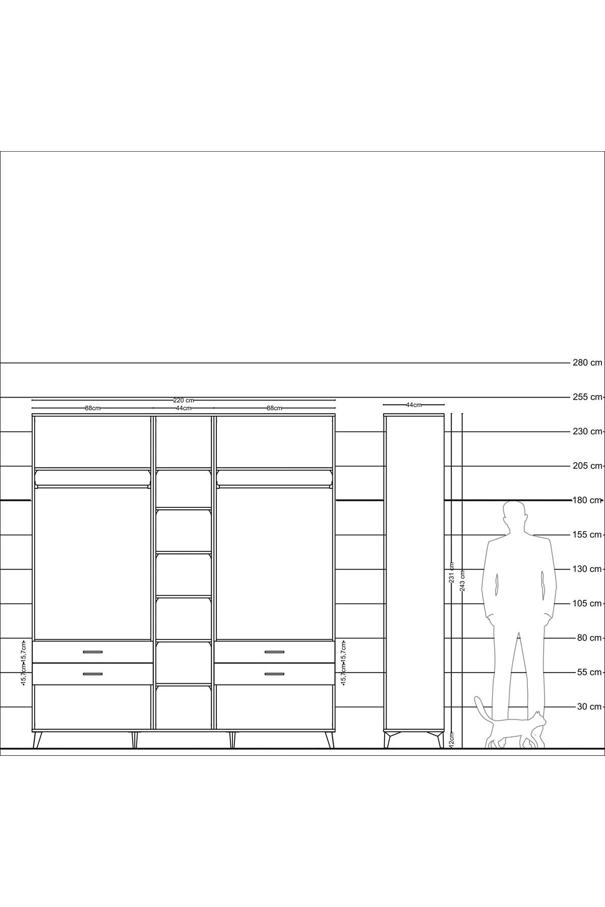 Hyperion Dolap 10 Raflı 4 Çekmeceli 2 Askılı 220x44x243