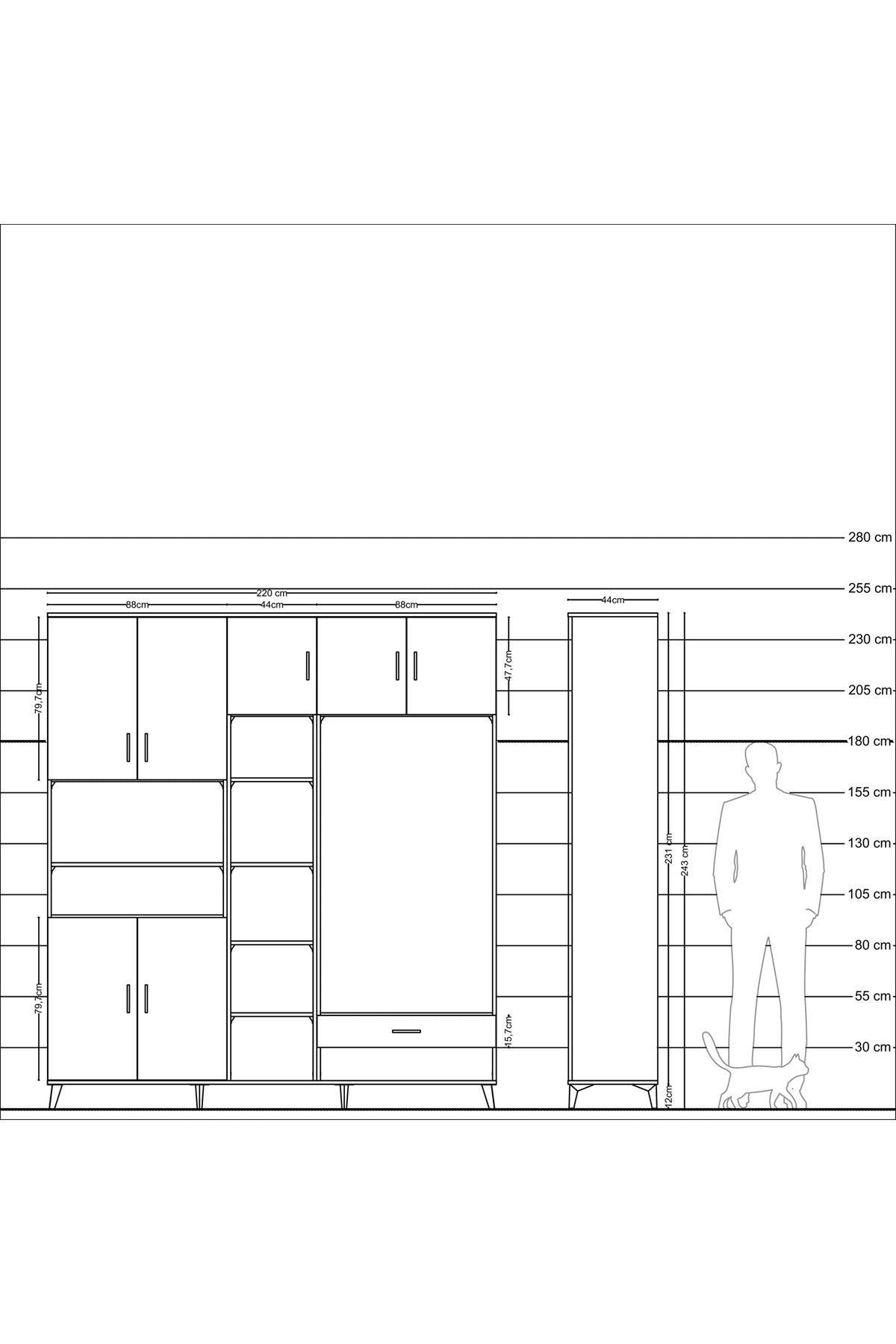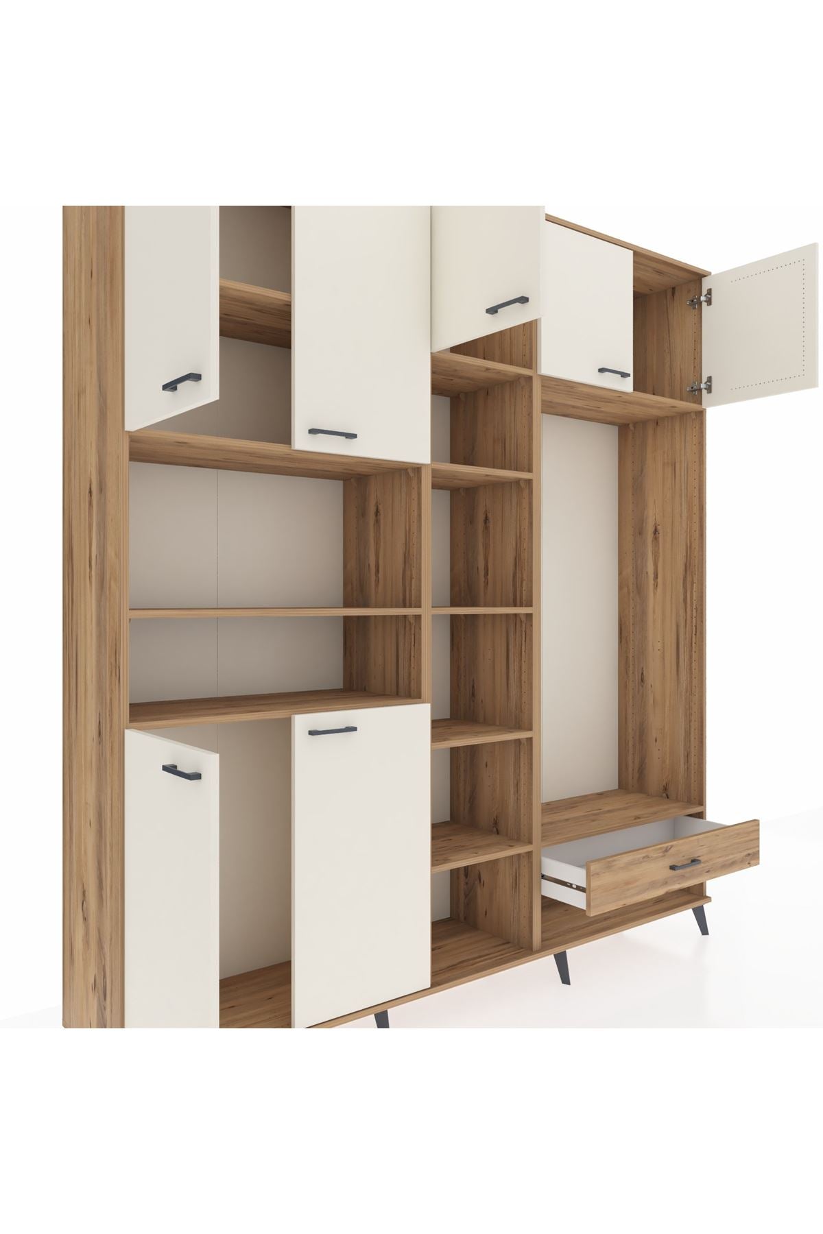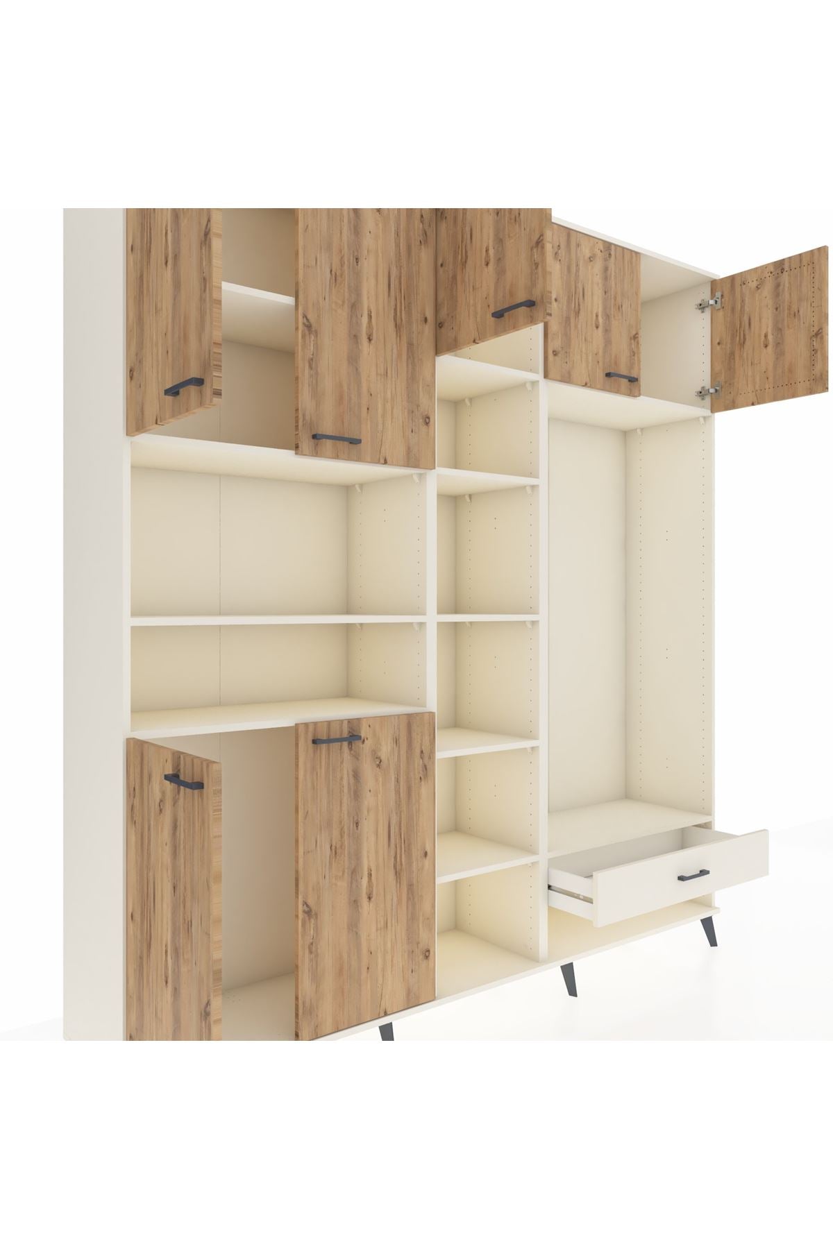 📌 Hyperion Dolap 11 Raflı Tek Çekmeceli 7 Kapaklı 220x44x243