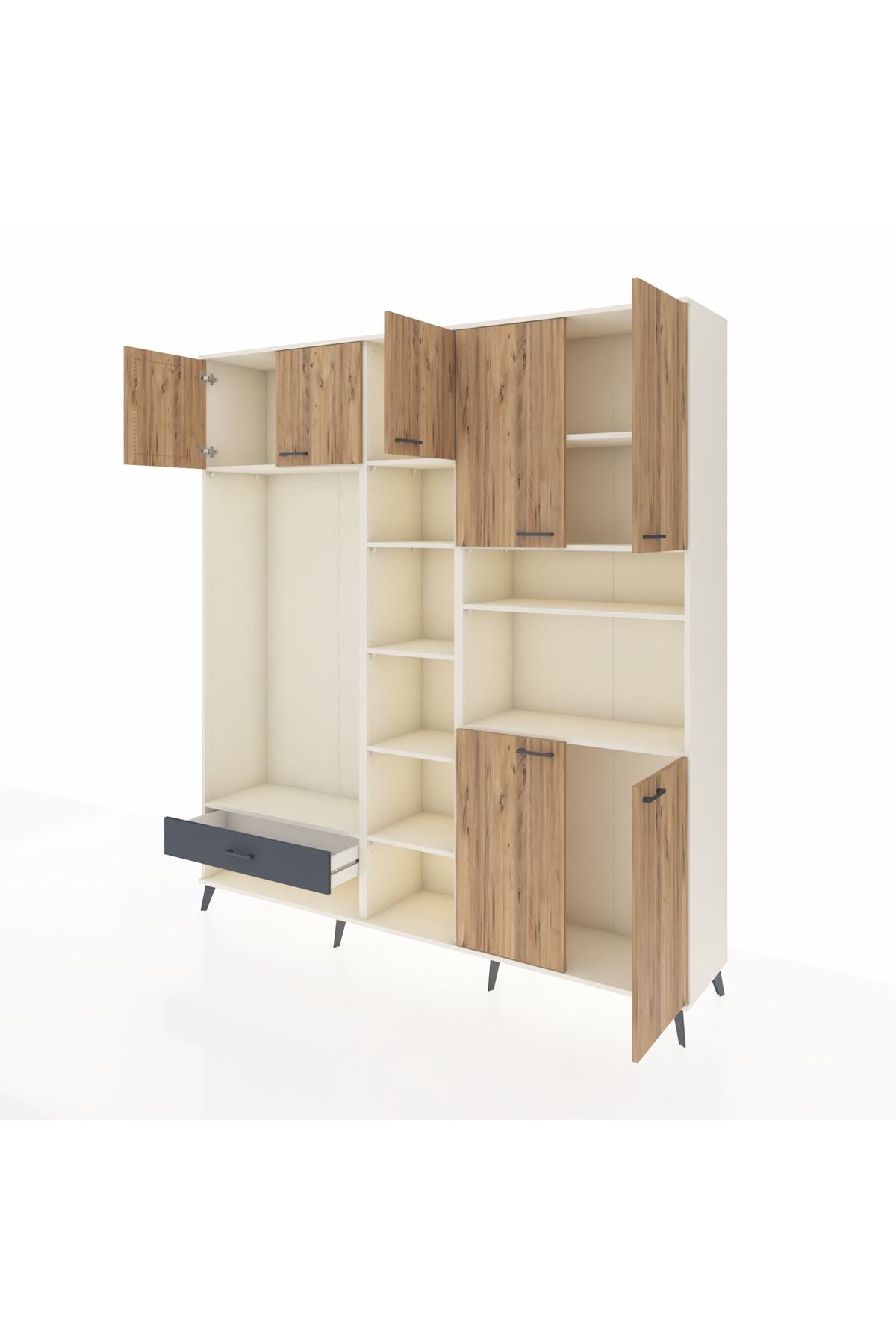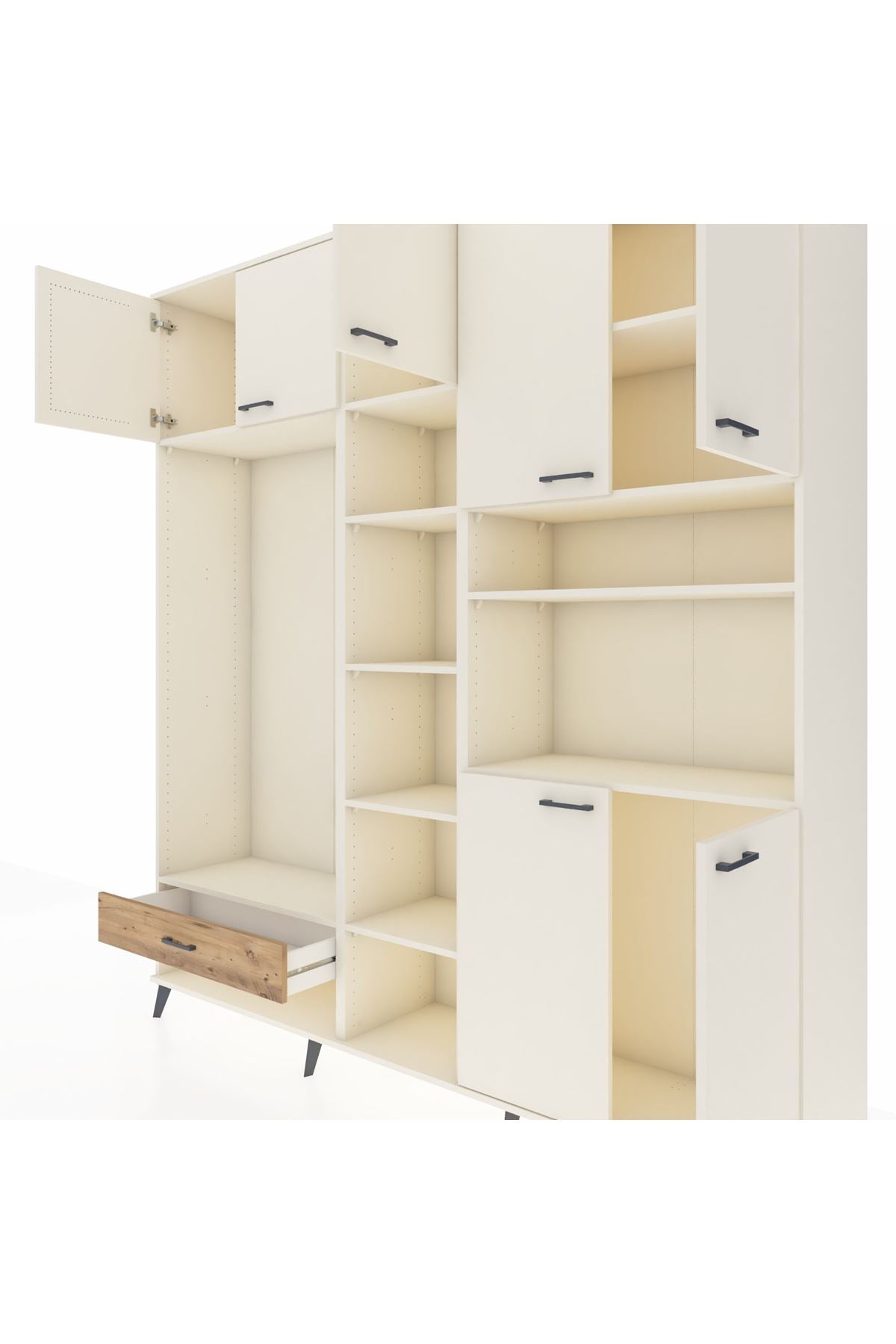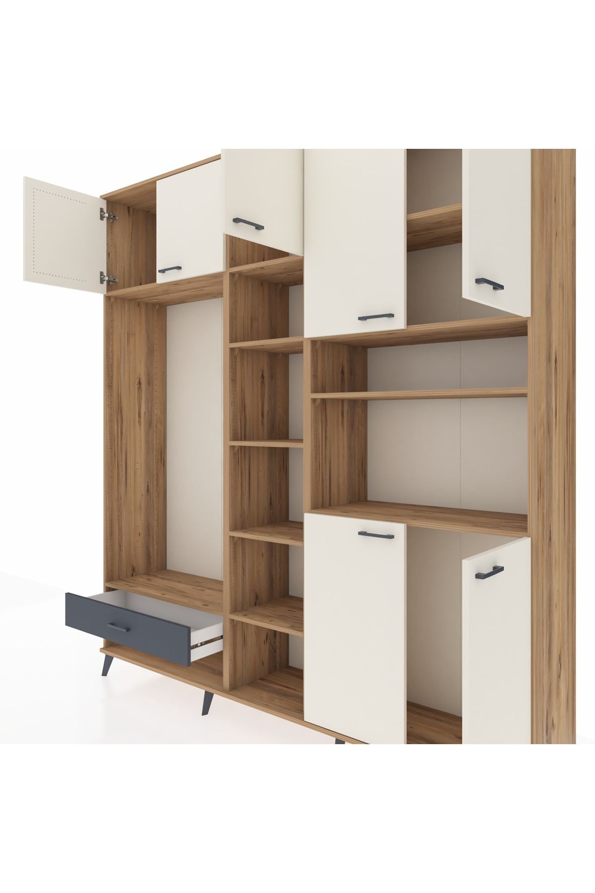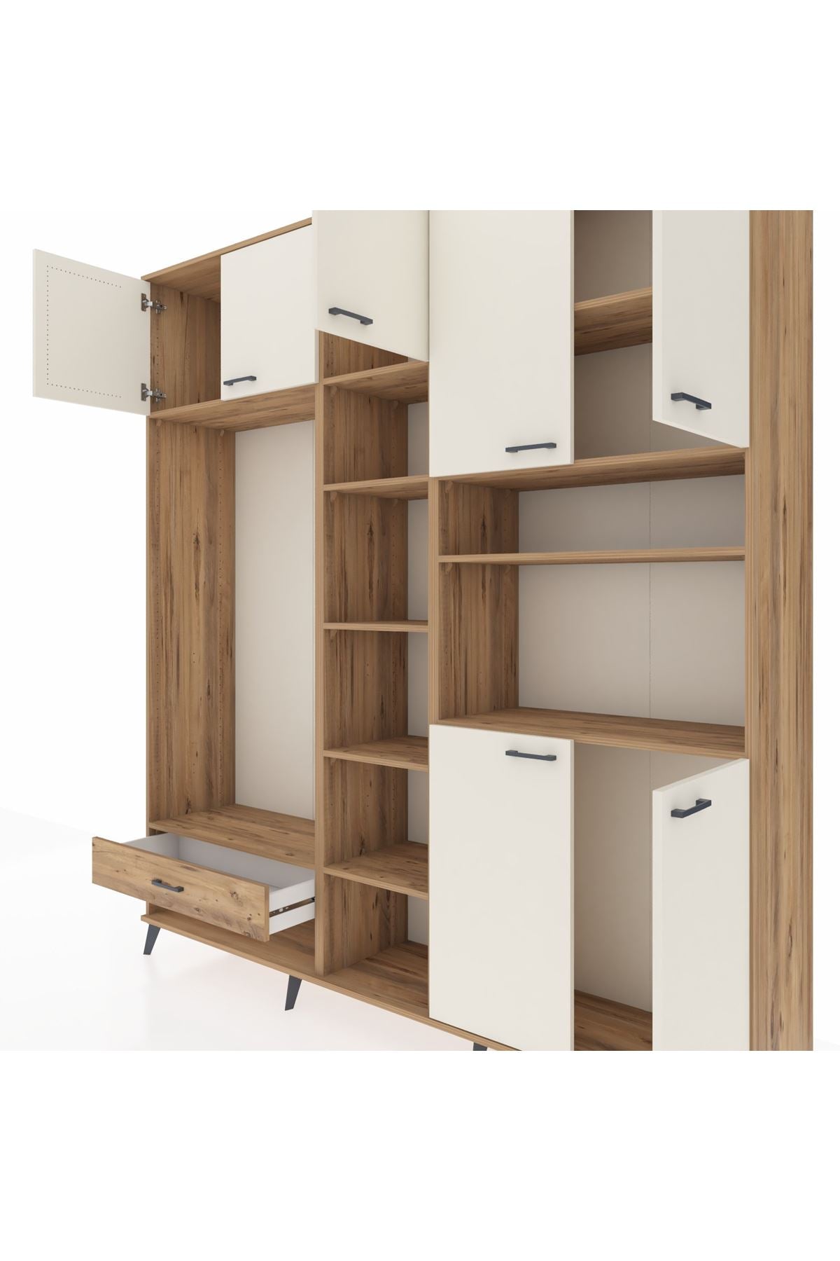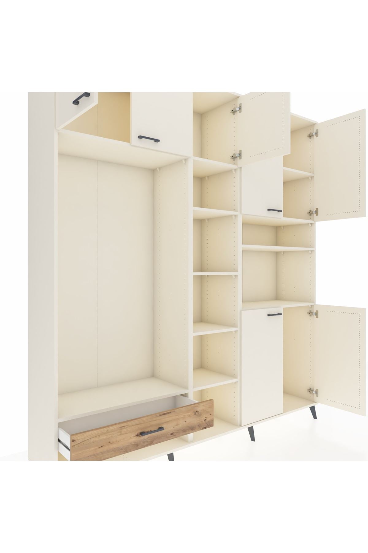 • 👔 Giyinme Odası: Giyinme odanız için ideal bir çözüm sunar. 11 rafı ve tek çekmecesi sayesinde aksesuarlarınızı, çantalarınızı ve diğer kişisel eşyalarınızı kolayca organize edebilirsiniz.