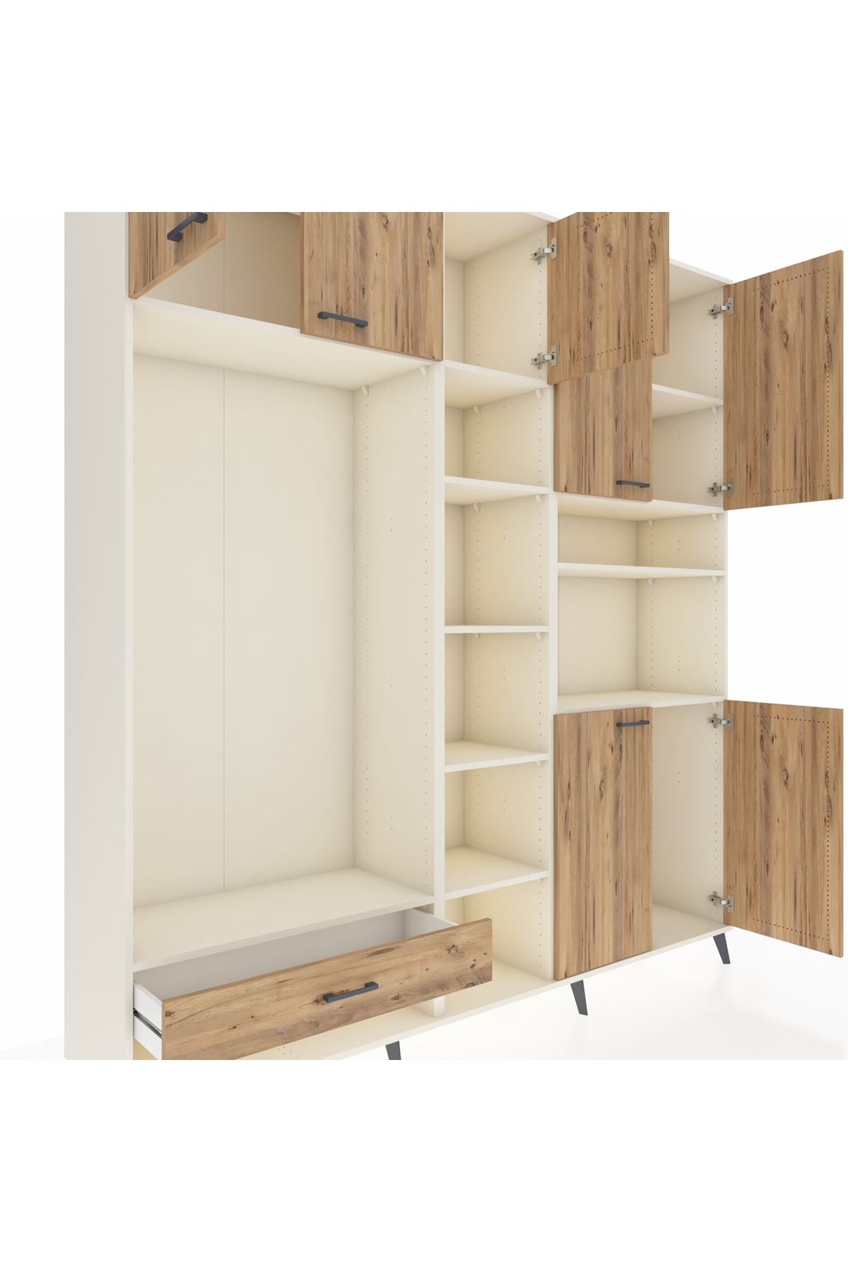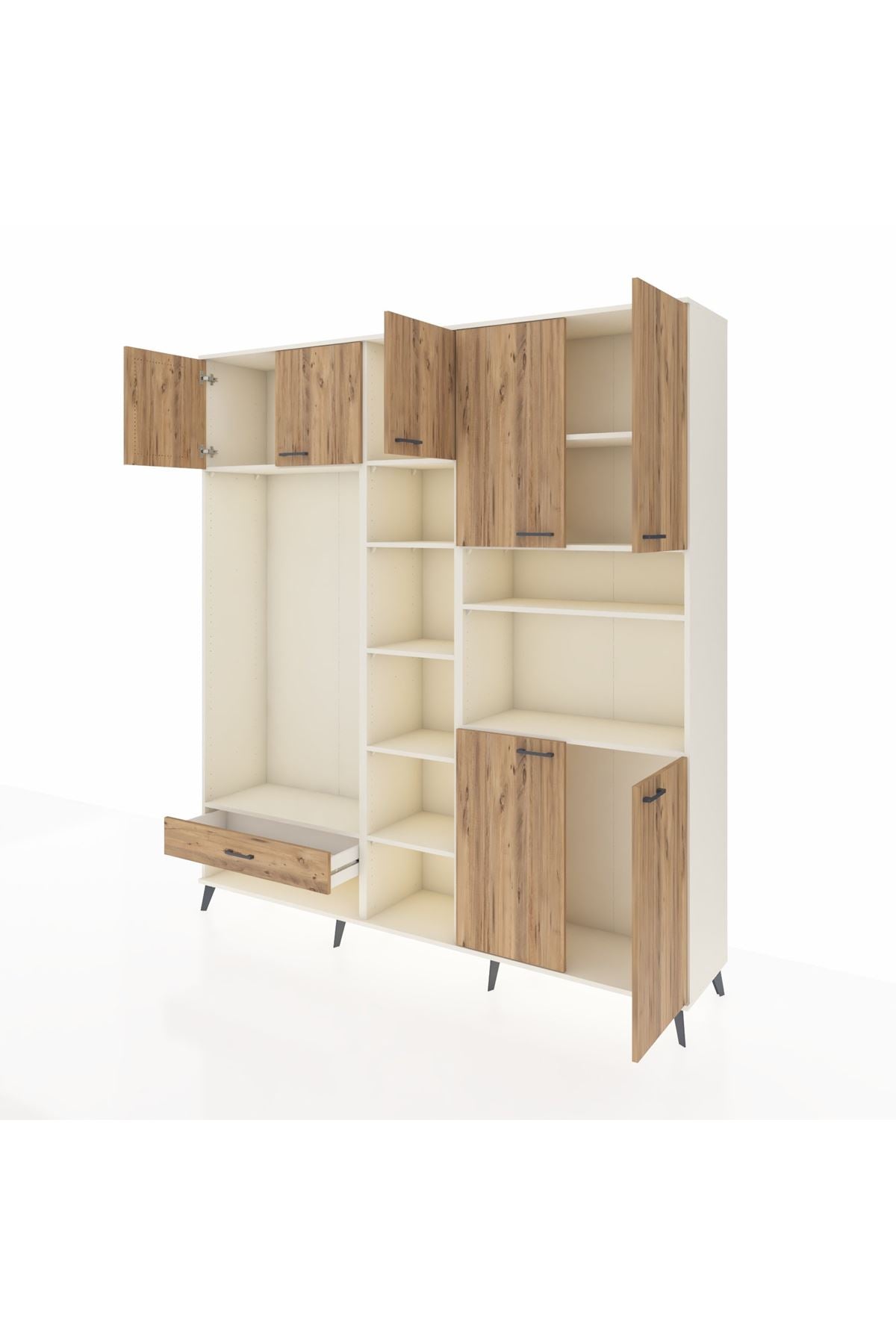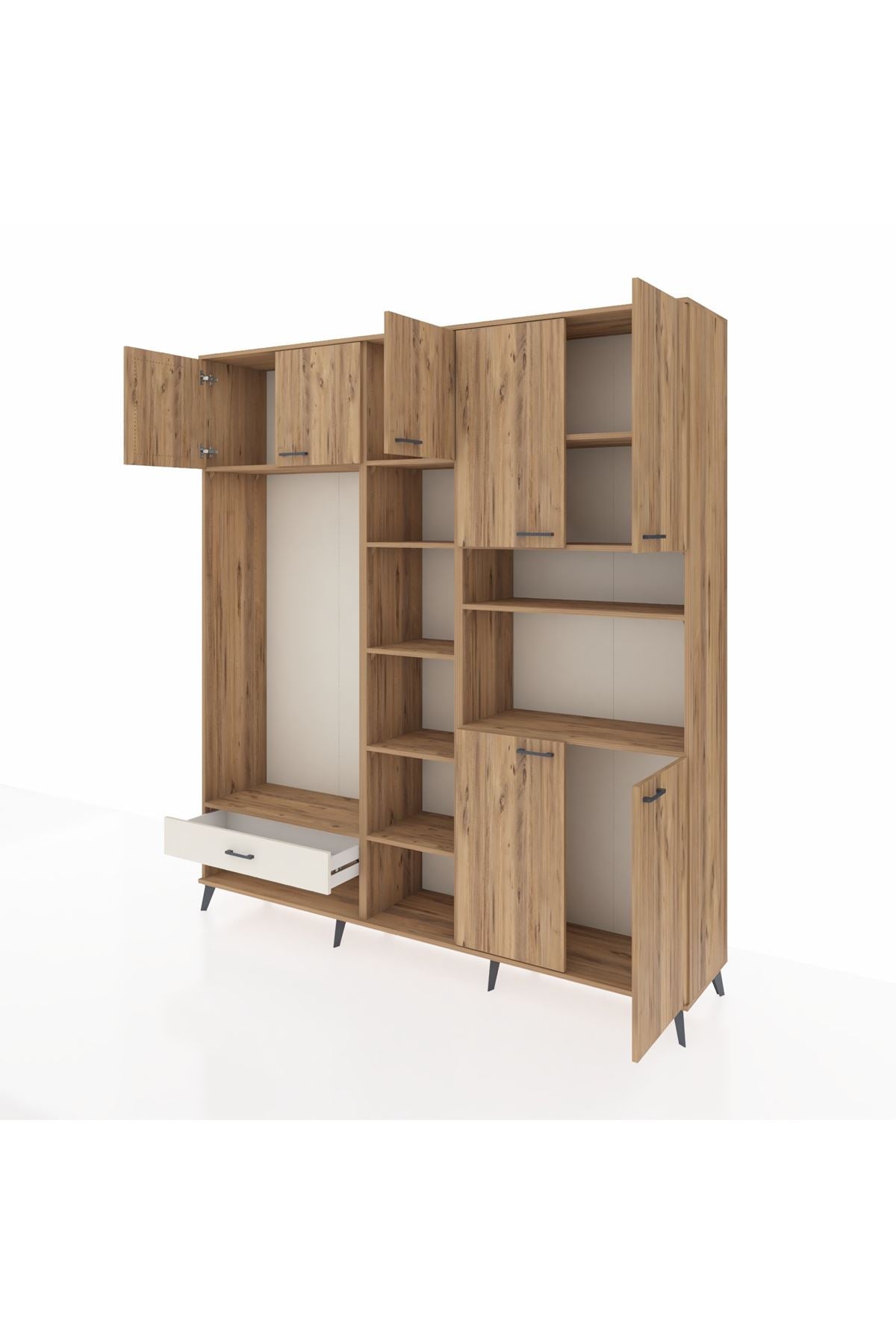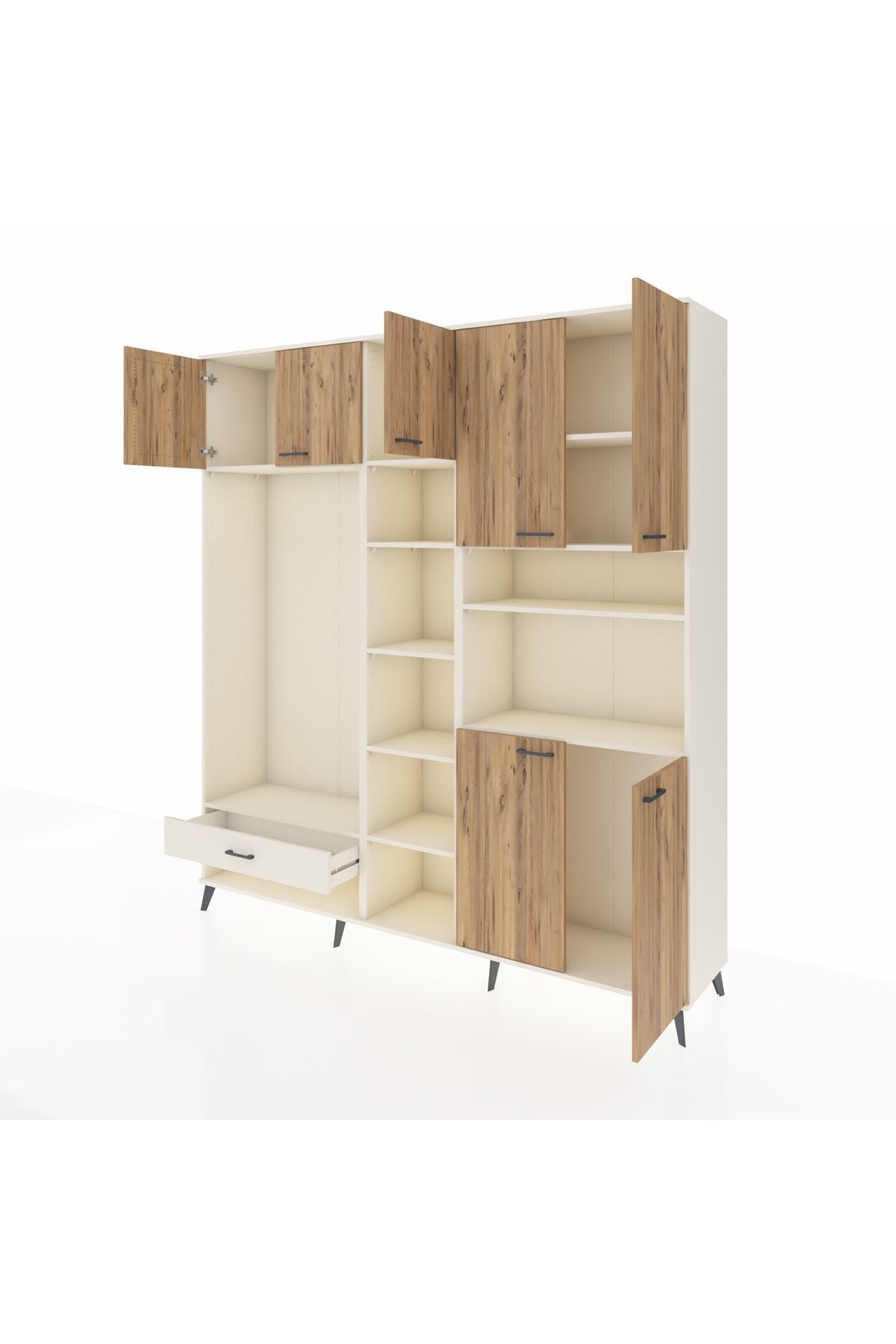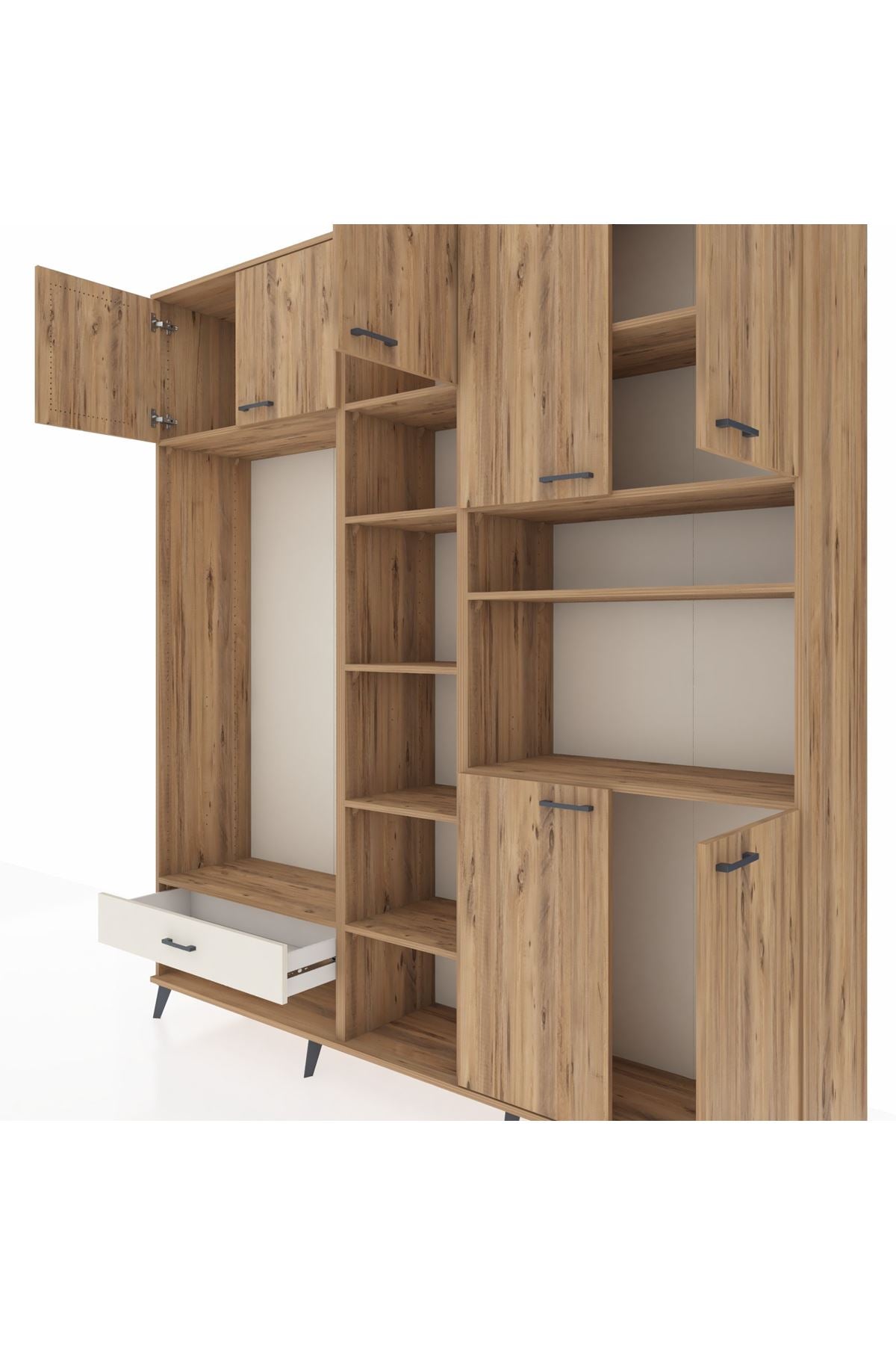 • 👔 Giyinme Odası: Giyinme odanız için ideal bir çözüm sunar. 11 rafı ve tek çekmecesi sayesinde aksesuarlarınızı, çantalarınızı ve diğer kişisel eşyalarınızı kolayca organize edebilirsiniz.