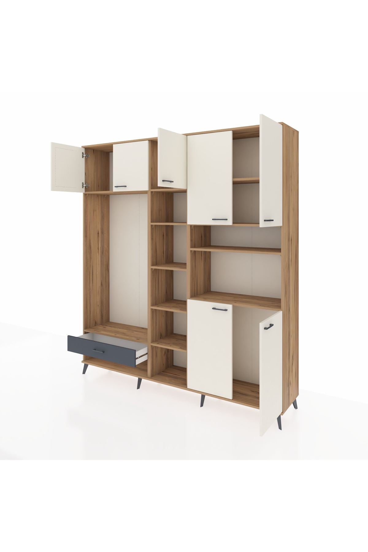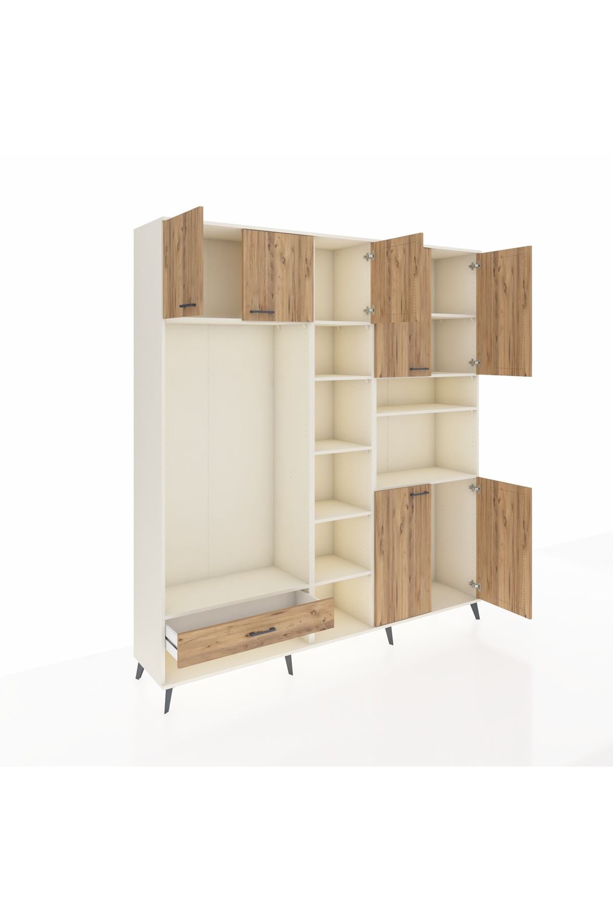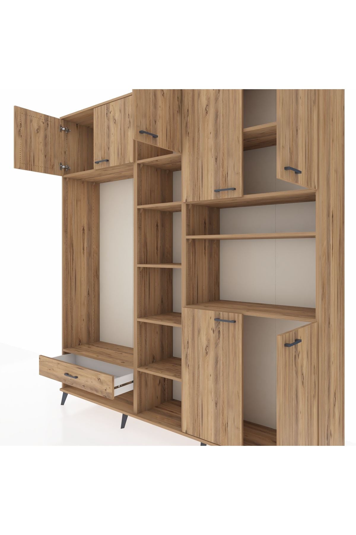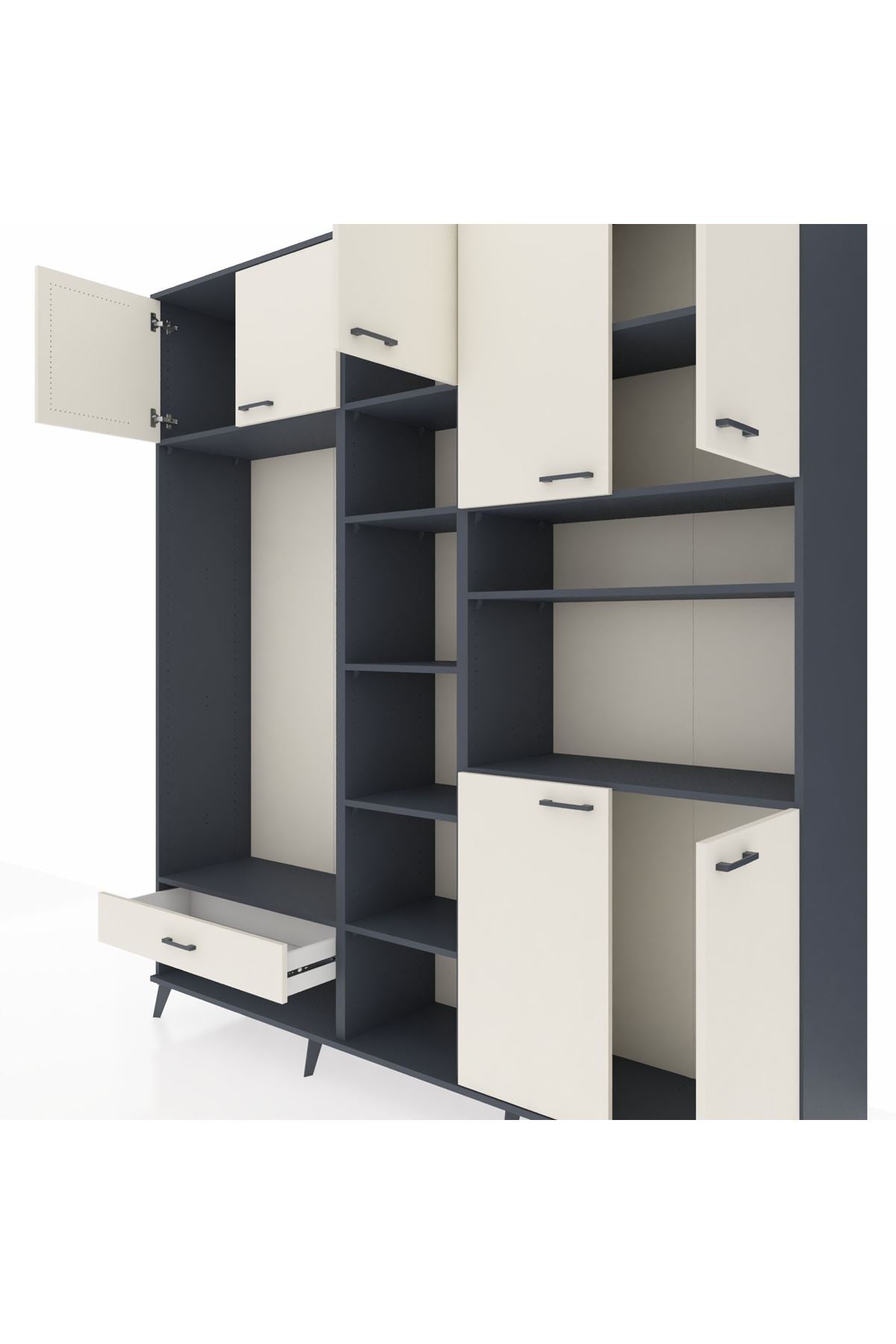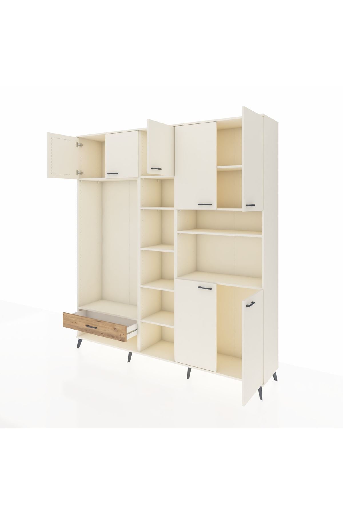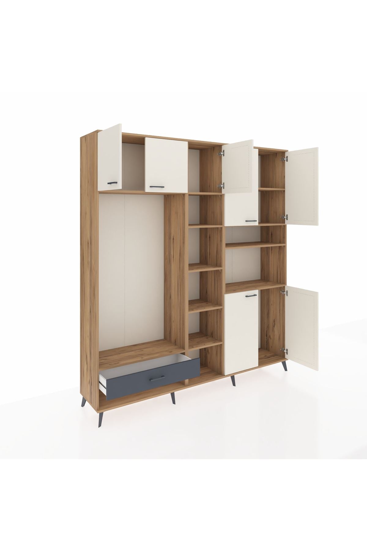 • 👔 Giyinme Odası: Giyinme odanız için ideal bir çözüm sunar. 11 rafı ve tek çekmecesi sayesinde aksesuarlarınızı, çantalarınızı ve diğer kişisel eşyalarınızı kolayca organize edebilirsiniz.