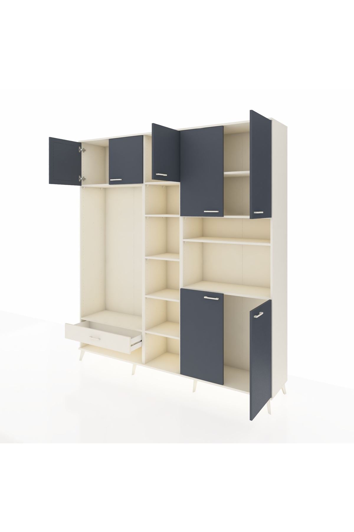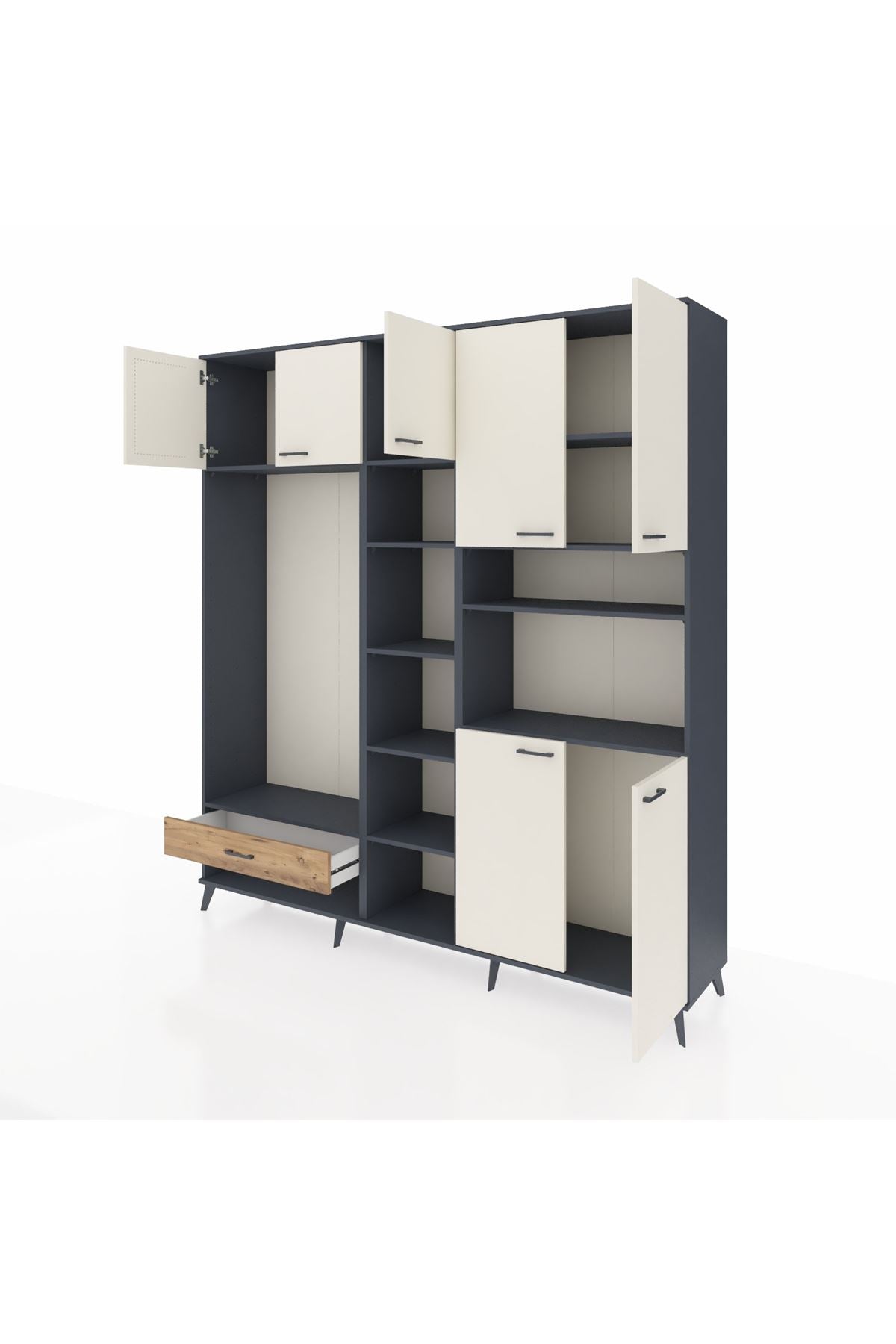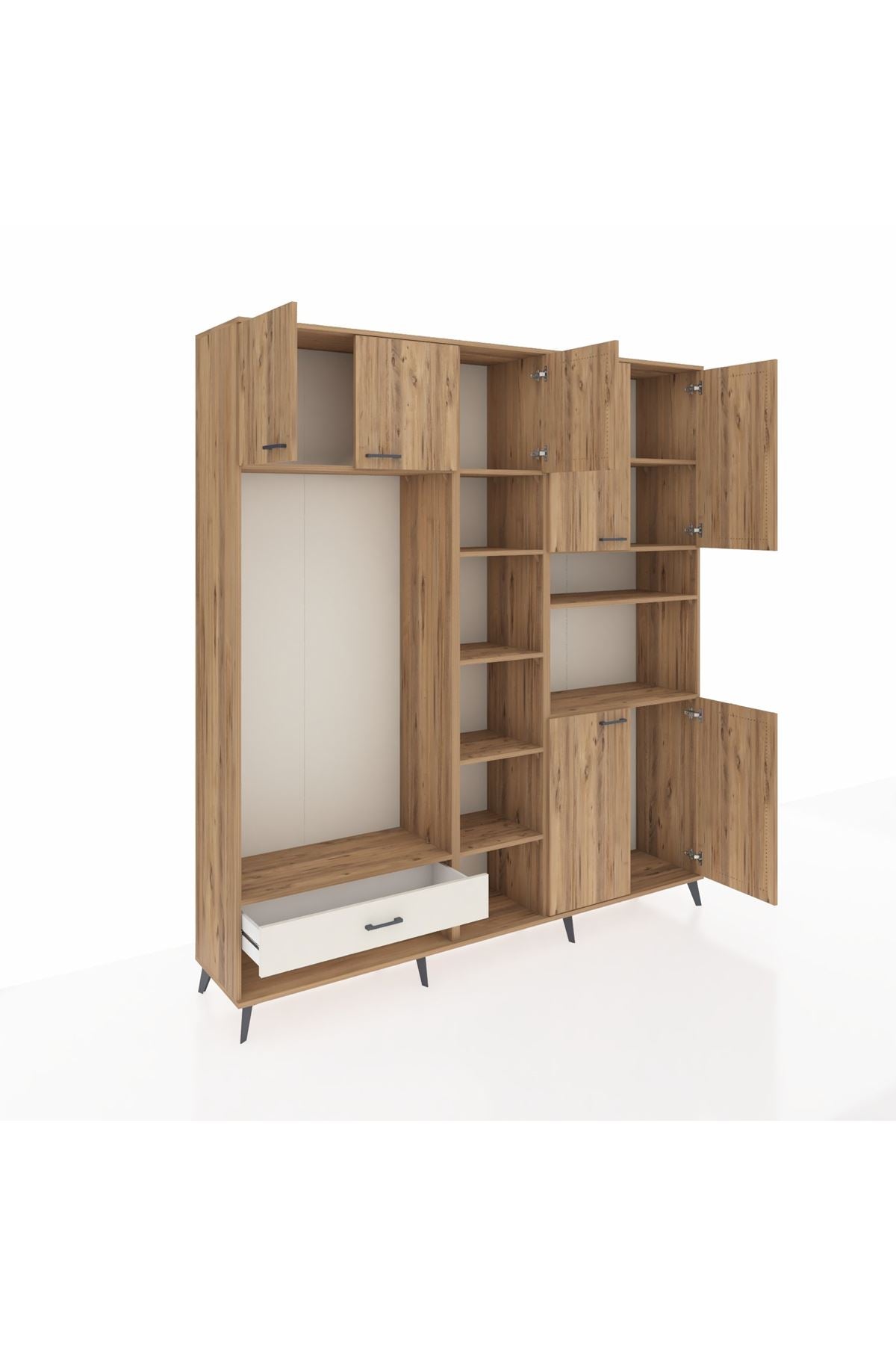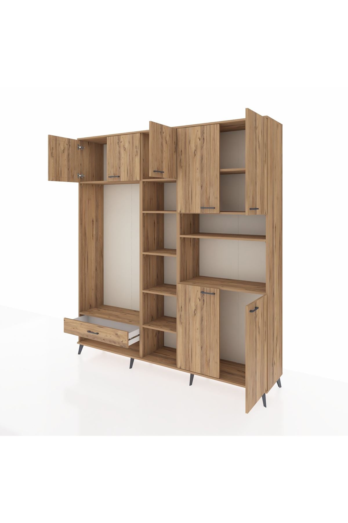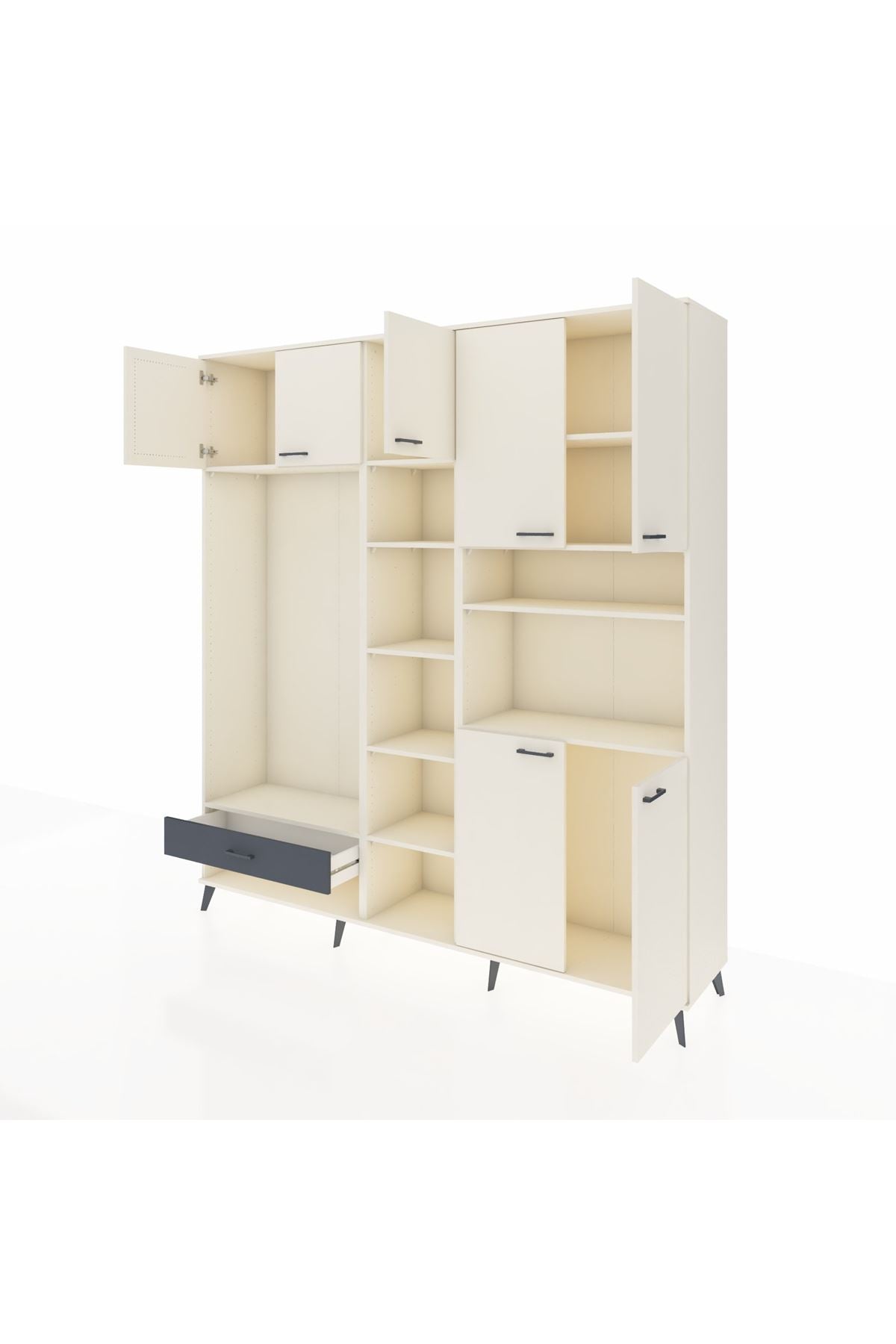 • 👔 Giyinme Odası: Giyinme odanız için ideal bir çözüm sunar. 11 rafı ve tek çekmecesi sayesinde aksesuarlarınızı, çantalarınızı ve diğer kişisel eşyalarınızı kolayca organize edebilirsiniz.
