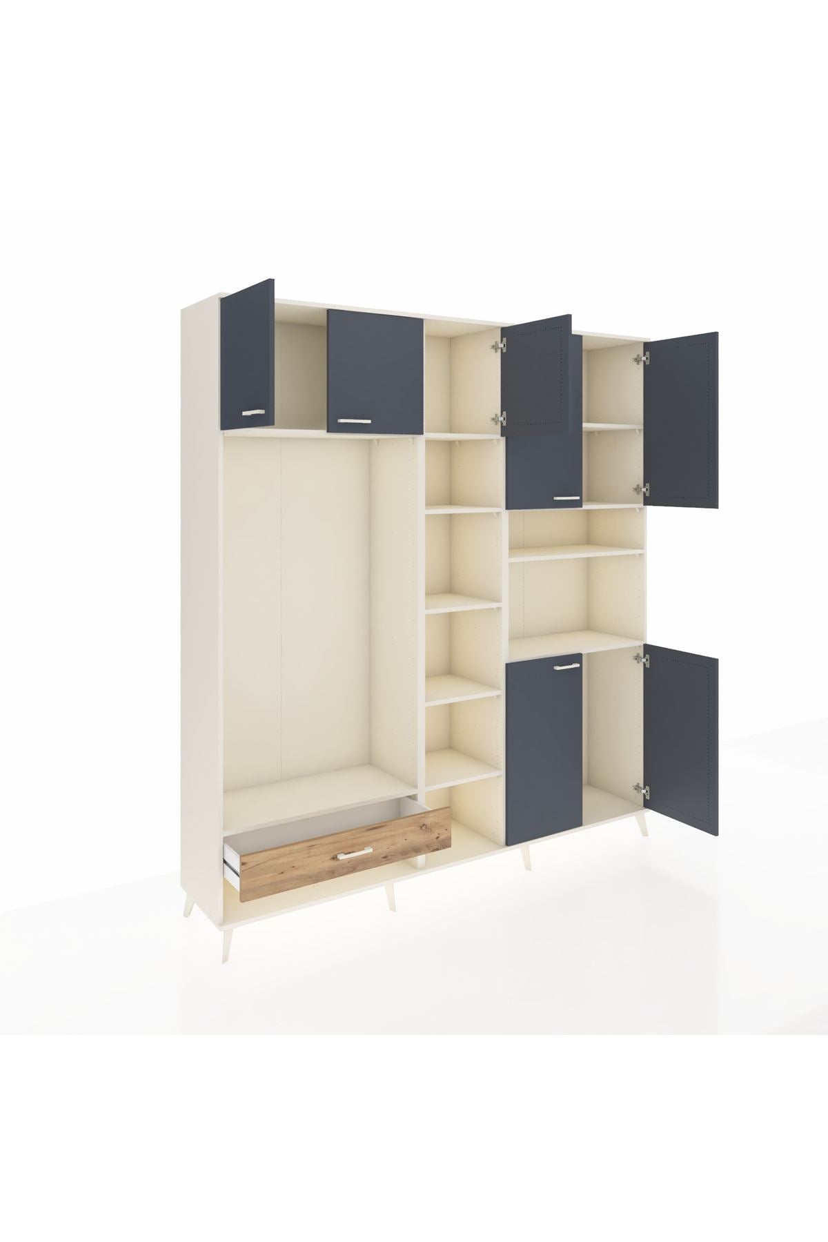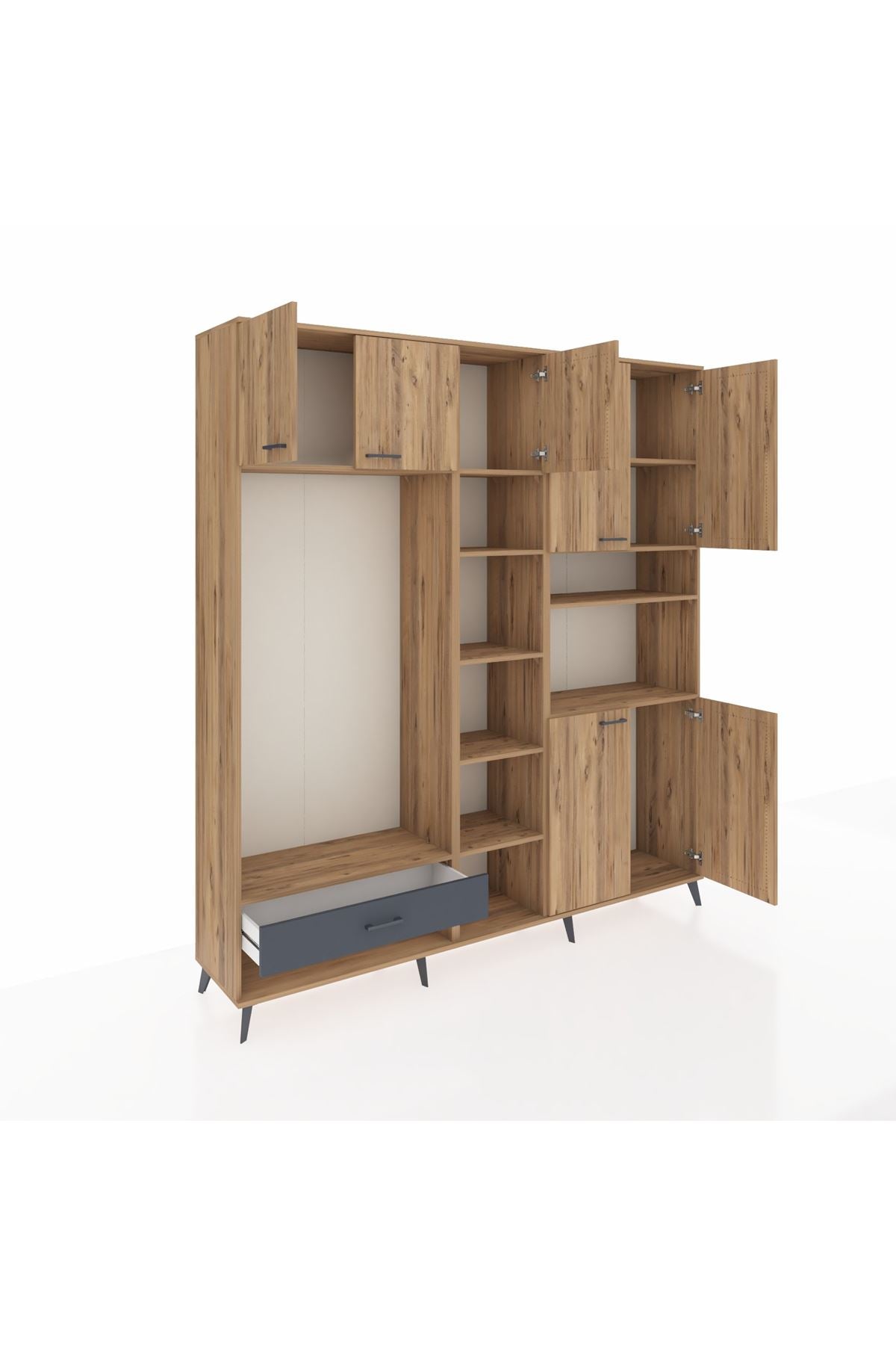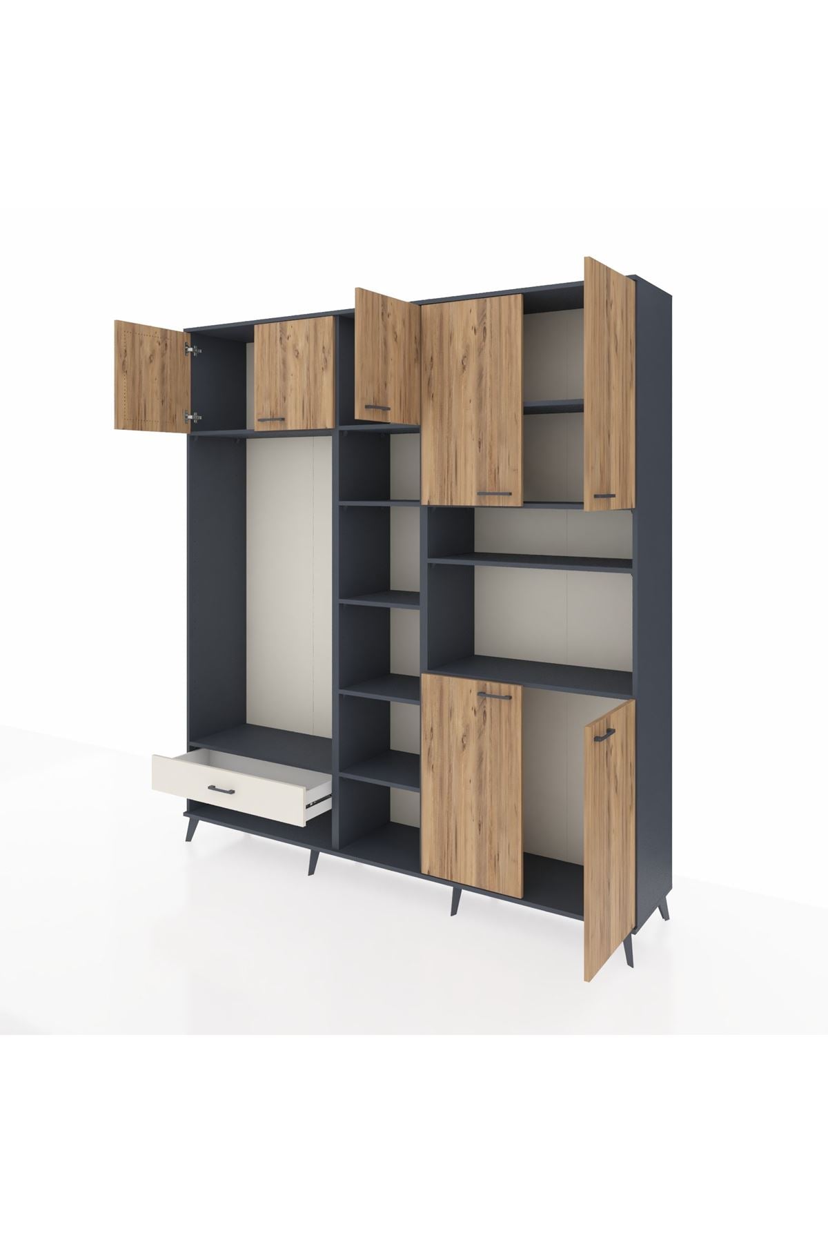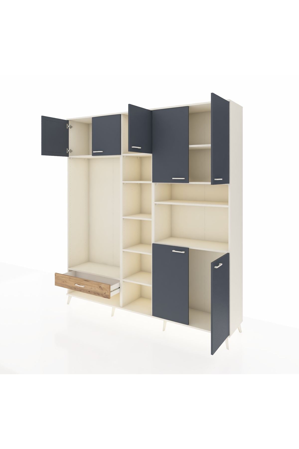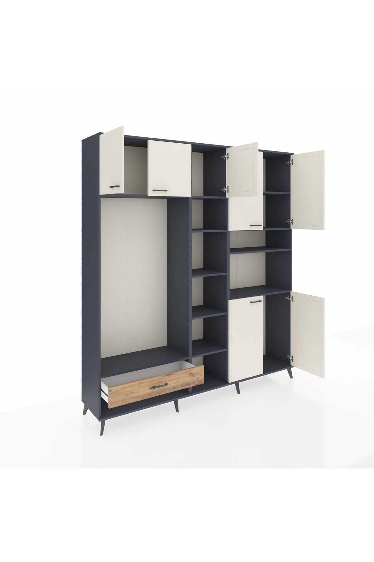 • 👔 Giyinme Odası: Giyinme odanız için ideal bir çözüm sunar. 11 rafı ve tek çekmecesi sayesinde aksesuarlarınızı, çantalarınızı ve diğer kişisel eşyalarınızı kolayca organize edebilirsiniz.