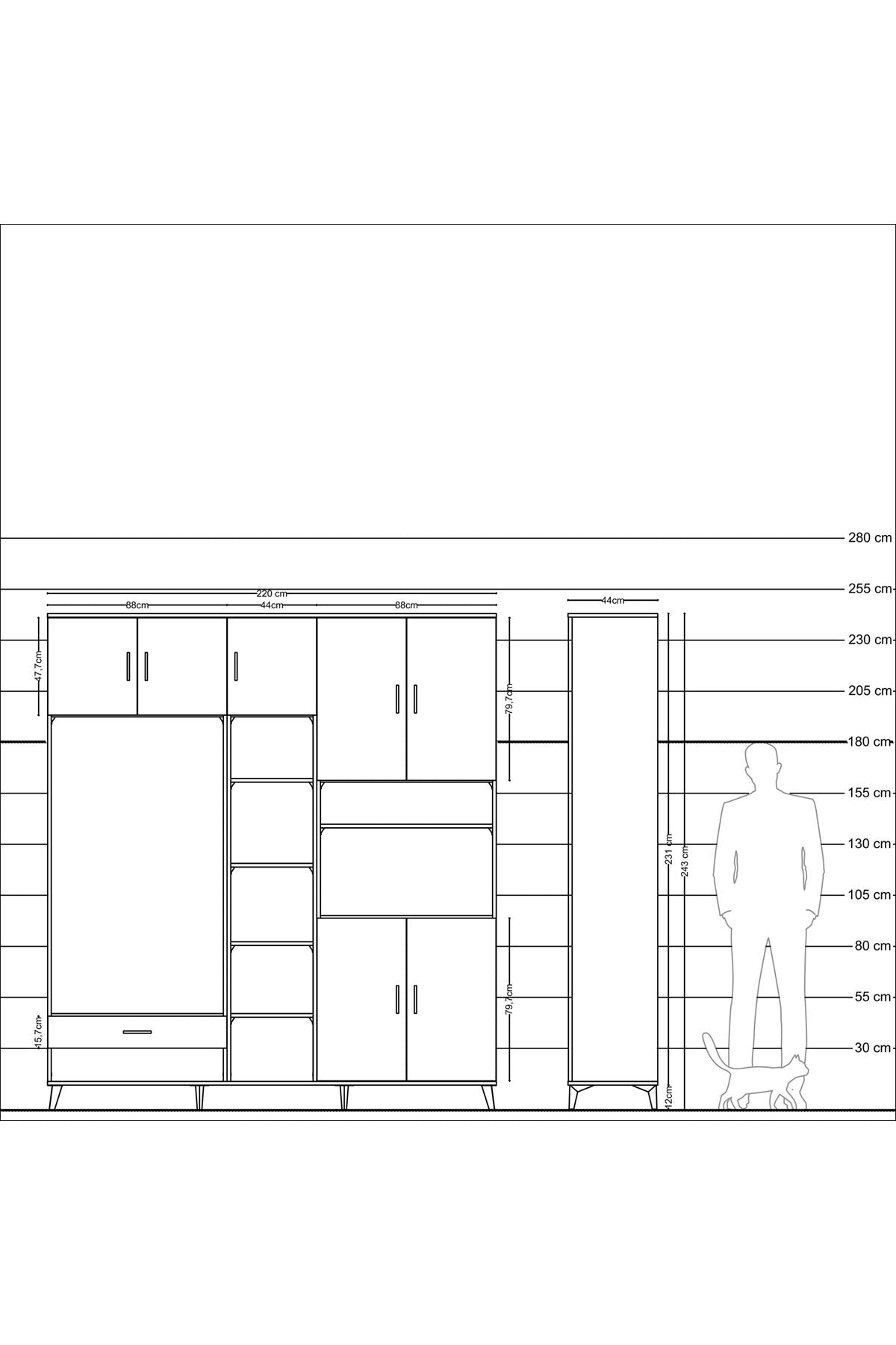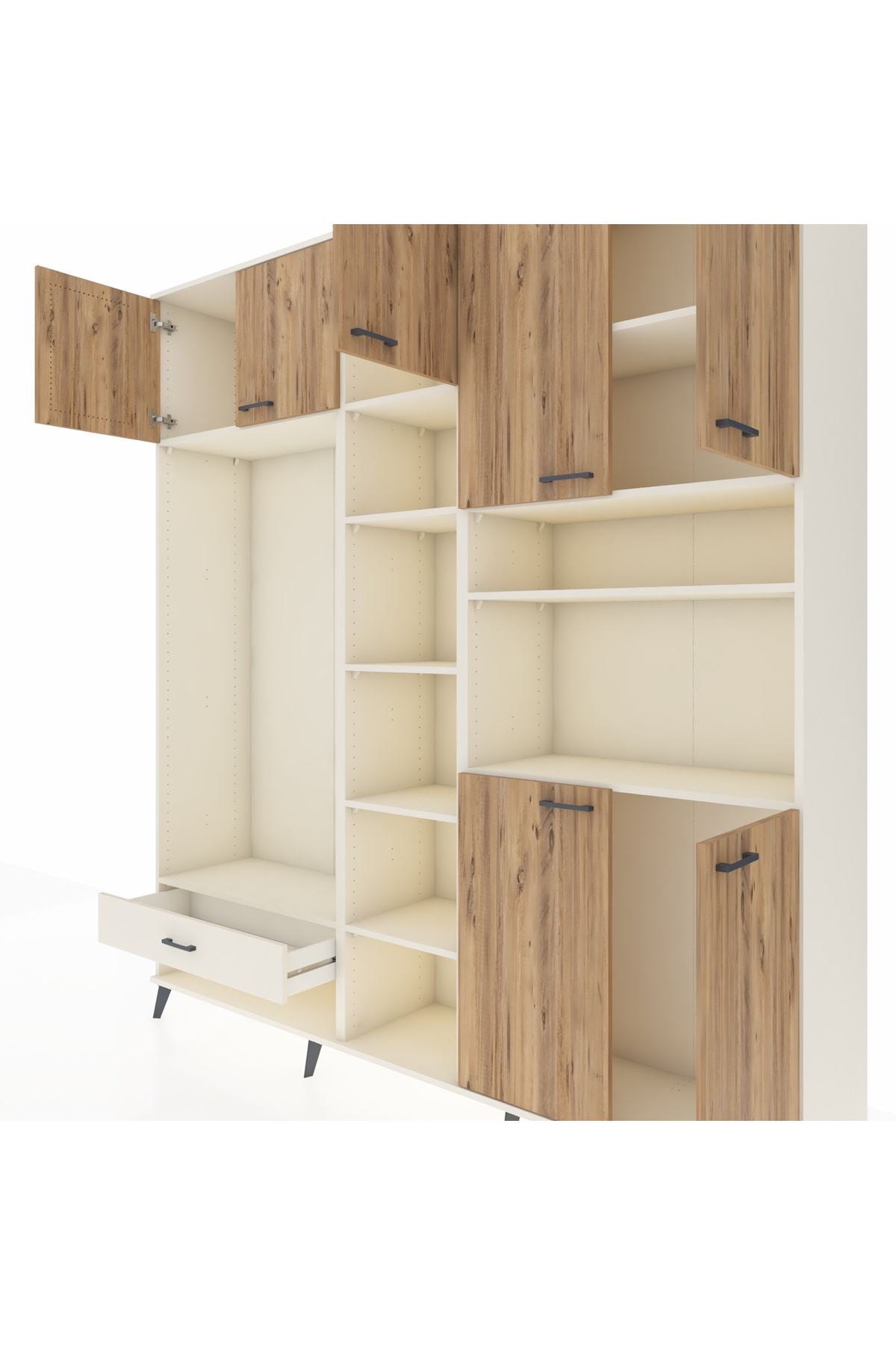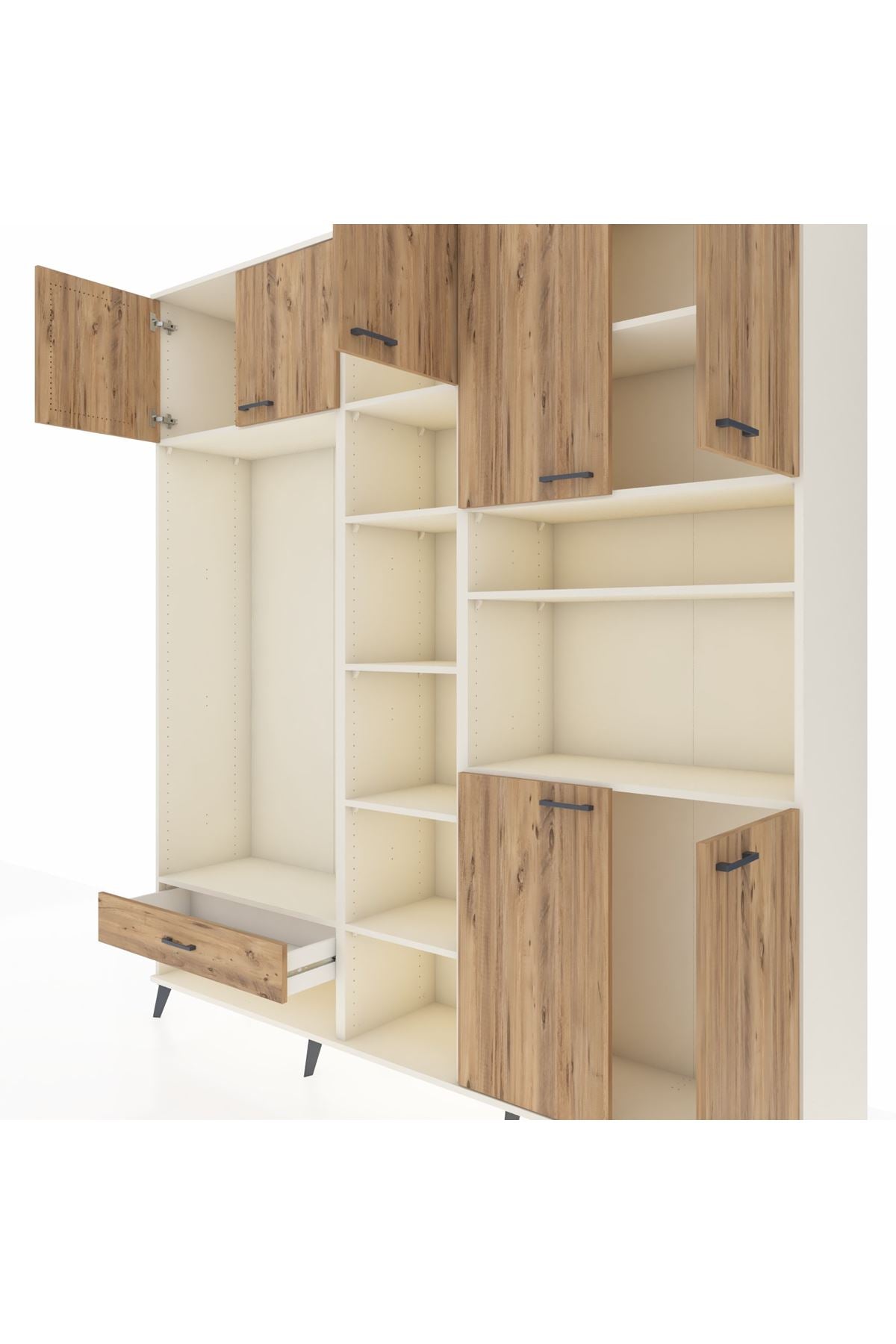📌 Hyperion Dolap 11 Raflı Tek Çekmeceli 7 Kapaklı 220x44x243