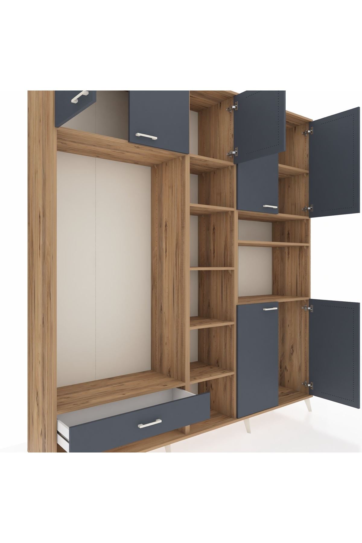 • 🛏️ Yatak Odası: Geniş depolama alanı sayesinde kıyafetlerinizi, ayakkabılarınızı ve diğer eşyalarınızı düzenli bir şekilde saklayabilirsiniz. Yatak odanızın atmosferini tamamlayan şık tasarımıyla dikkat çeker.