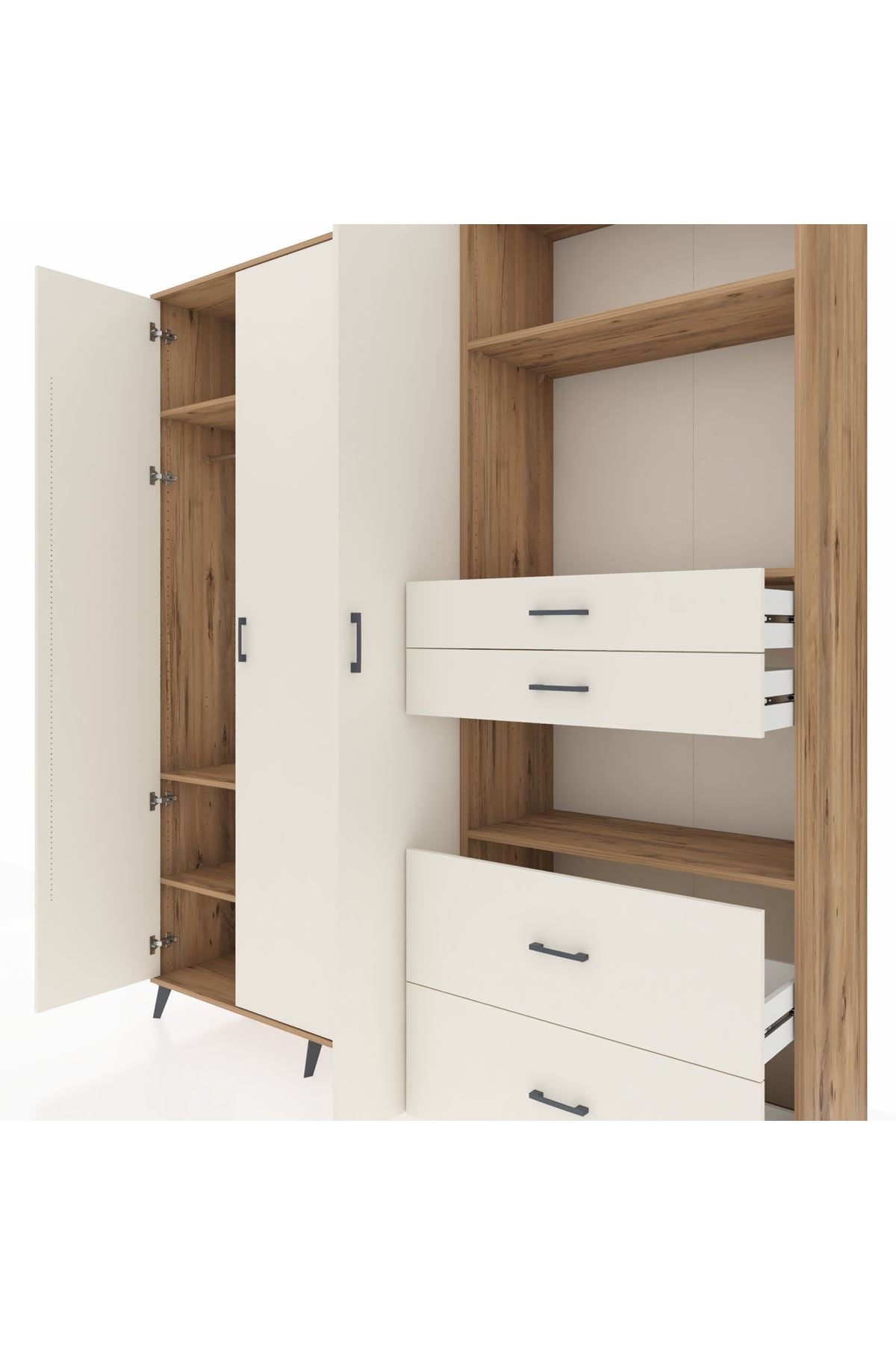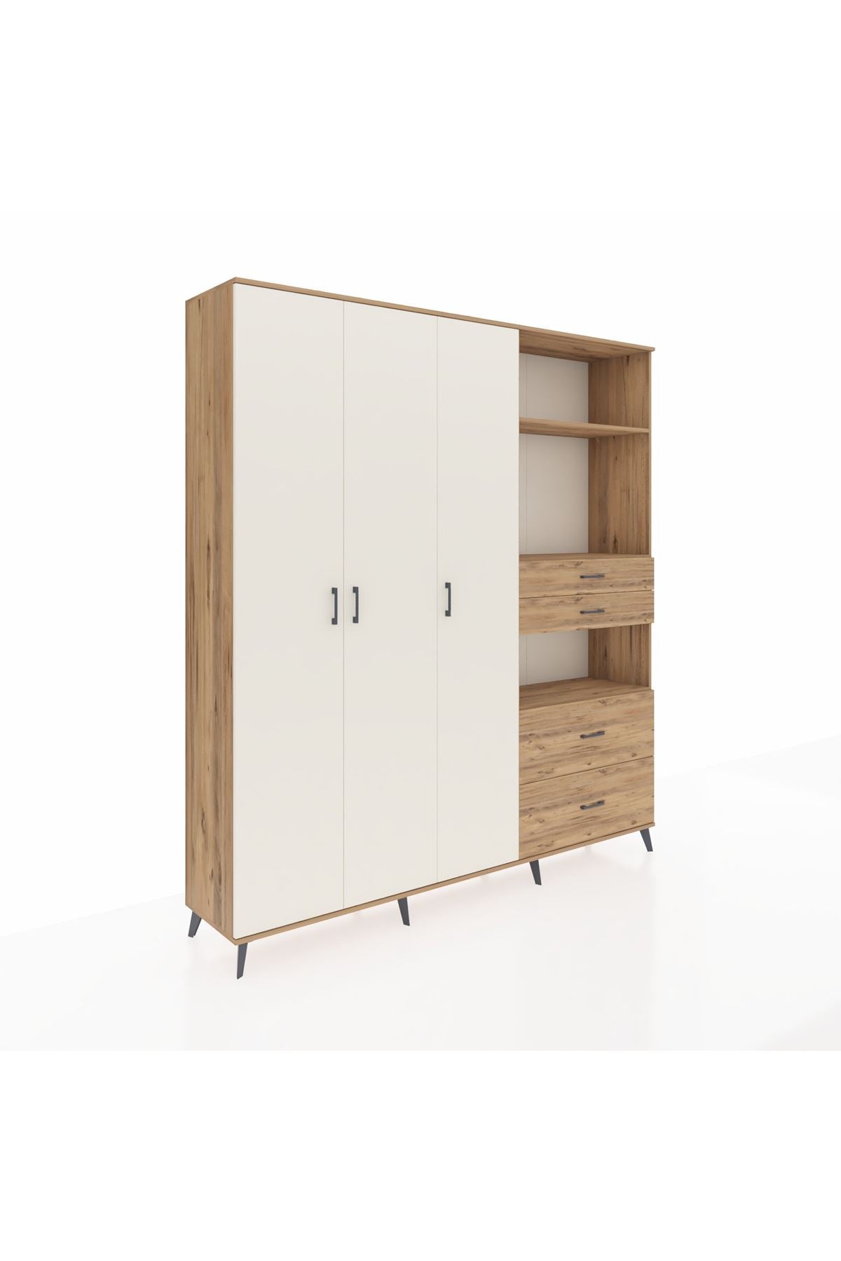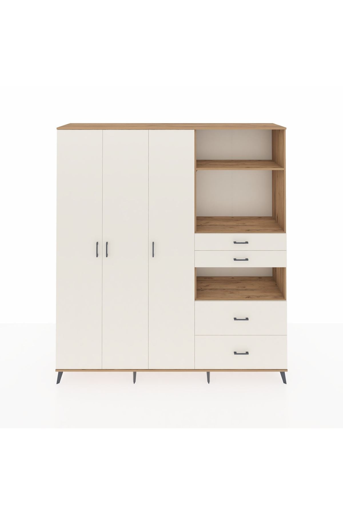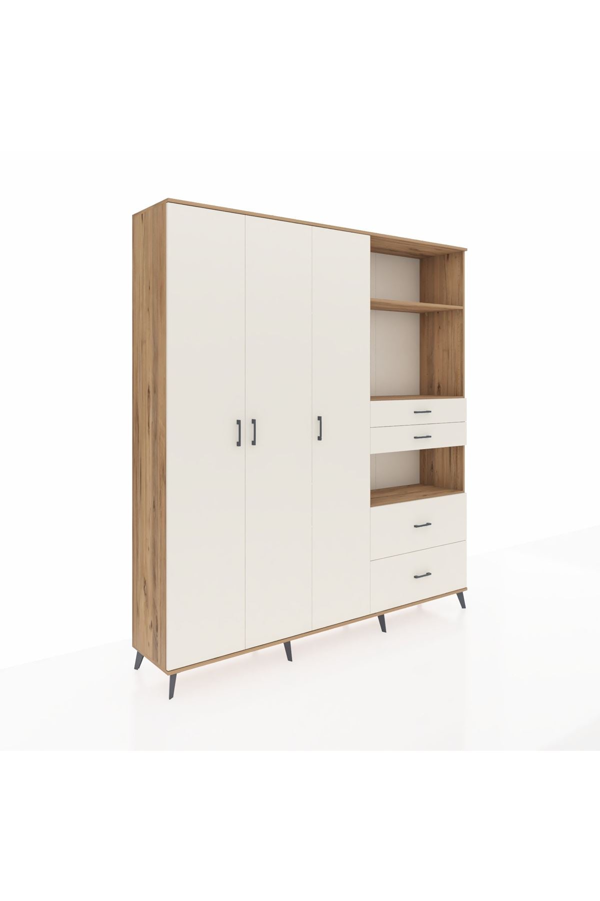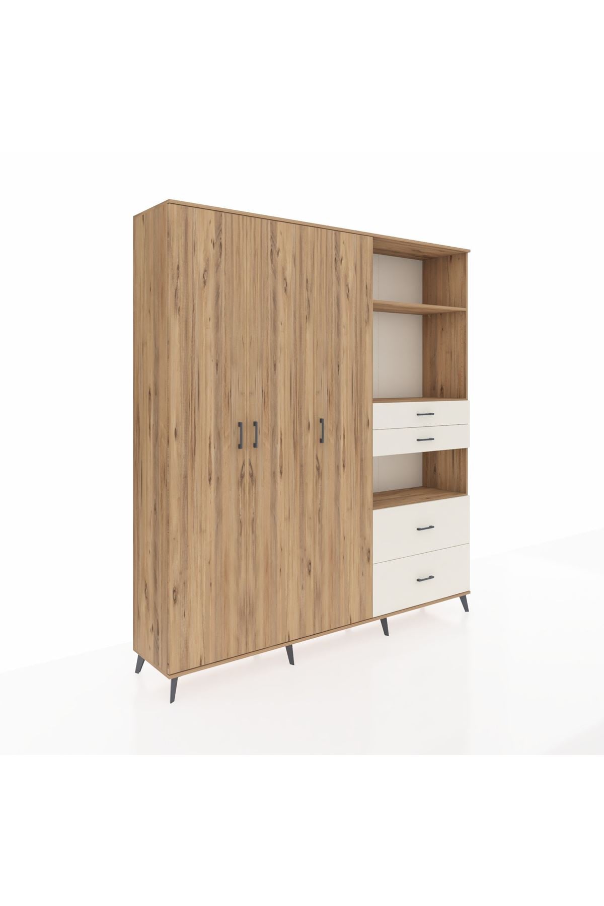 🦾 Dolabımızın metal ayakları, hem modern bir görünüm sağlar hem de sağlam bir zemin oluşturur. Metal kulplar ise dolabın şıklığını tamamlar ve kolay kullanım imkanı sunar.