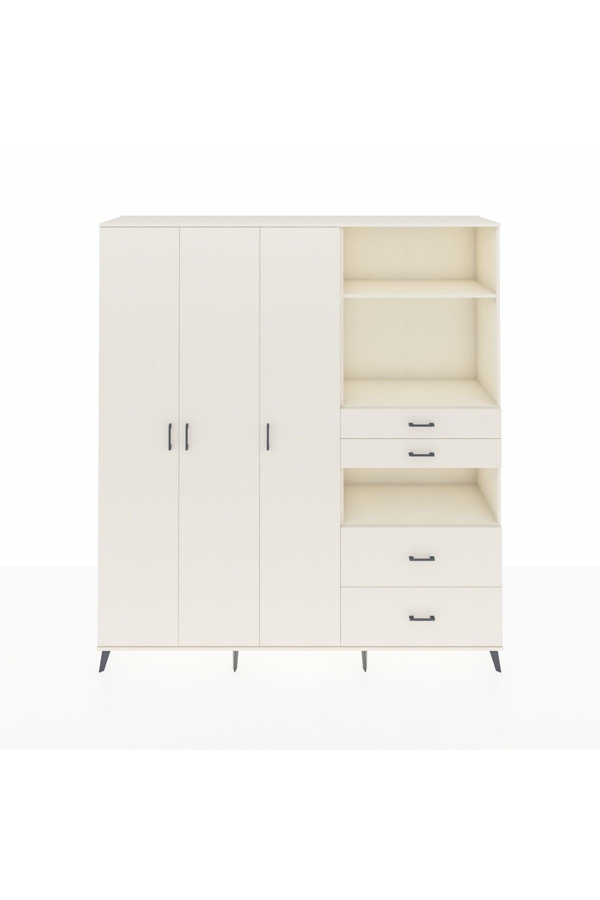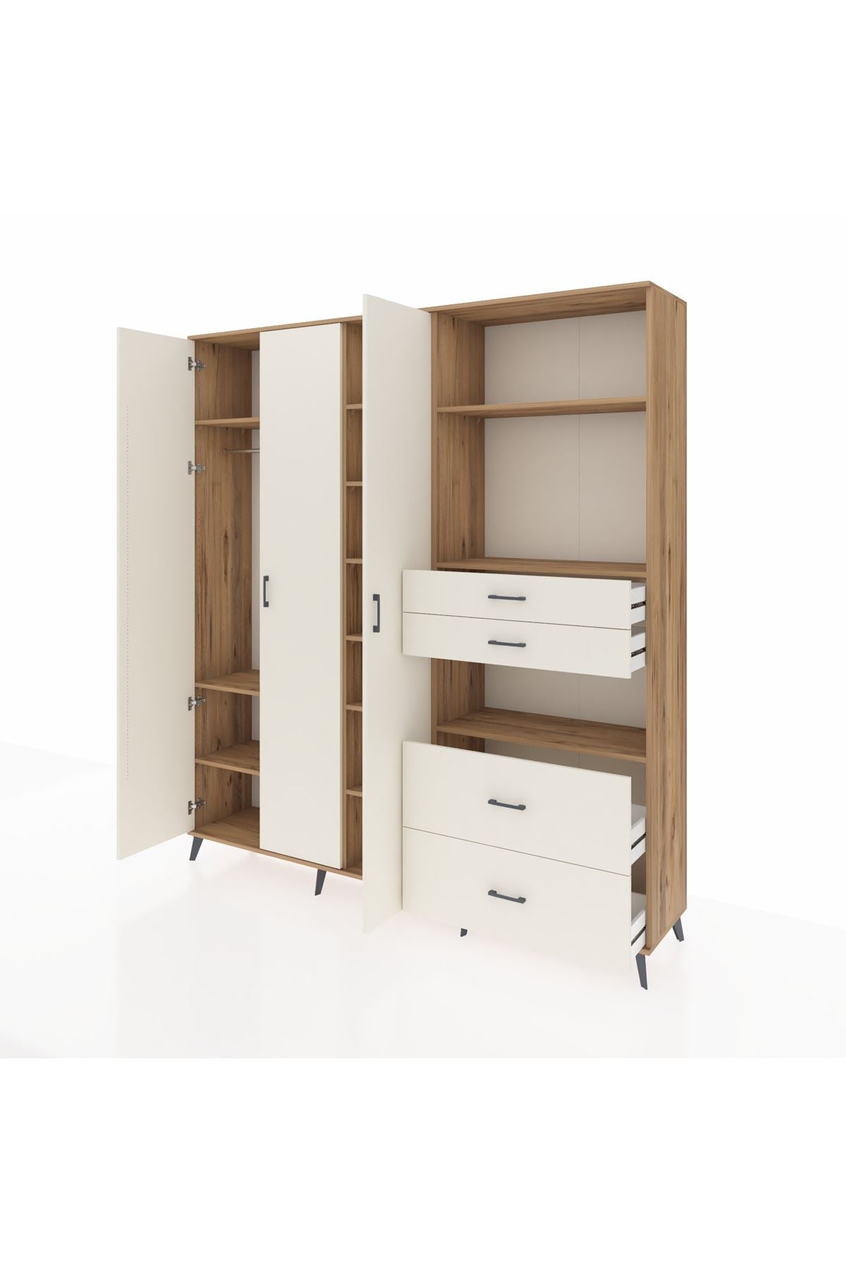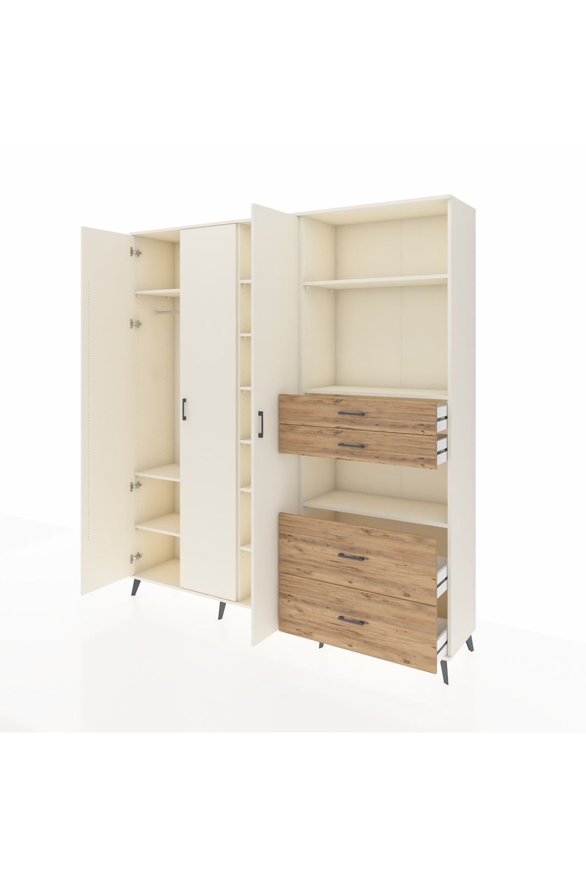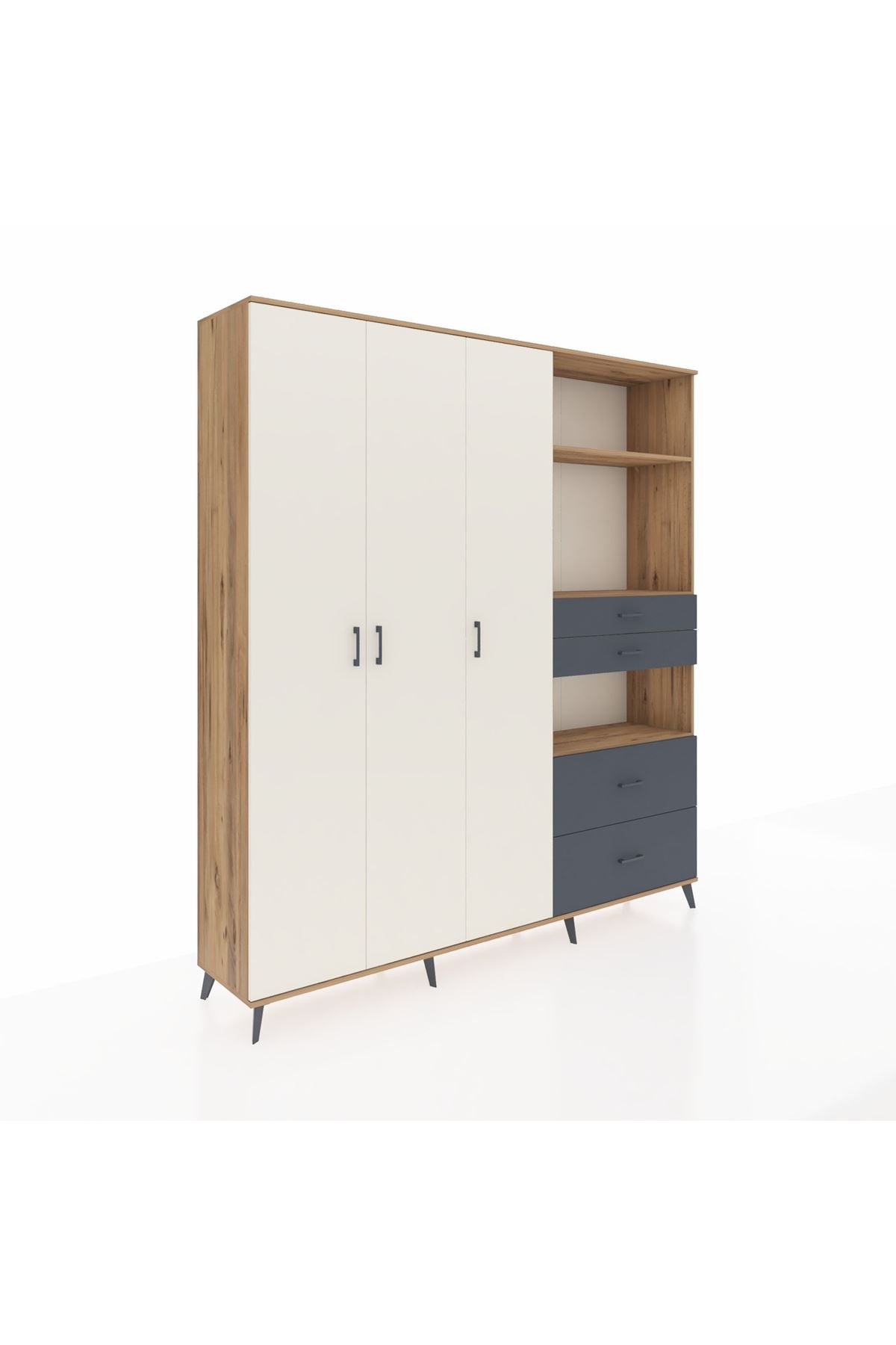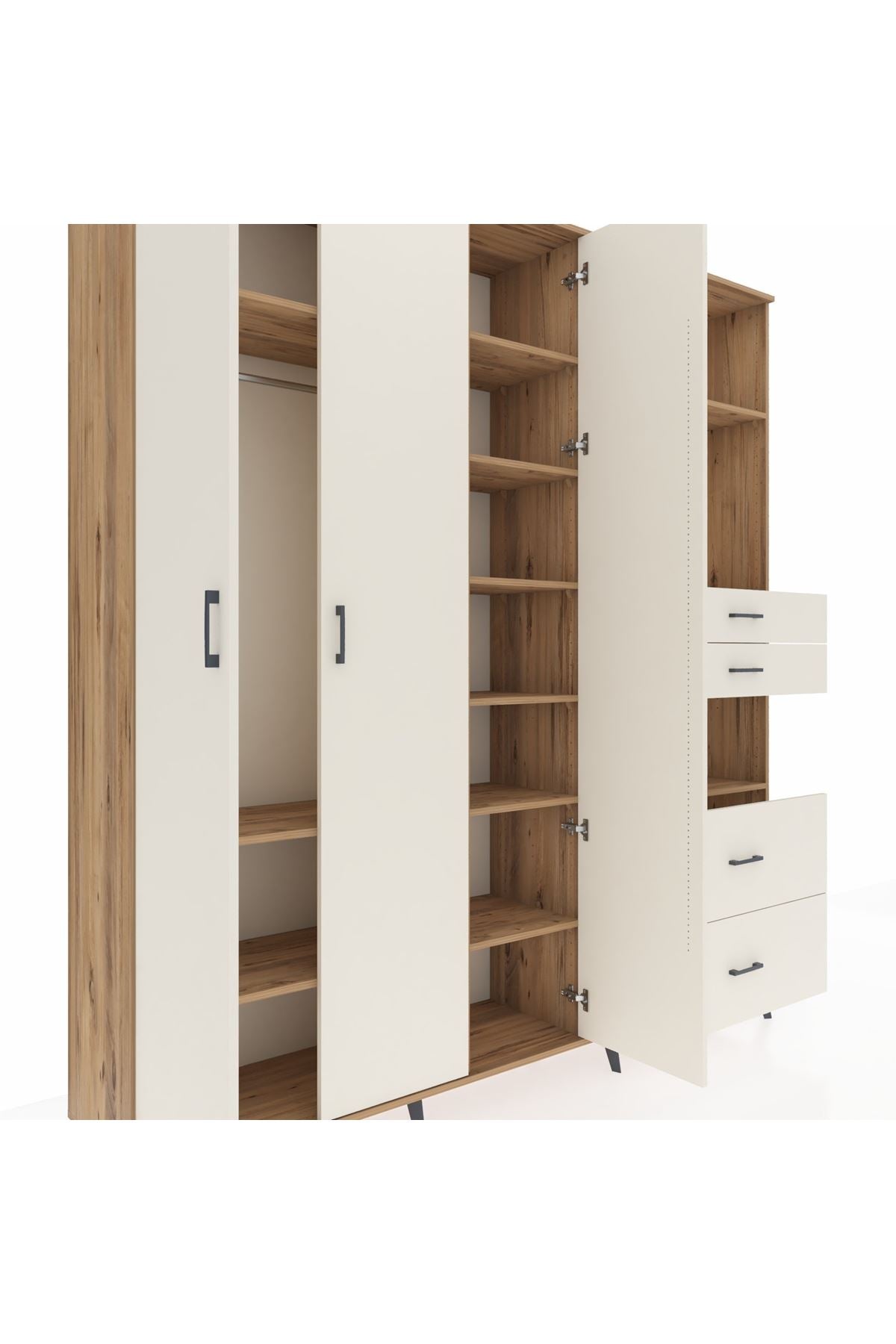 🦾 Dolabımızın metal ayakları, hem modern bir görünüm sağlar hem de sağlam bir zemin oluşturur. Metal kulplar ise dolabın şıklığını tamamlar ve kolay kullanım imkanı sunar.