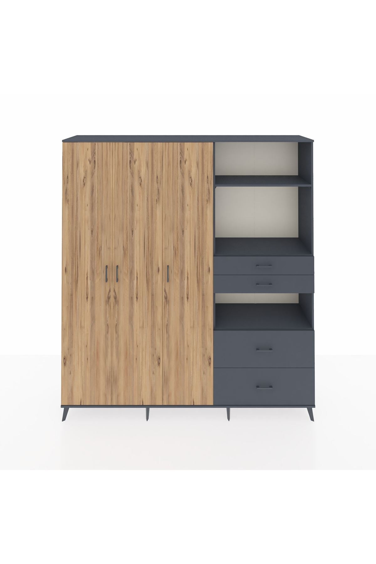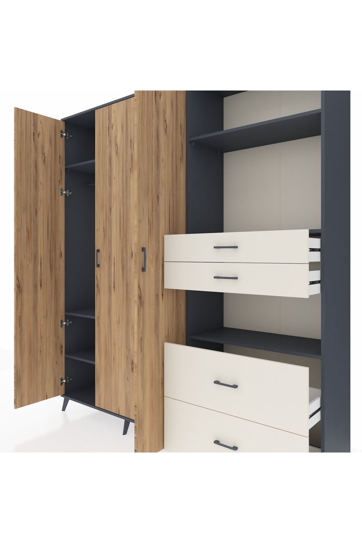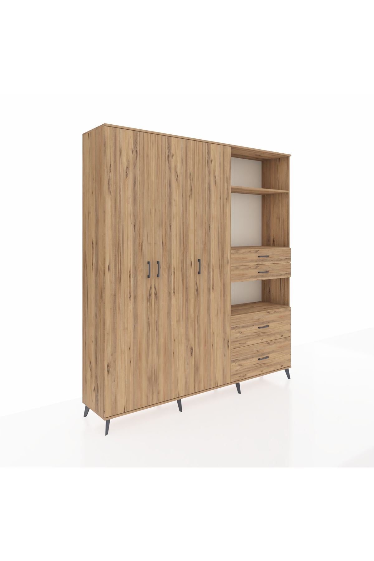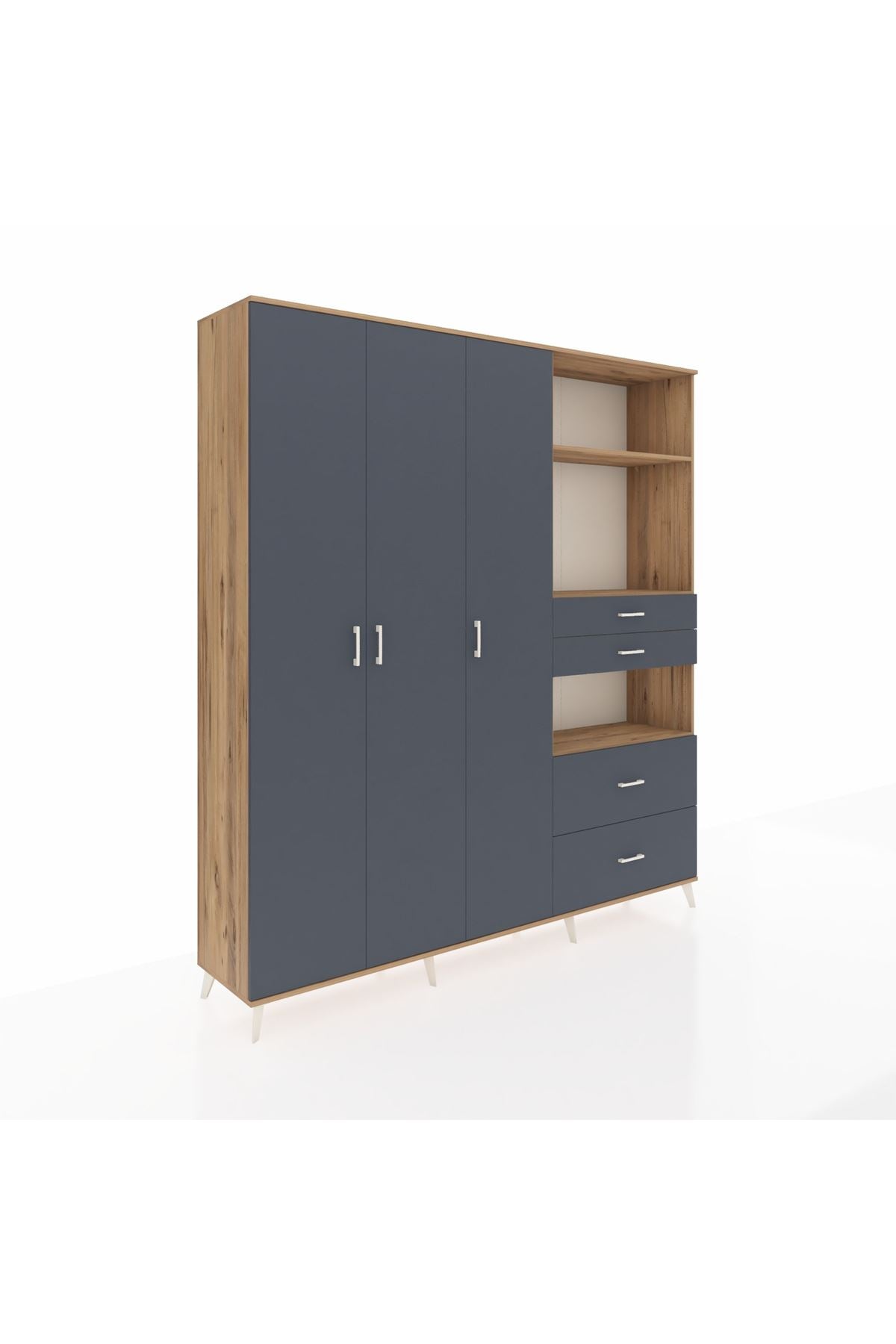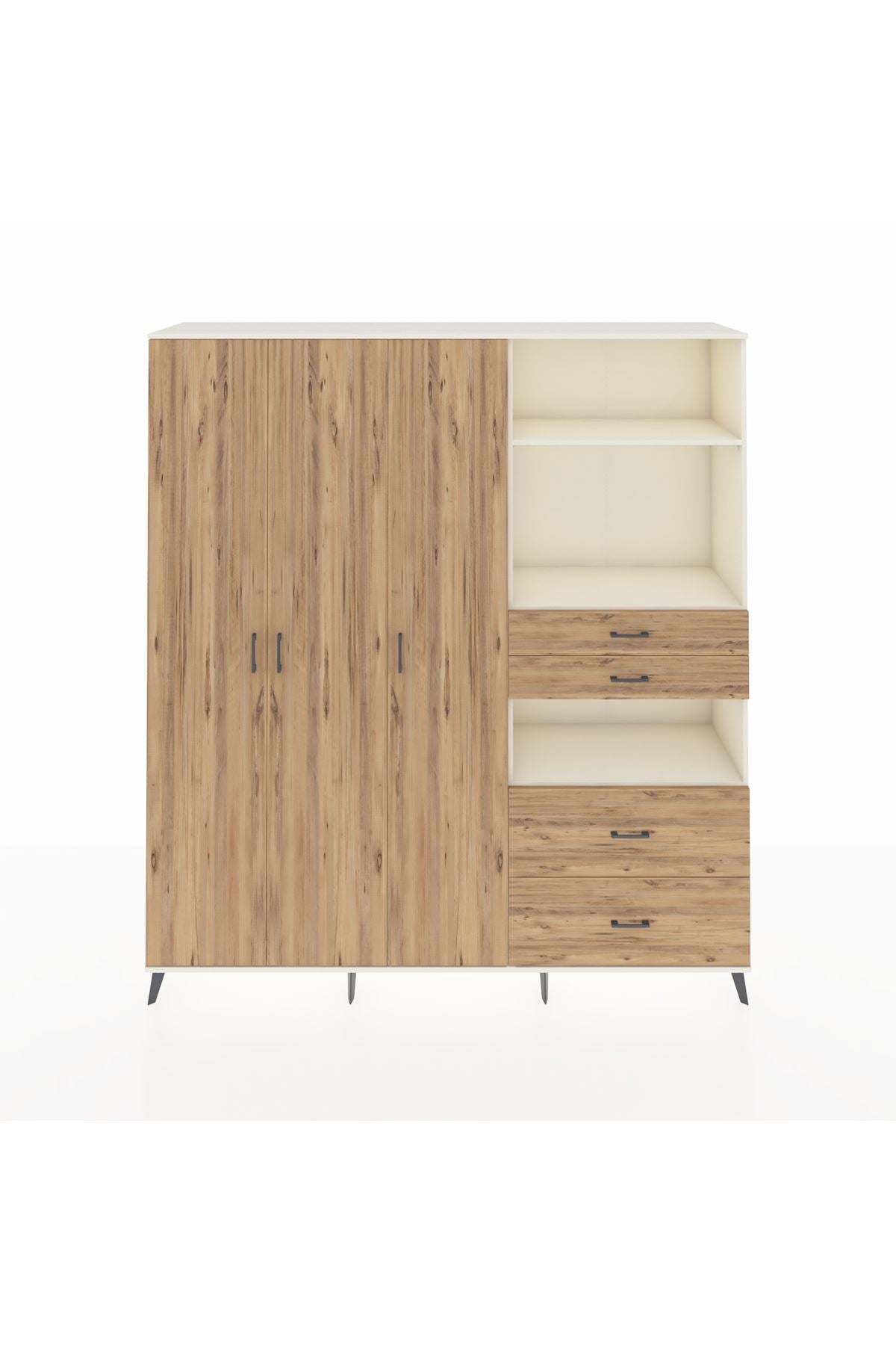 🦾 Dolabımızın metal ayakları, hem modern bir görünüm sağlar hem de sağlam bir zemin oluşturur. Metal kulplar ise dolabın şıklığını tamamlar ve kolay kullanım imkanı sunar.