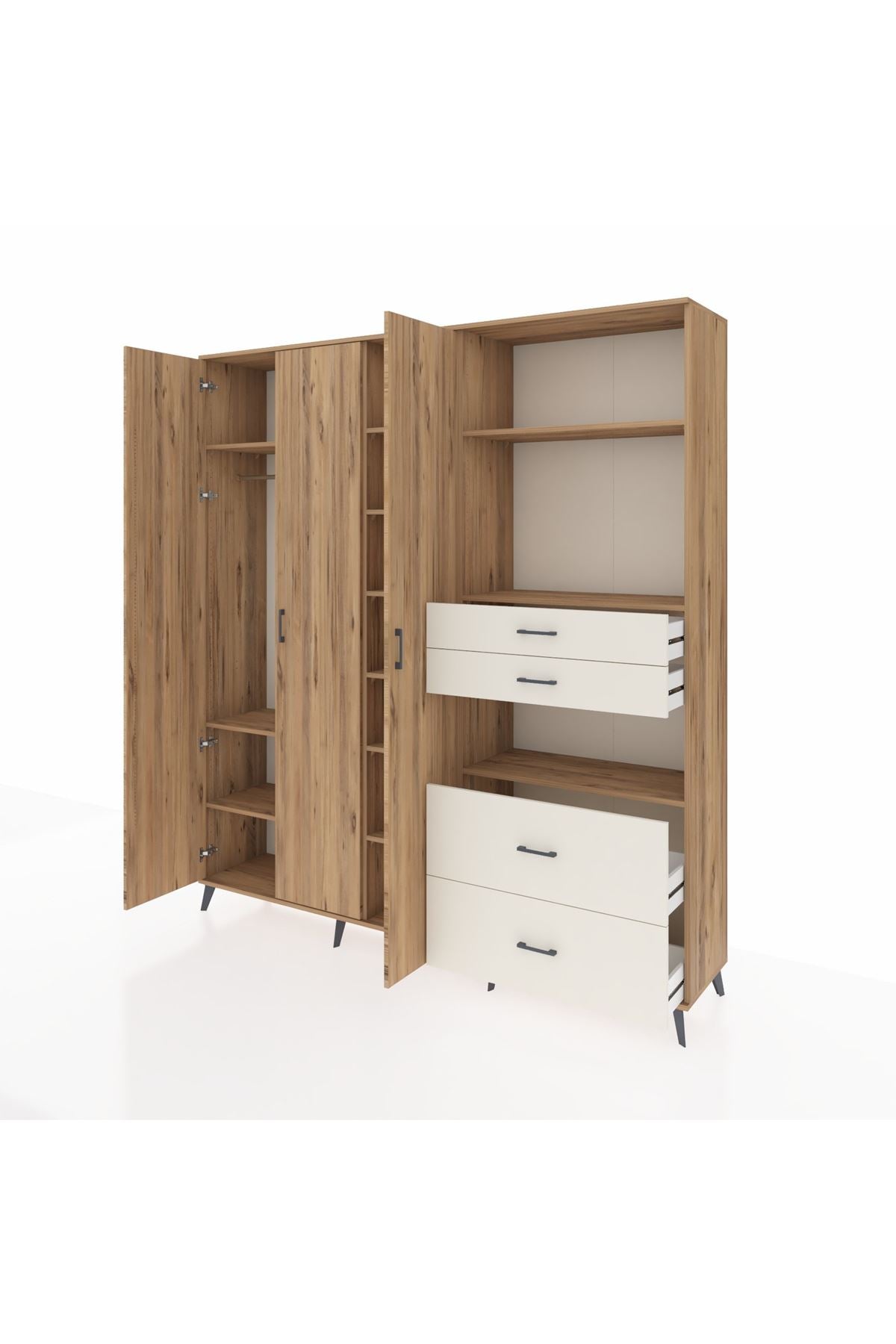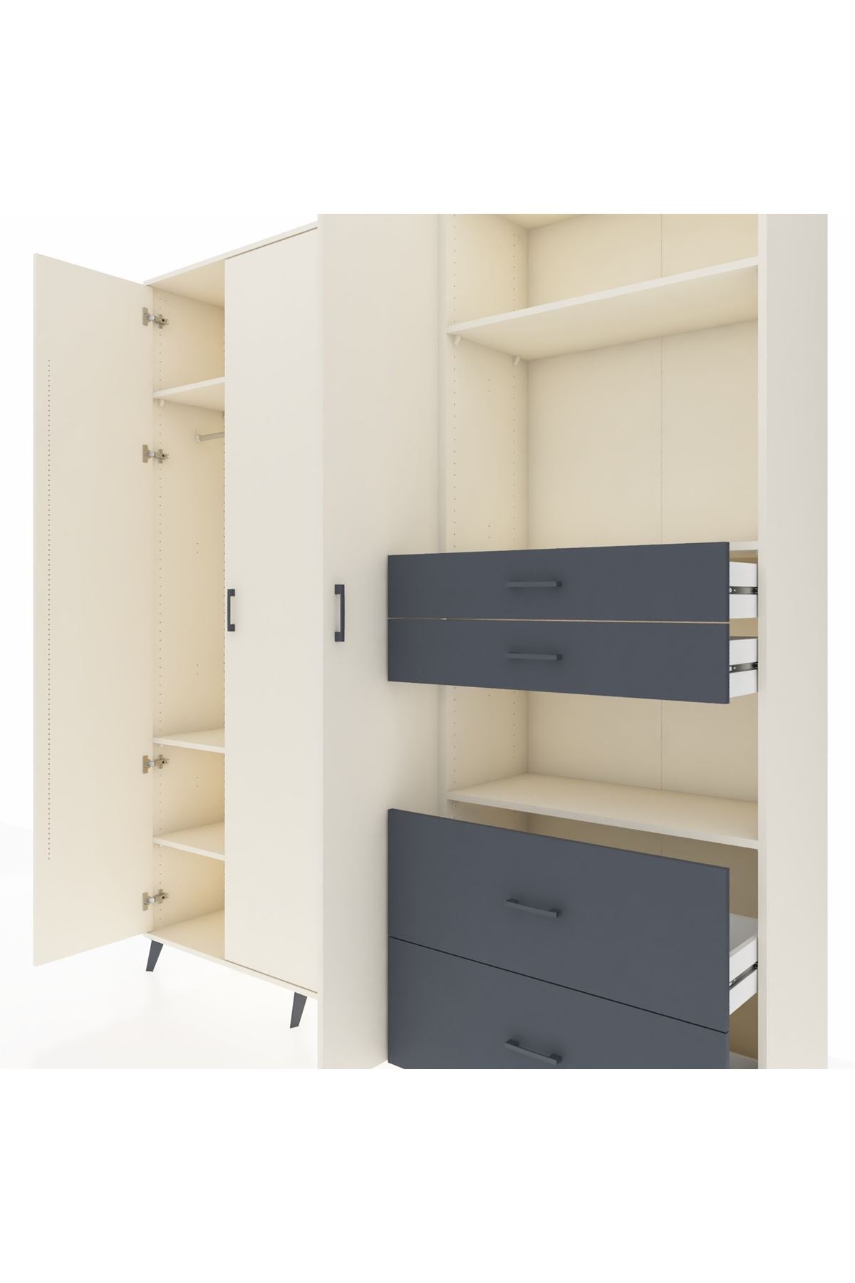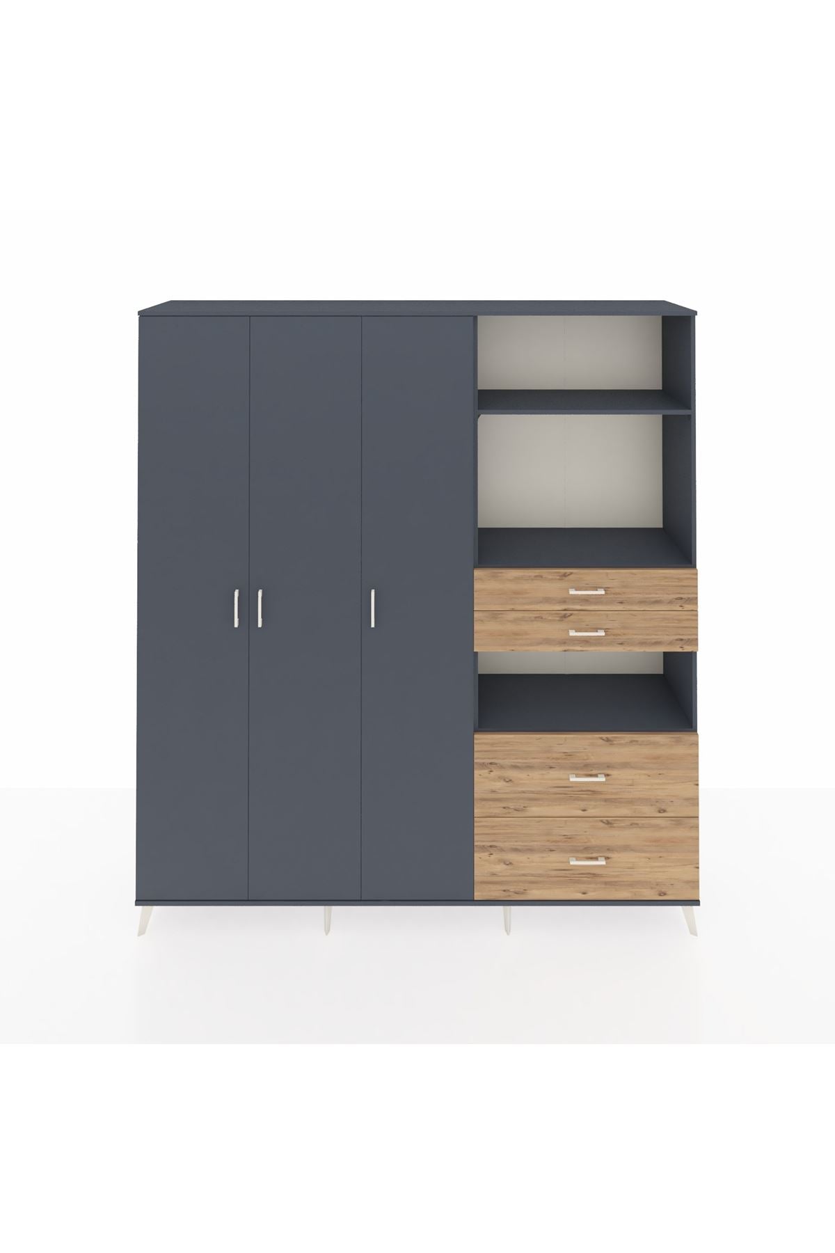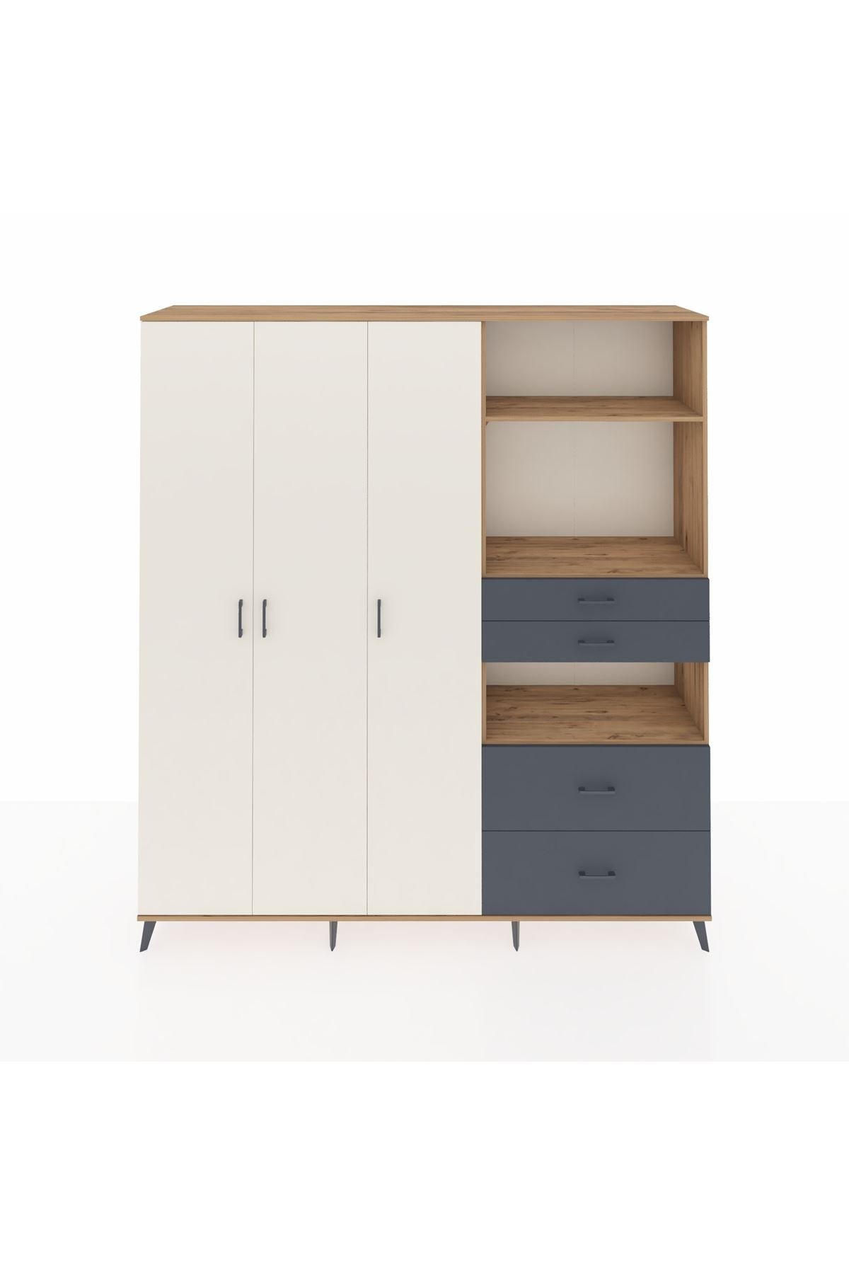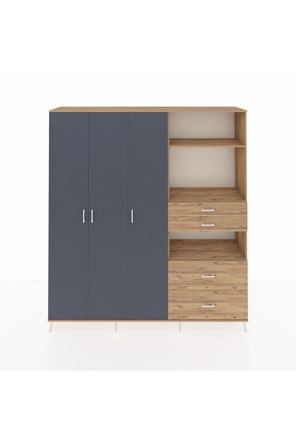 🦾 Dolabımızın metal ayakları, hem modern bir görünüm sağlar hem de sağlam bir zemin oluşturur. Metal kulplar ise dolabın şıklığını tamamlar ve kolay kullanım imkanı sunar.